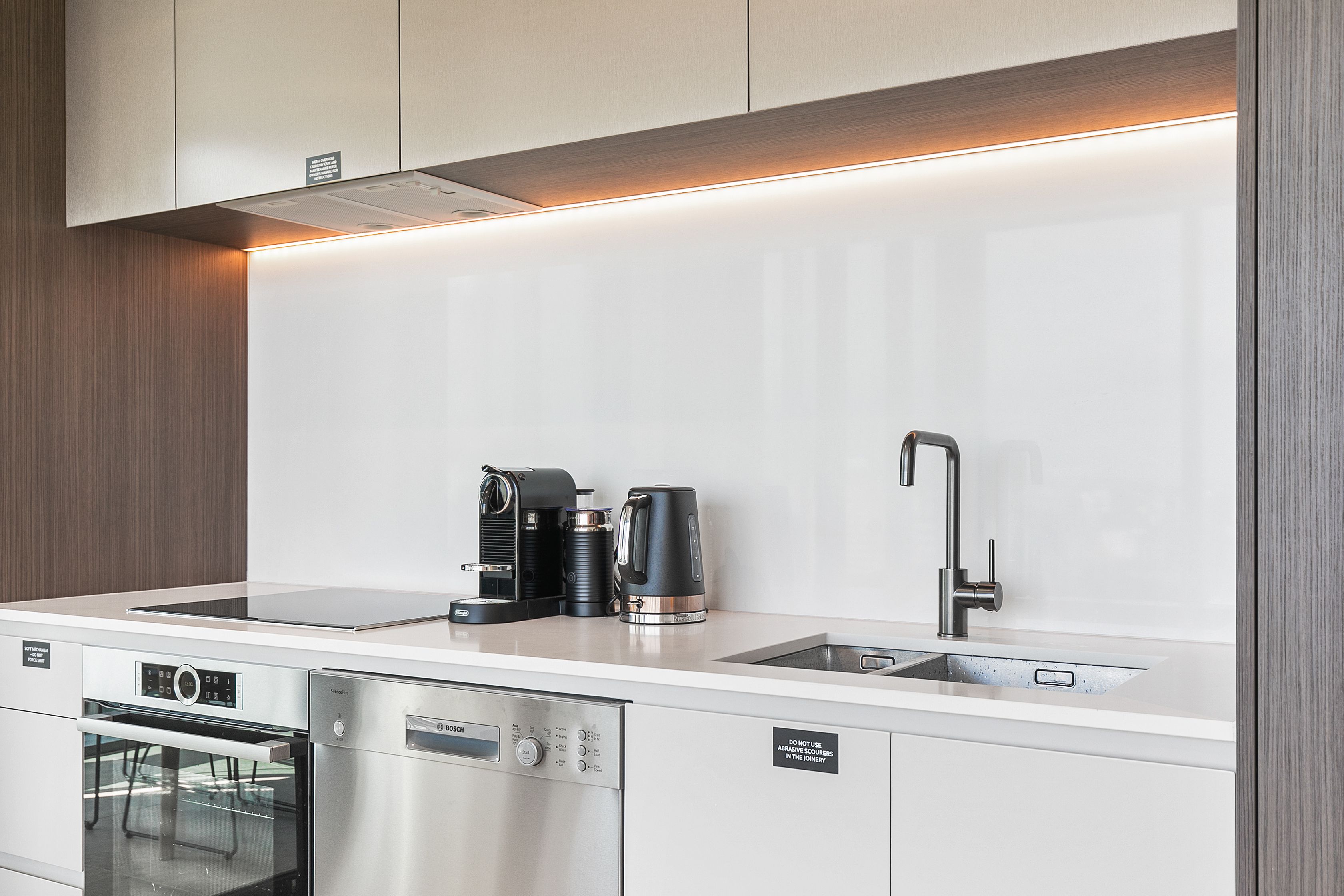 The finest in European appliances ensure living comfortably is effortless. Full venetian blinds installed with additional black out roller blinds in the bedrooms.