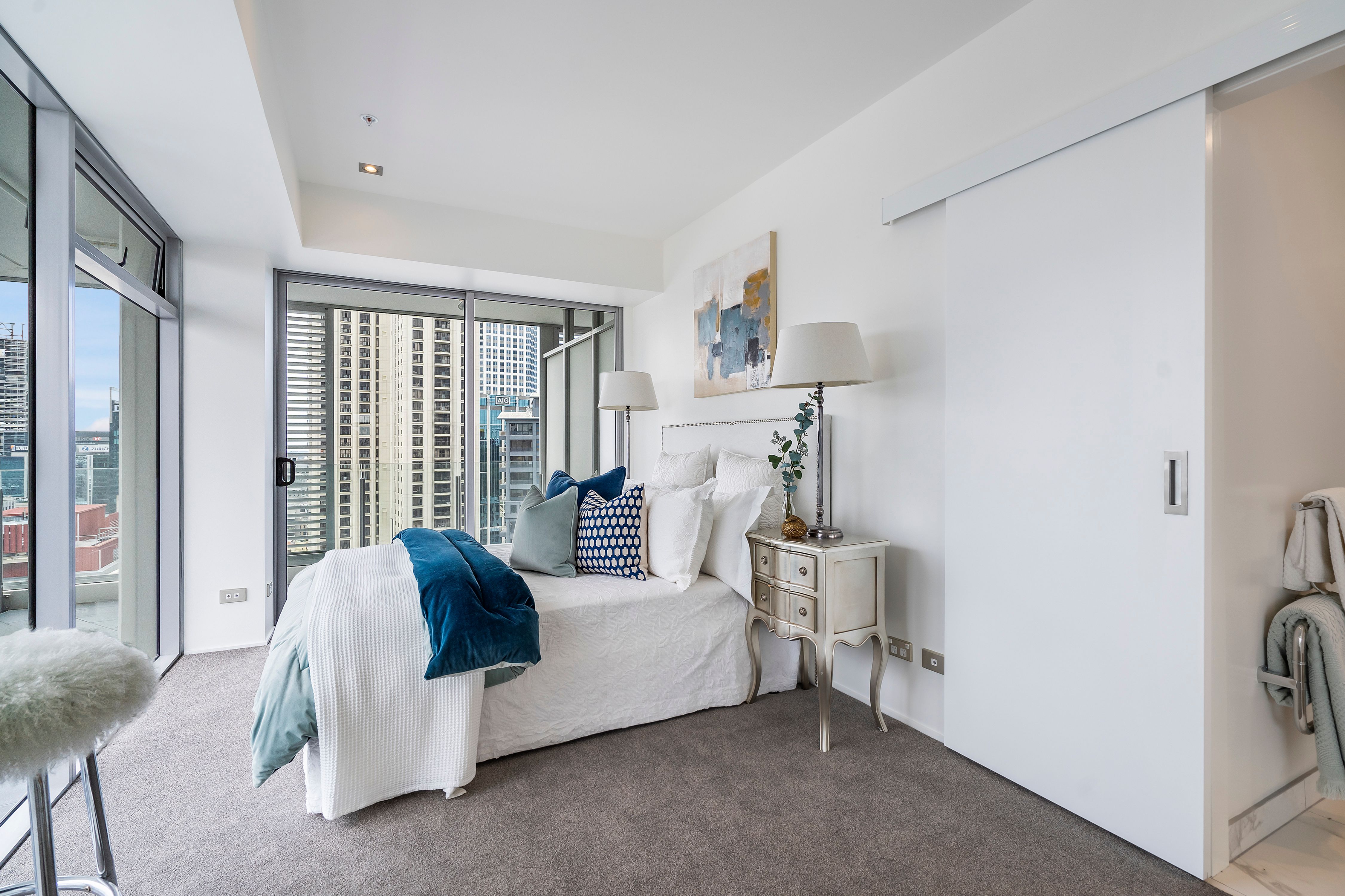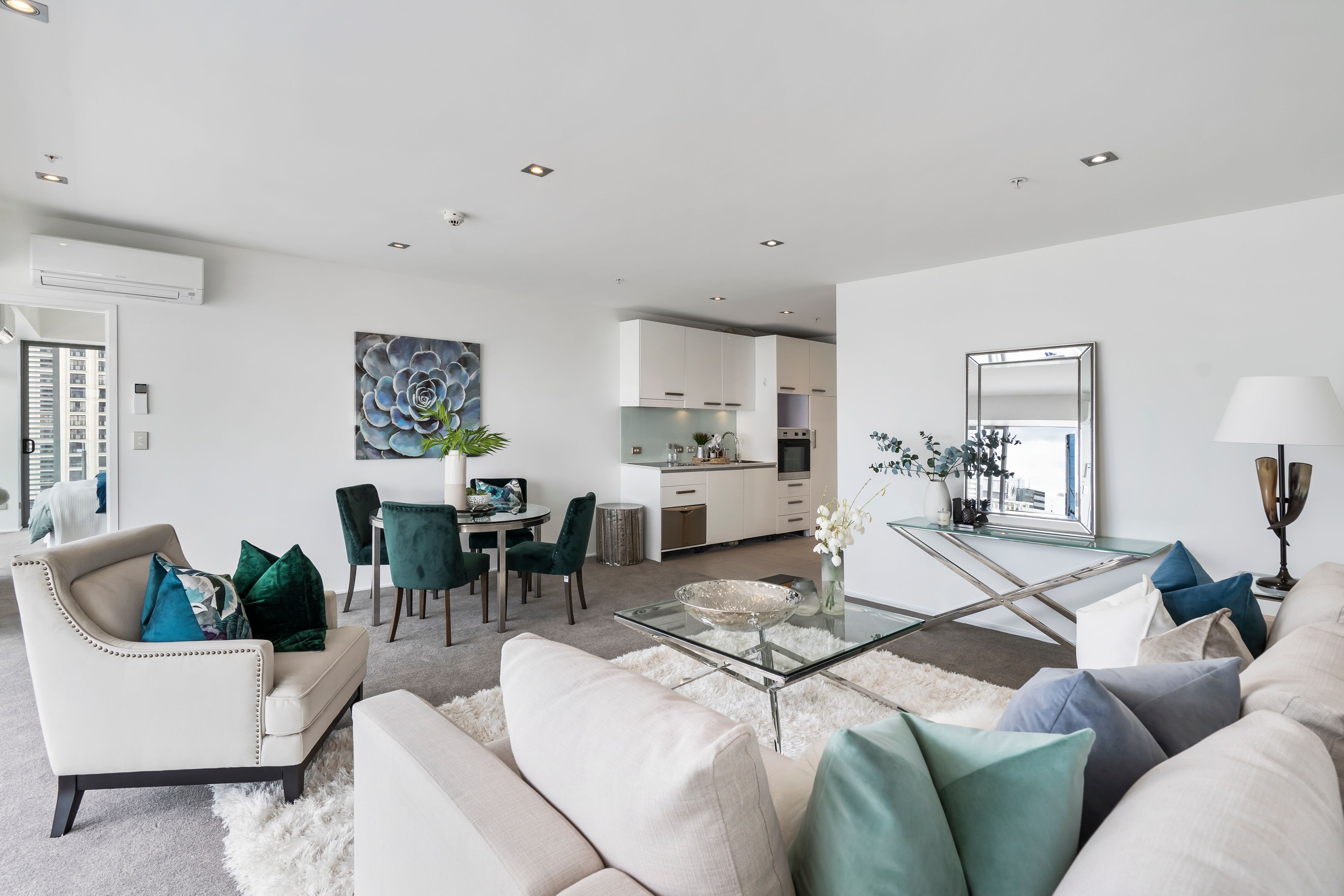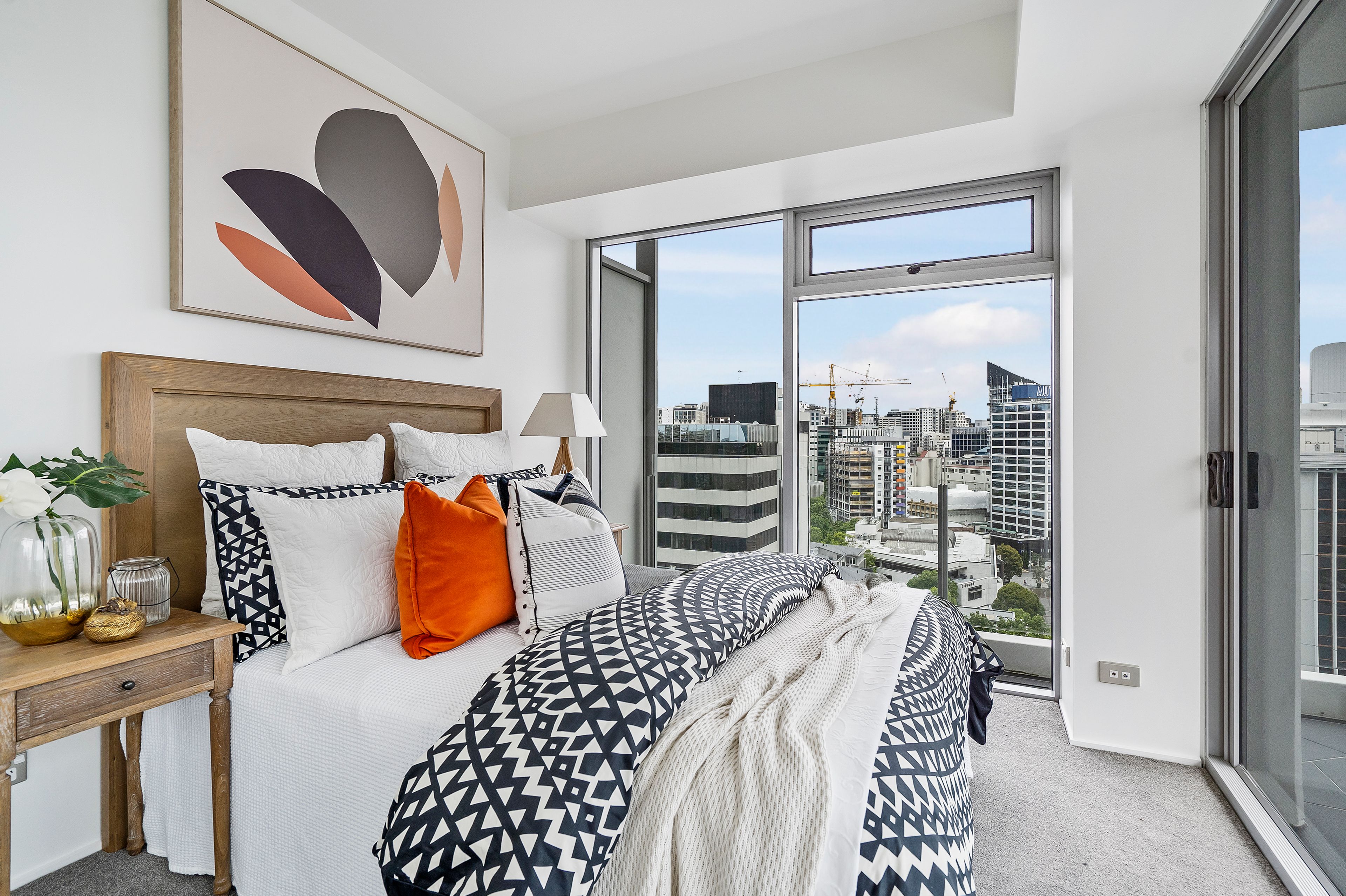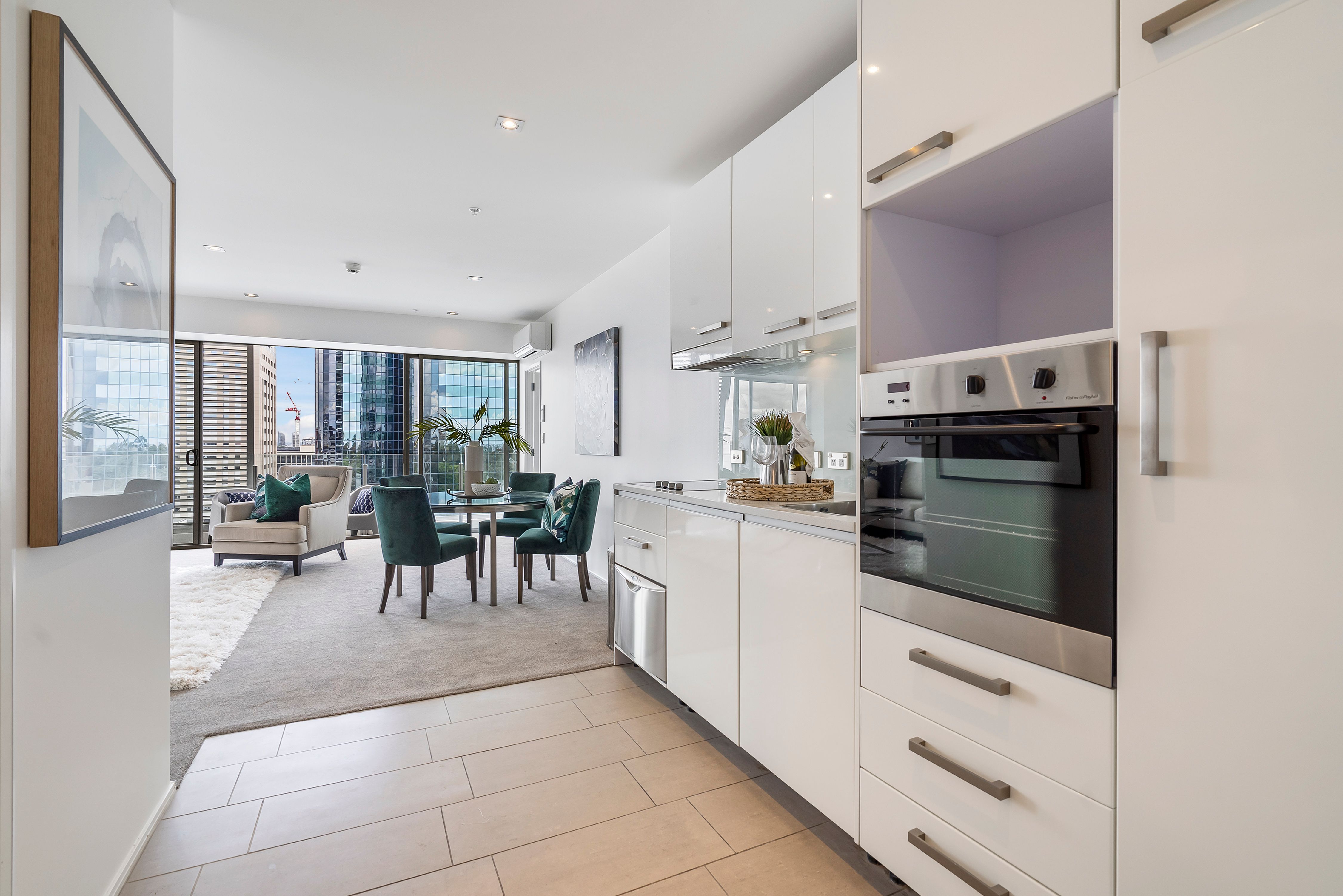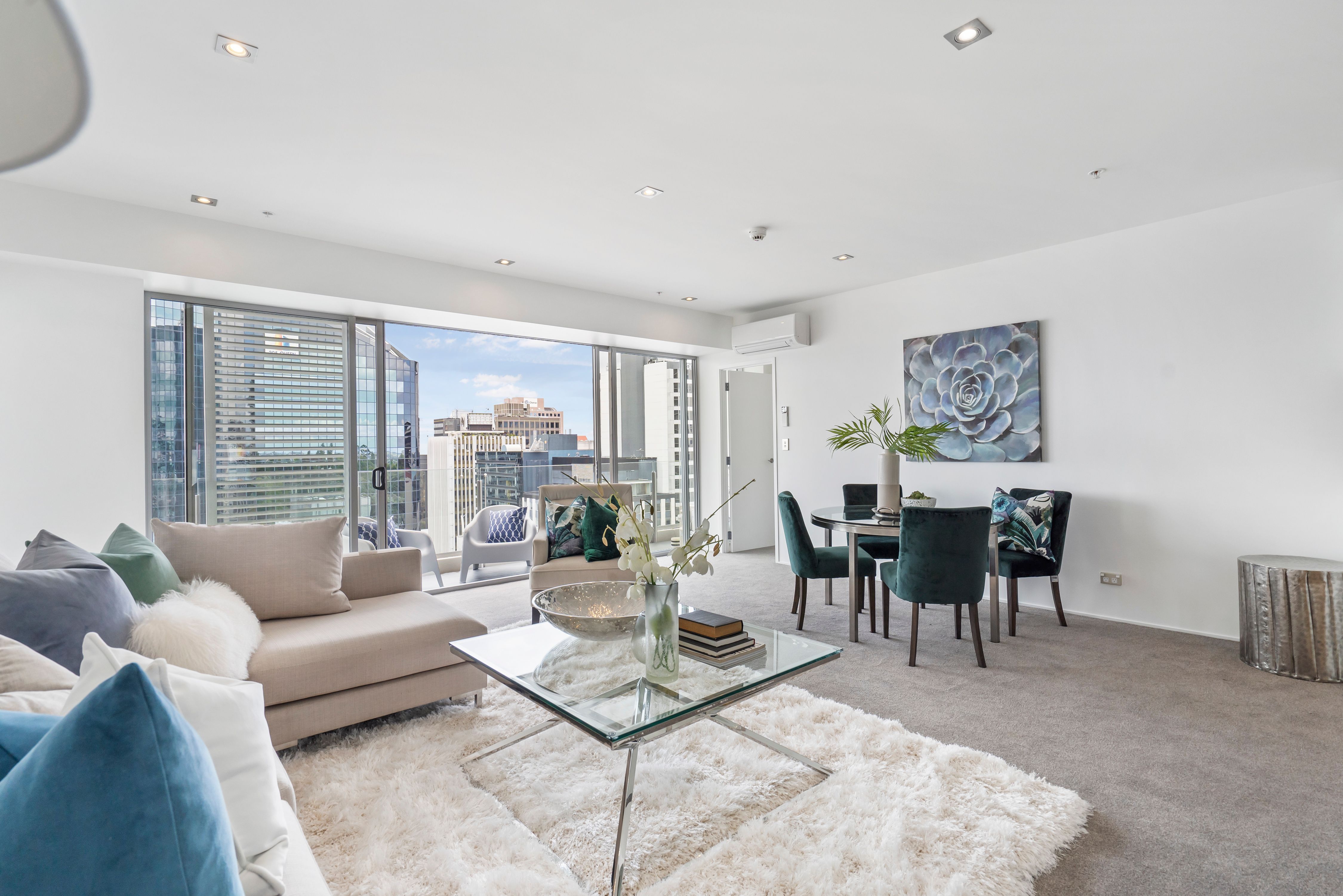 Positioned with a stunning north west aspect and facing the Sky Tower, you can enjoy the dazzling lights of our city as well as wake up in your master bedroom to glimpses of Rangitoto and the Waitemata Harbour.