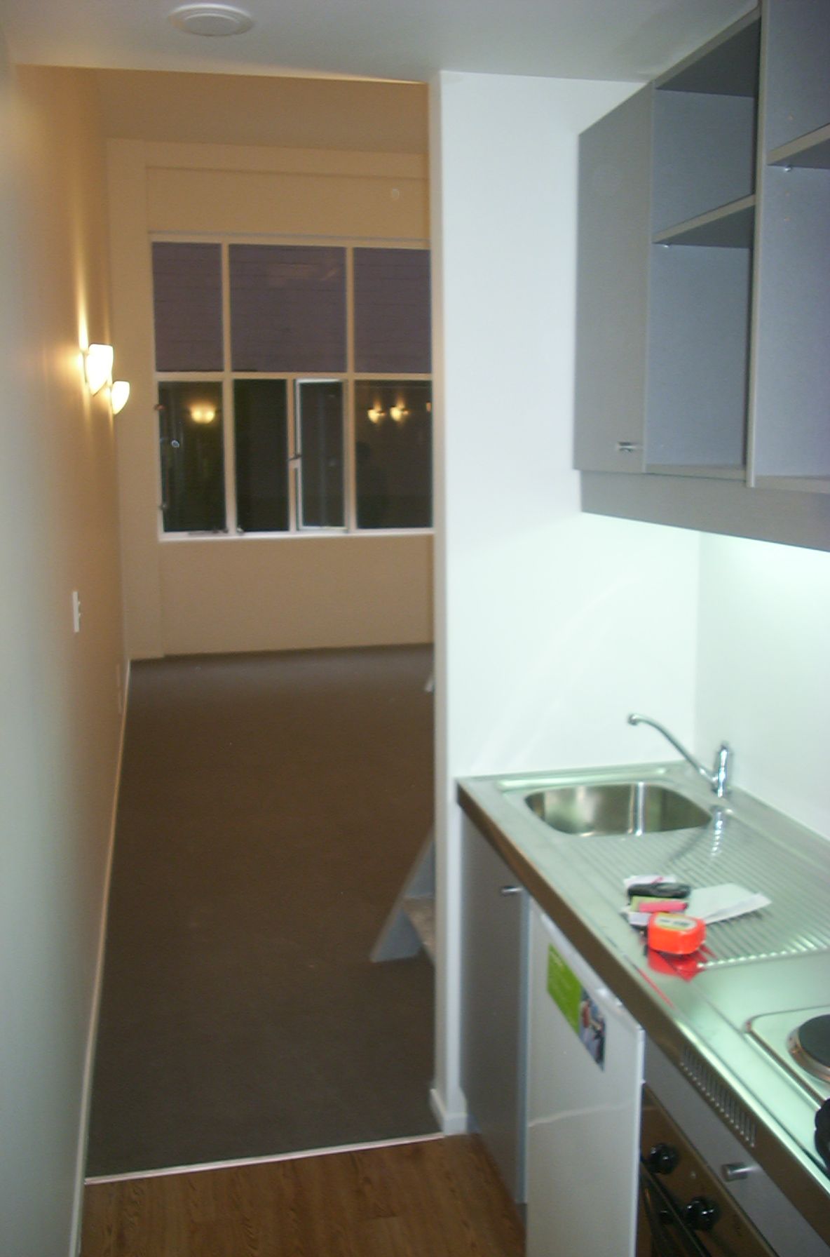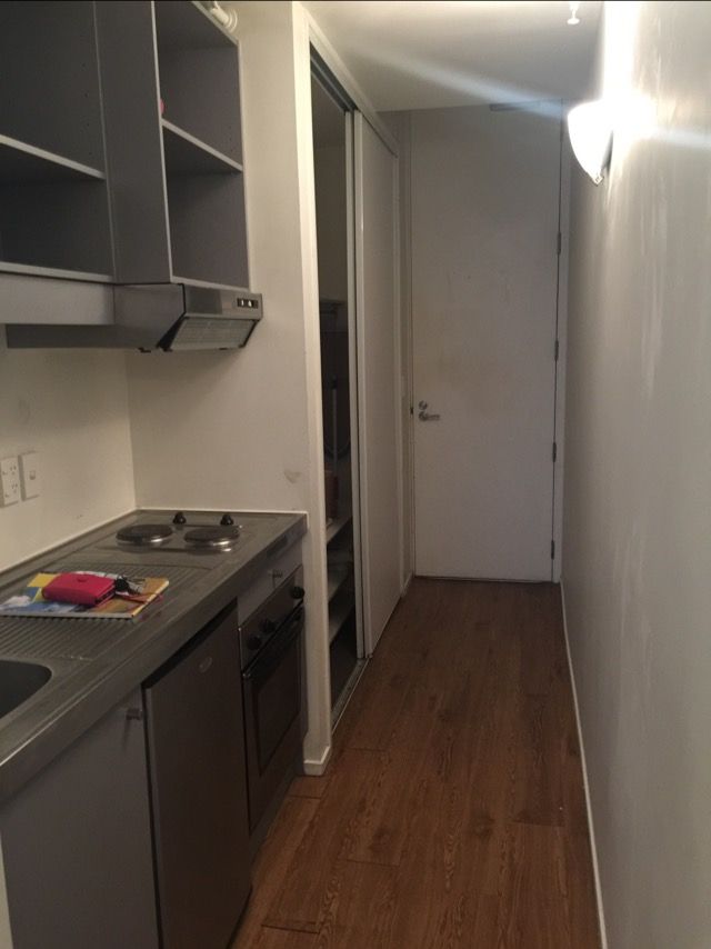 The apartment is light and bright with high stud ceilings and open plan living, combined bathroom and laundry and galley style kitchen. The perfect lock up and leave or safe haven at the end of a long working day. The compact kitchen is equipped with under bench fridge, two pot hob, oven and washing machine/dryer in the bathroom. Suitable for a single tenant or couple. 2 tenants max allowed.
