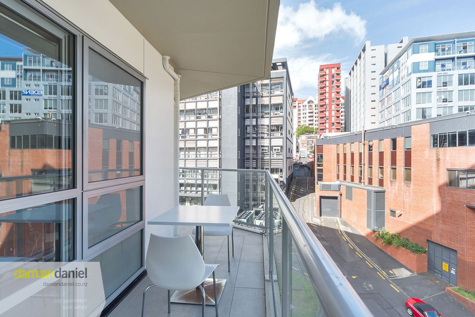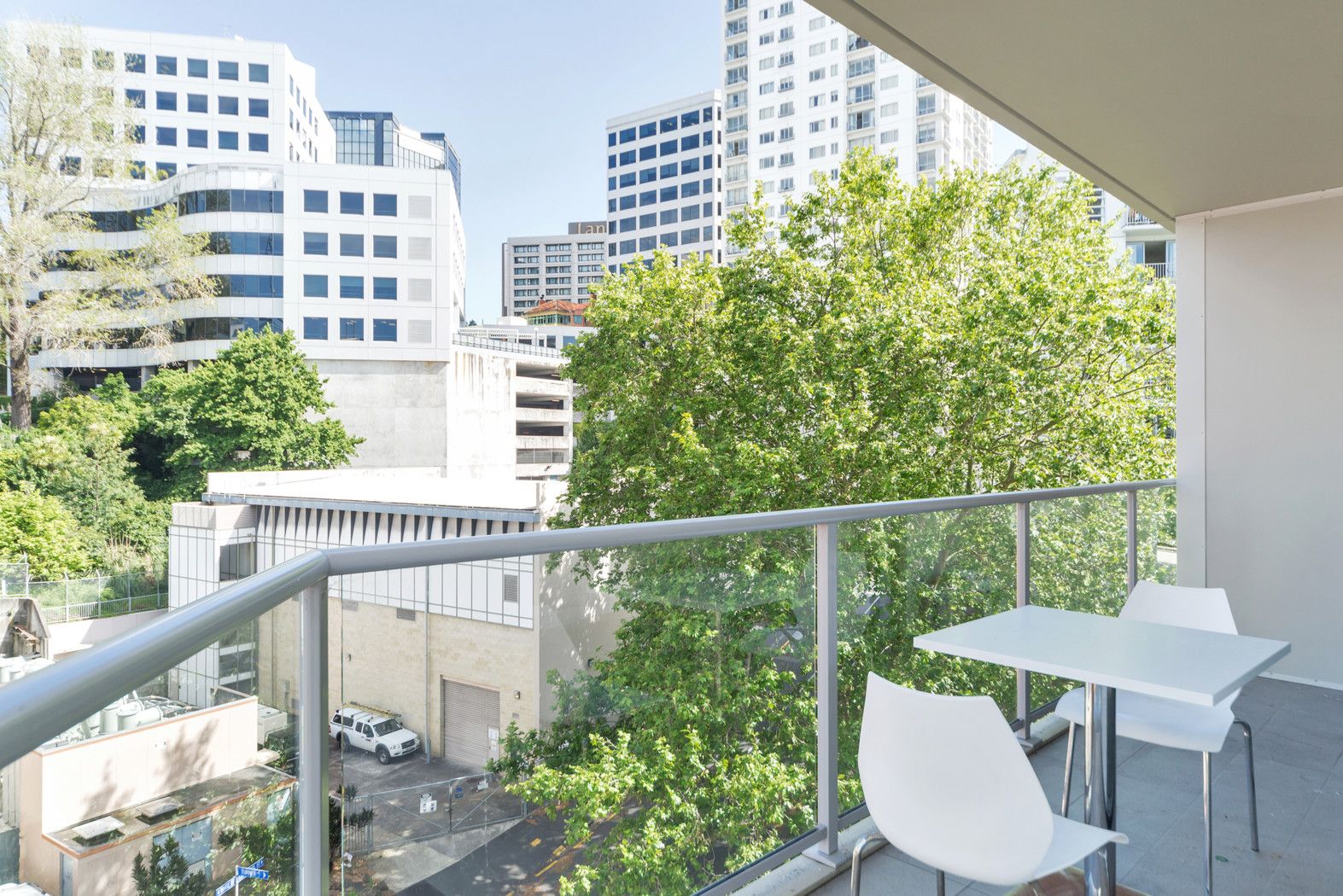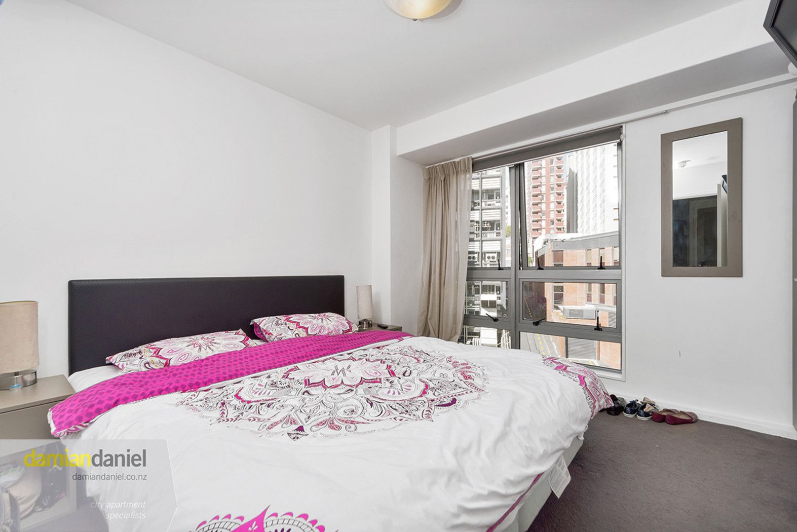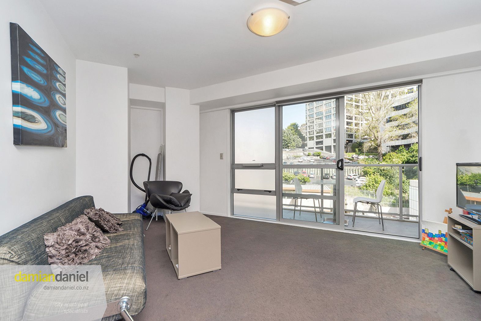 One bedroom, with a spacious and invitingly livable lounge and kitchen area. The South Eastern balcony is overly generous with a pleasant outlook.