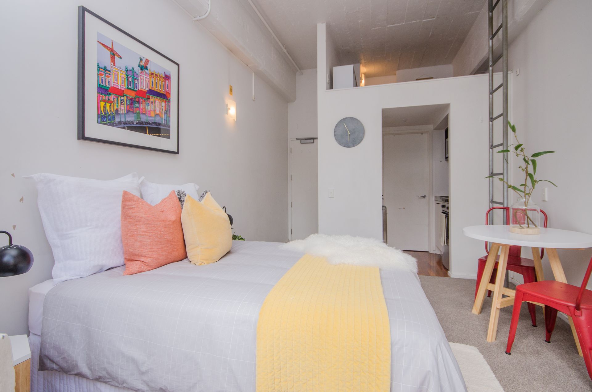 The soaring ceilings in this New York style freehold studio apartment maximise the northfacing aspect and bathes you in light. Step out on your balcony and you will really appreciate you are right in the heart of downtown Auckland.
