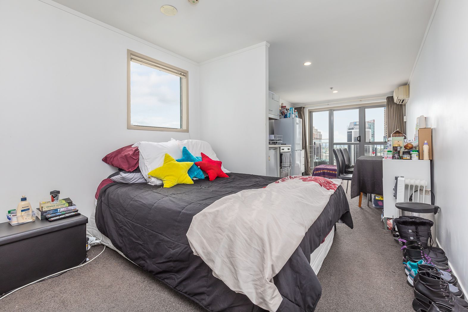 We have on offer arguably the best unit in the building - a west facing studio on the 18th floor with stunning views of the Waitemata harbour and cityscape.