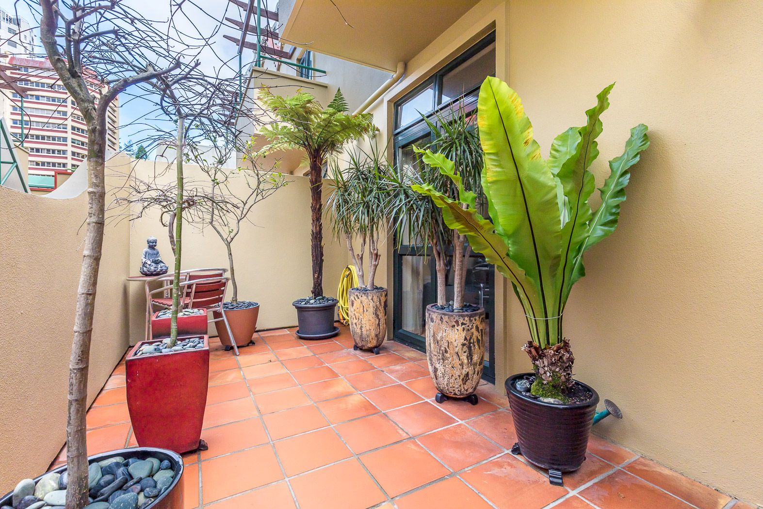 This entire complex has a Mediterranean feel with terracotta paving tiles, it feels like you're away from the rain and on holiday in Spain. Bank friendly at 95sqm (approx) complete with generously sized secure storage locker too.