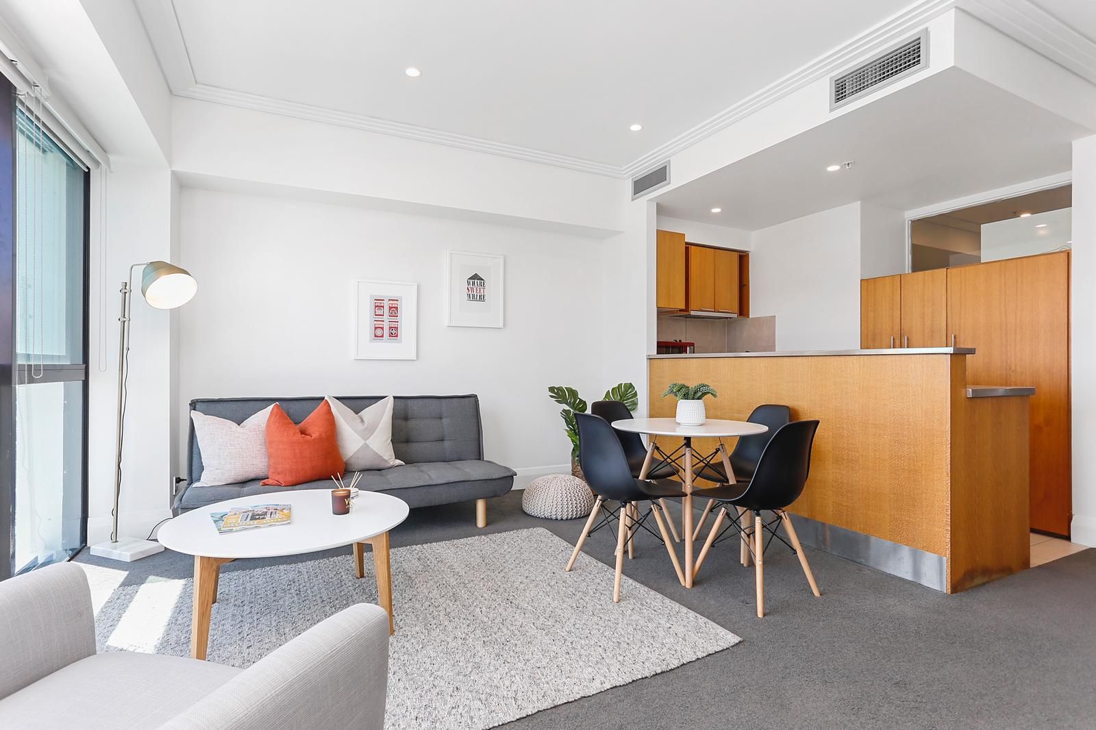 Open plan lounge featuring large double windows that open right up to let in the sea breeze, and there's a balcony accessed from the lounge and main bedroom.