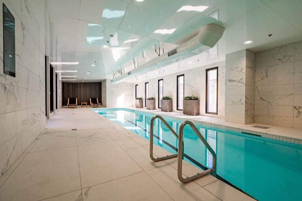 The building has an indoor pool for residents to use along with a live-in-building manager to ensure safety and security.