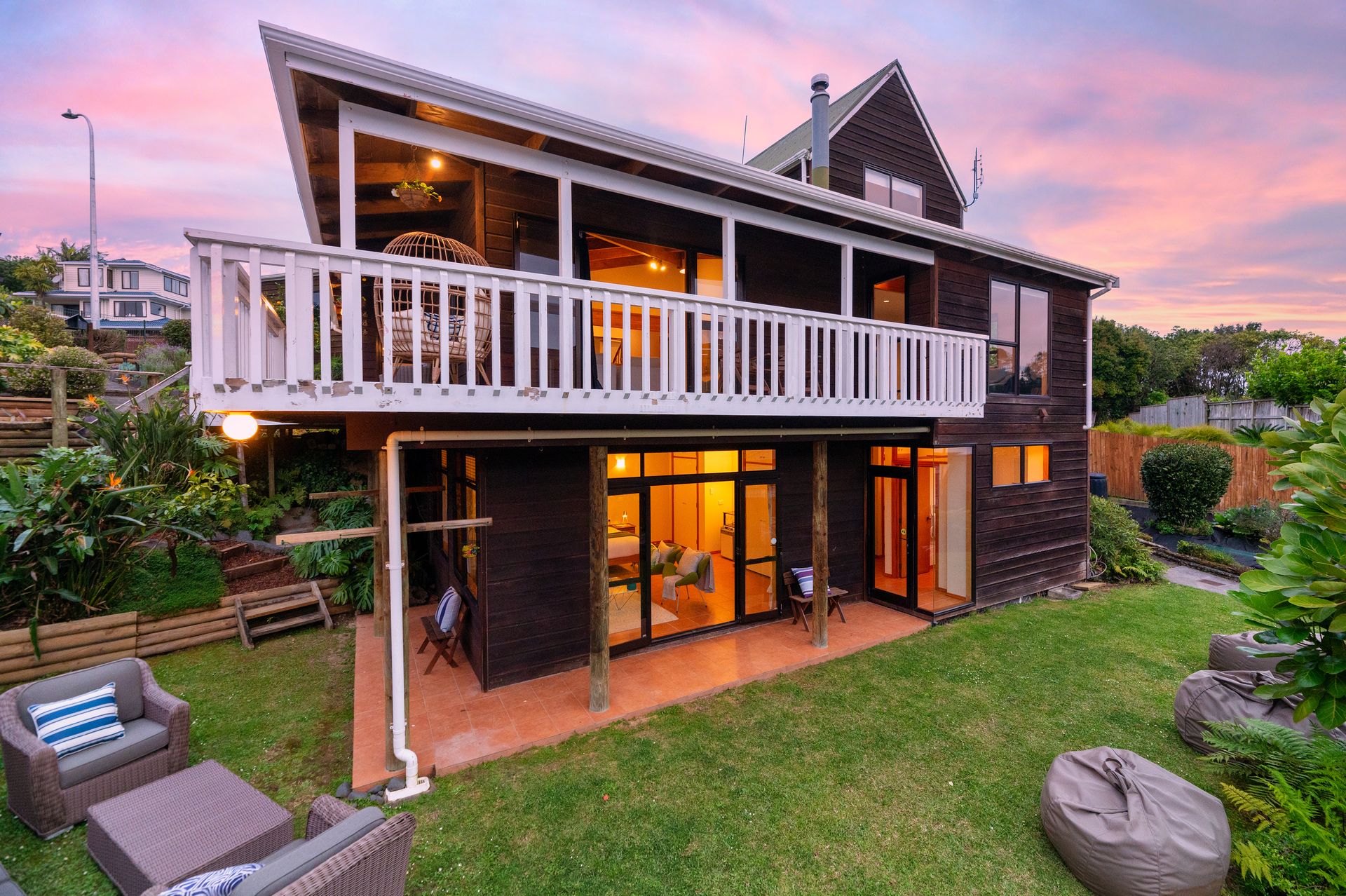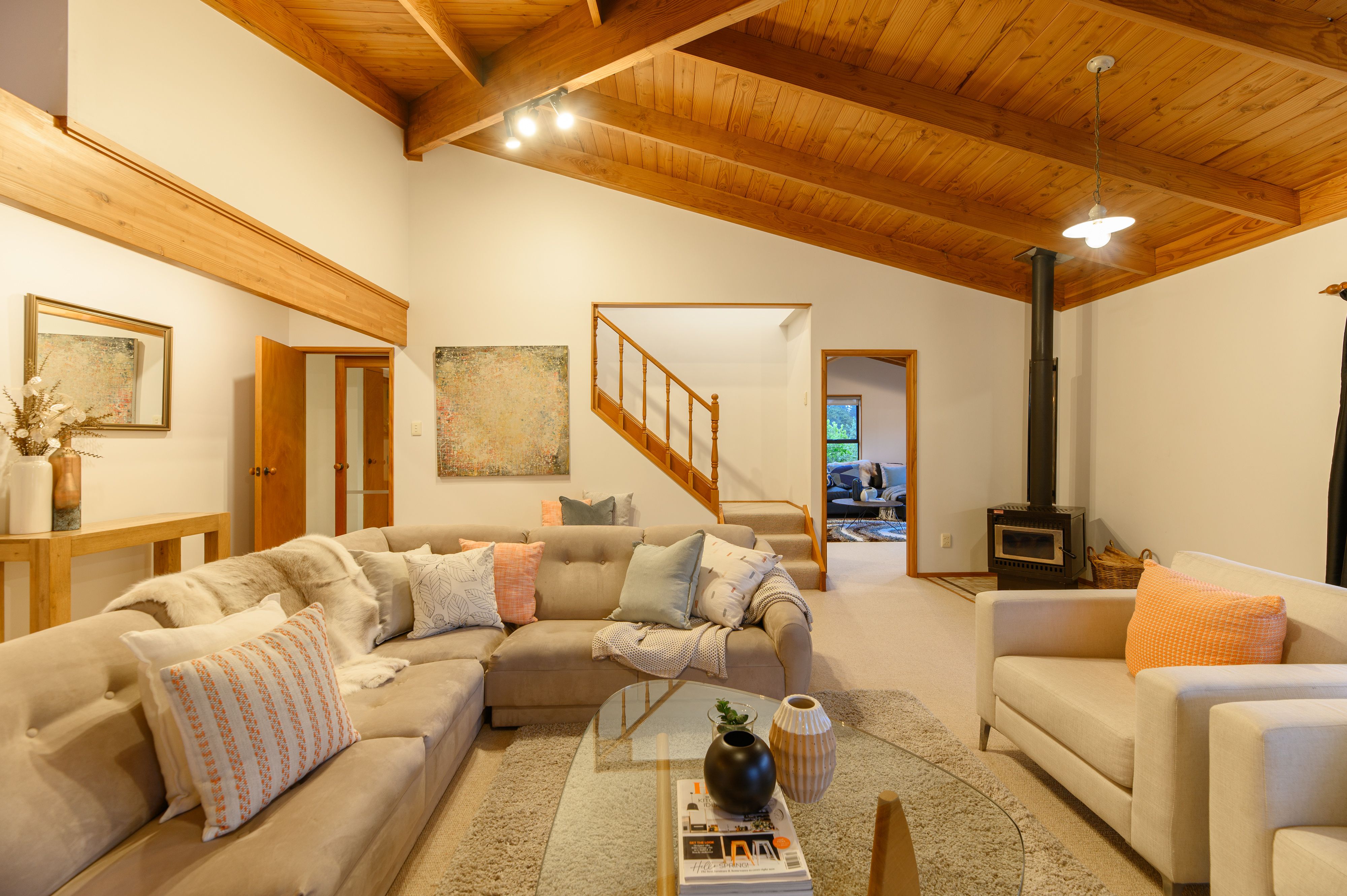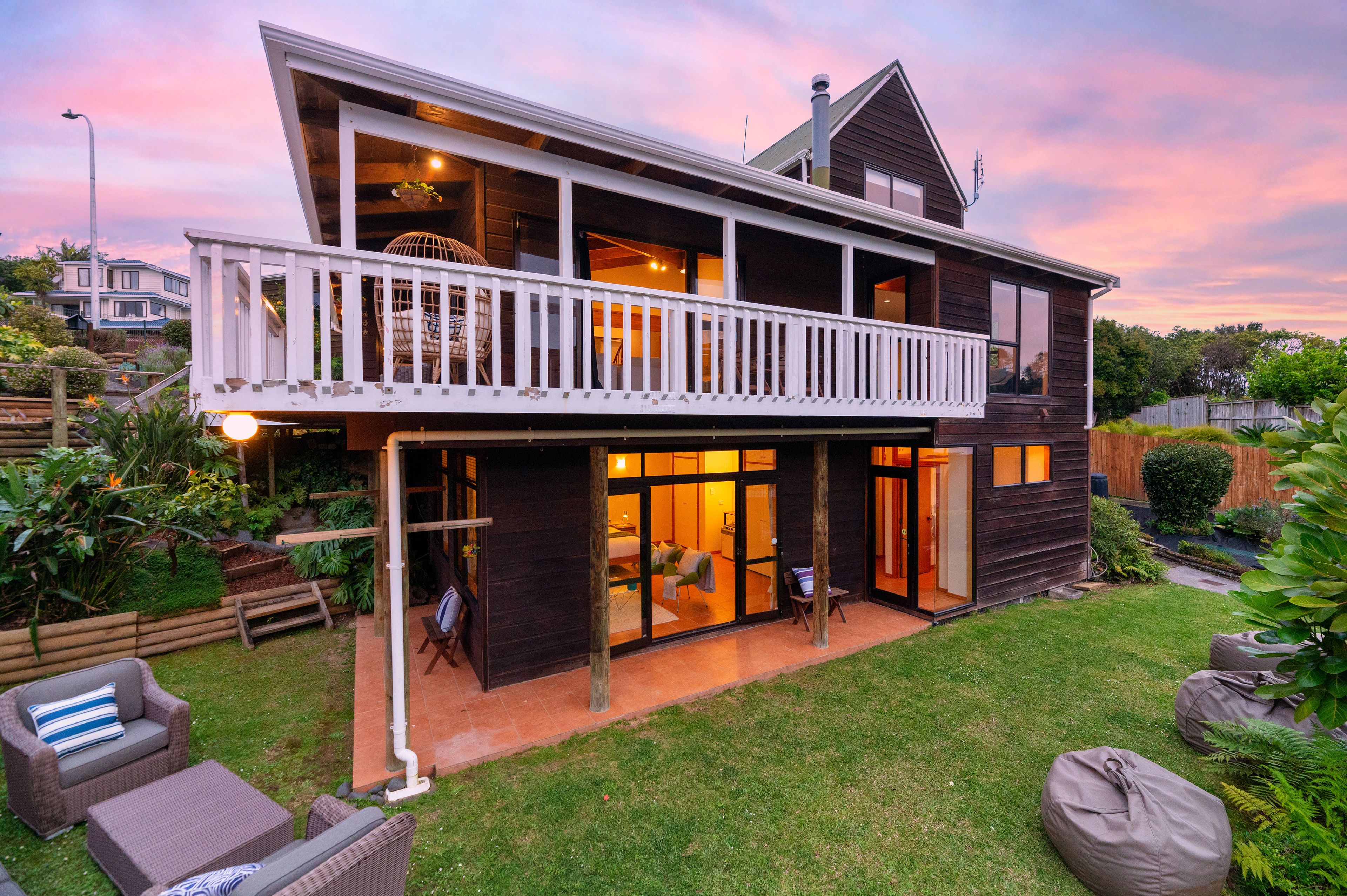 With a surprising bushy outlook, relax to the sound of tui serenading across the valley! The north-facing deck certainly offers some quiet time with your coffee and book or later on, unwind with an early evening drink downstairs in complete privacy. This home definitely radiates a feeling that you are in a lush botanical resort experiencing the dream of travel to an exotic place.