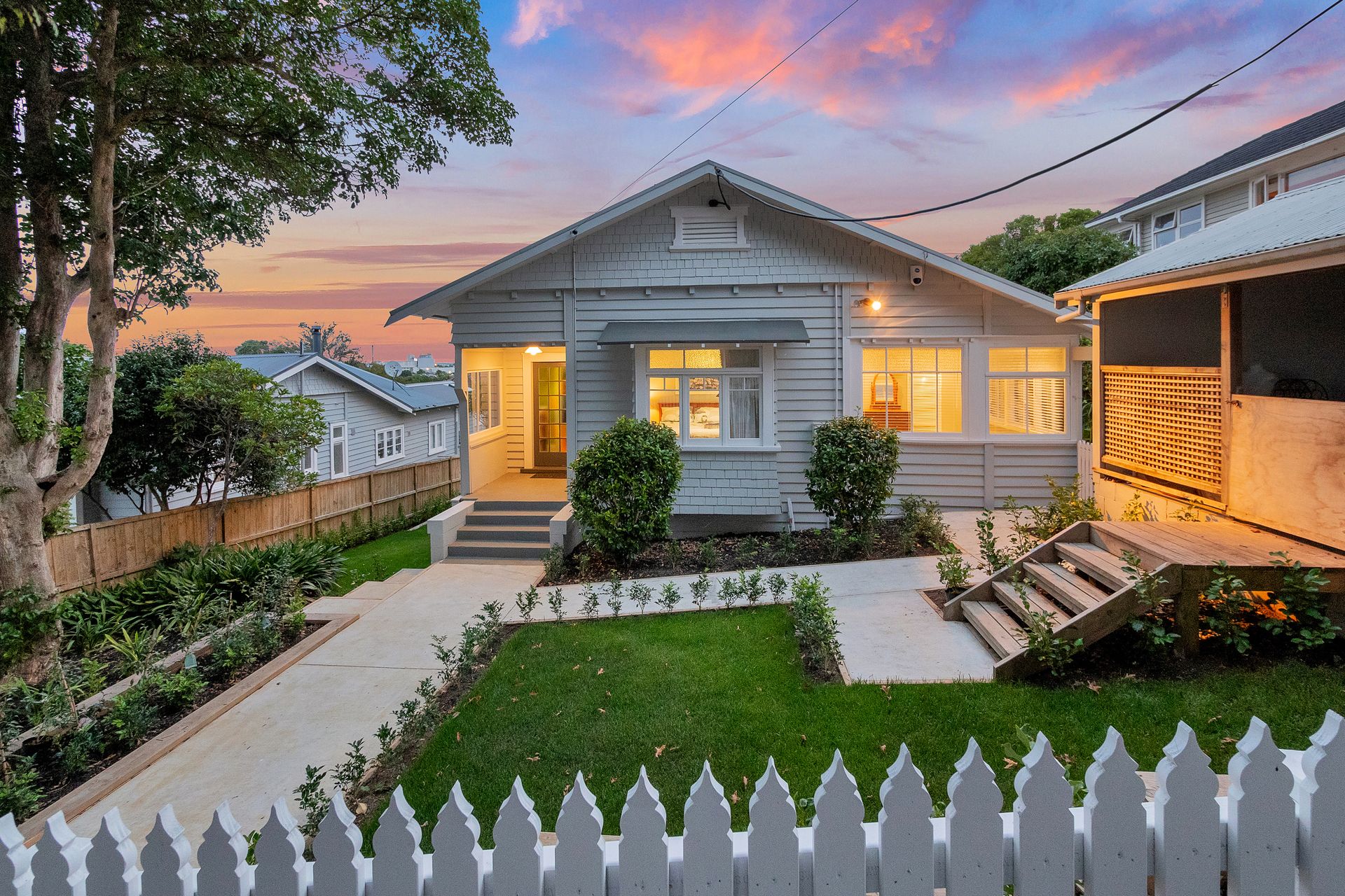 By way of contemporary style with the reminisce of 1920's features this home echoes the charm of Bungalow living at its modern best. With immediate street appeal and that all-classic white picket fence, you'll be sure to cry out Honey I'm home' on your first visit!