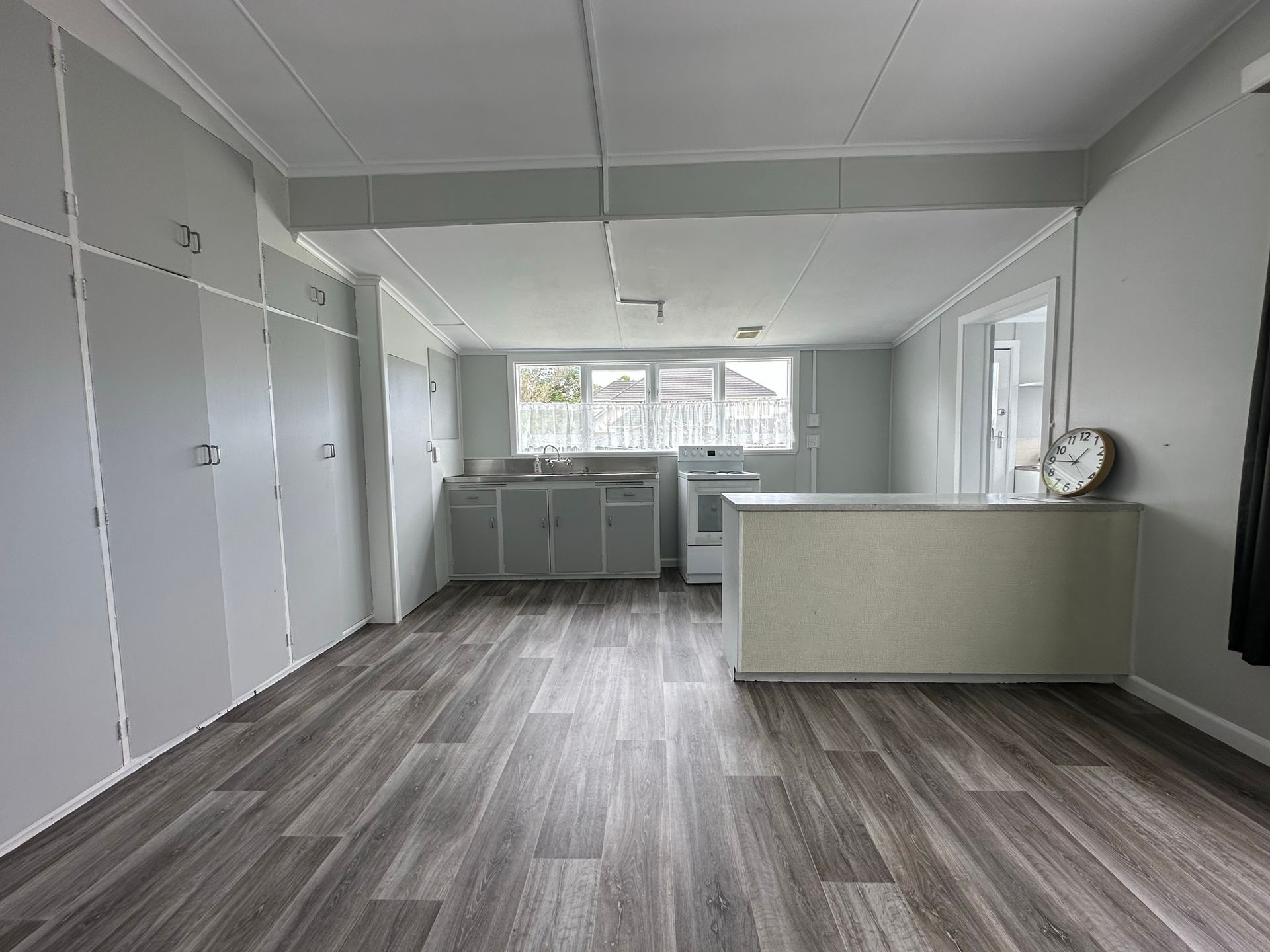 At the rear of the home, a full-width open-plan kitchen and dining area provides a sociable hub for everyday living, with views over the sunny rear garden, excellent storage and seamless access to a separate laundry. A spacious central lounge, complete with heatpump, forms the heart of the home, perfect for relaxing or entertaining.
