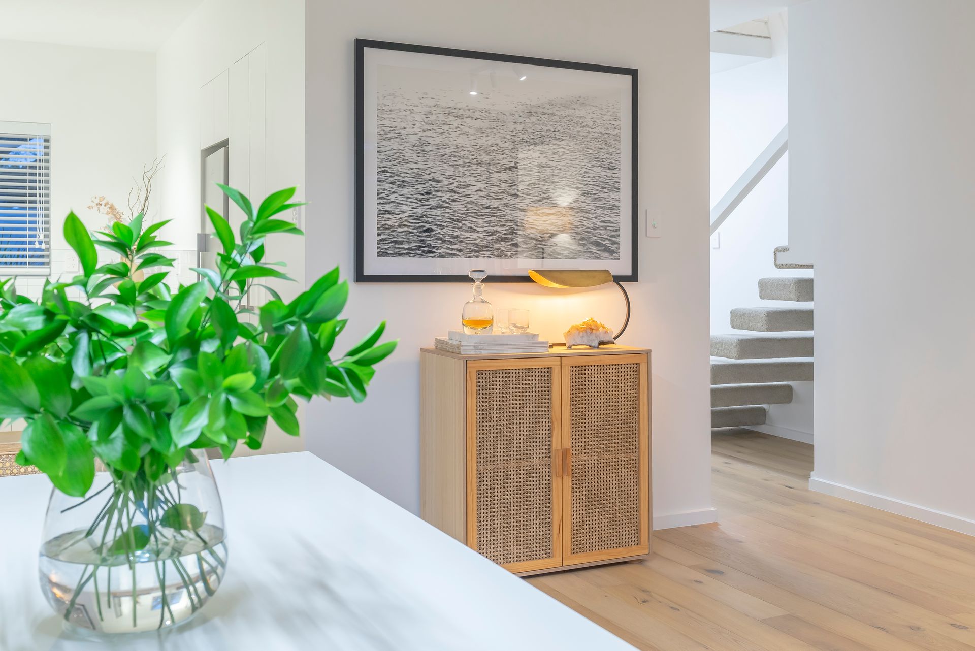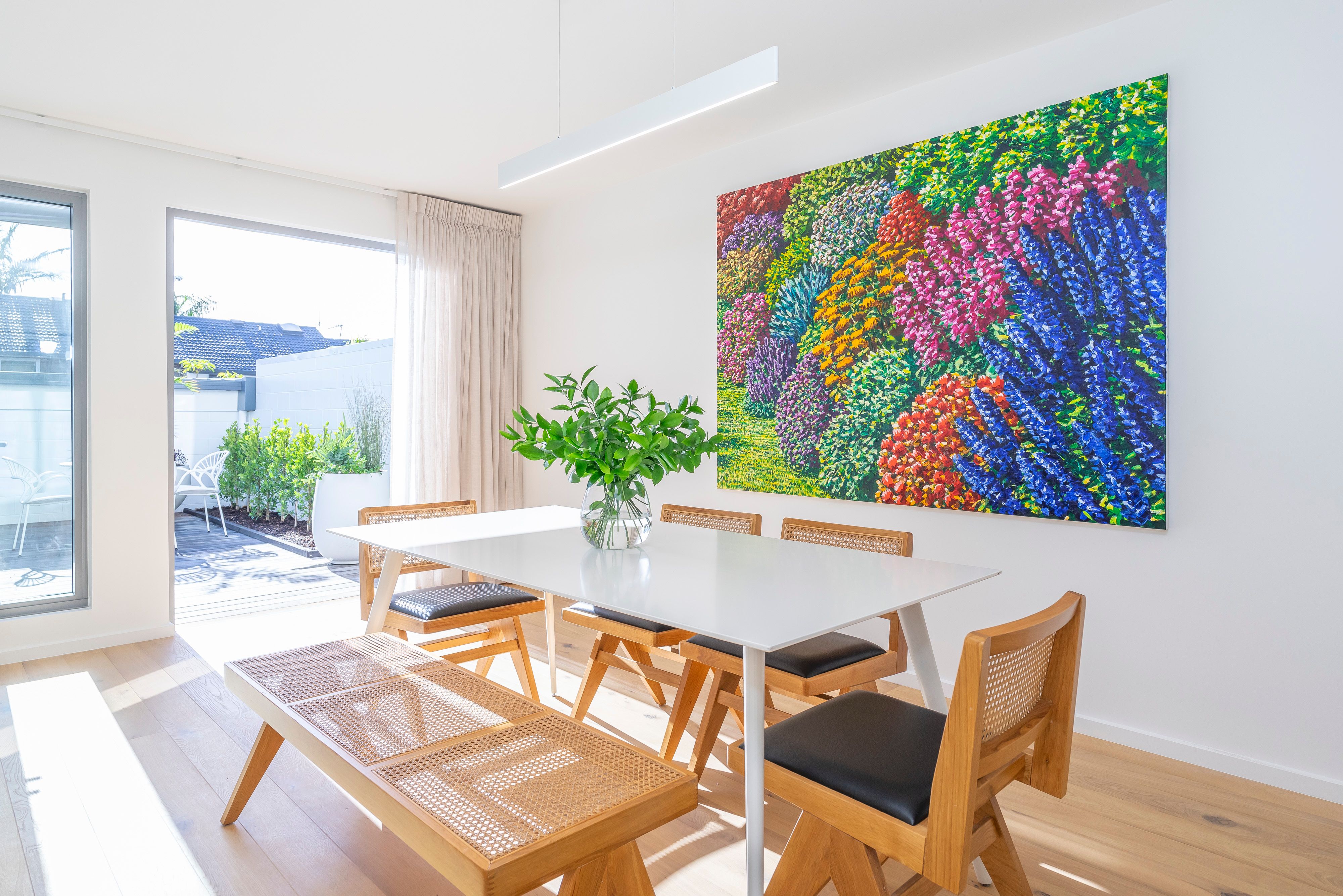 The recent transformation includes new aluminium joinery with double glazing, LED lighting, plush carpet in each of the three bedrooms and a luxurious tiled bathroom with underfloor heating complemented by a powder room downstairs.