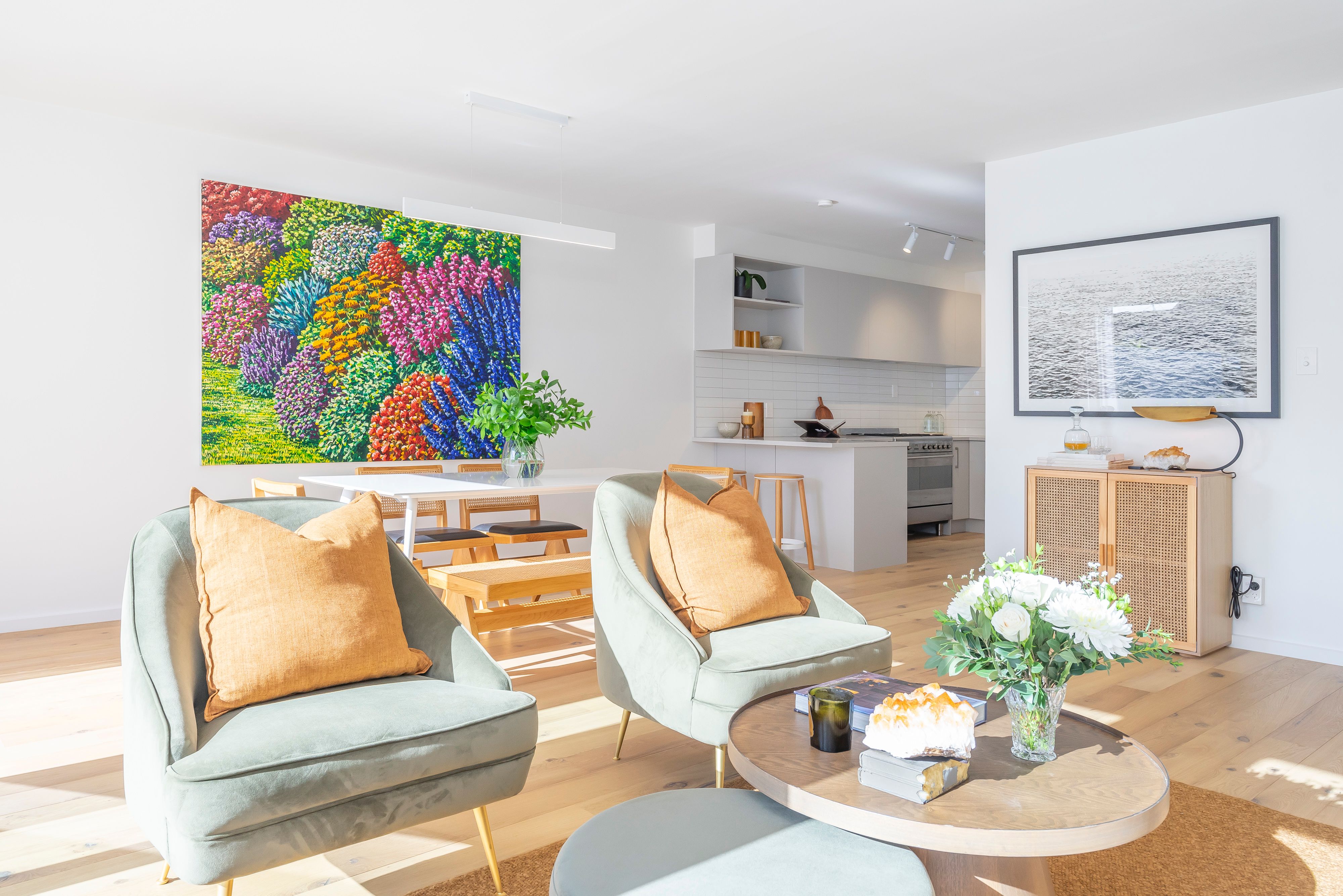 Occupying a sensational north facing position with elegant oak flooring that stretches out across the open plan living, dining and contemporary kitchen.