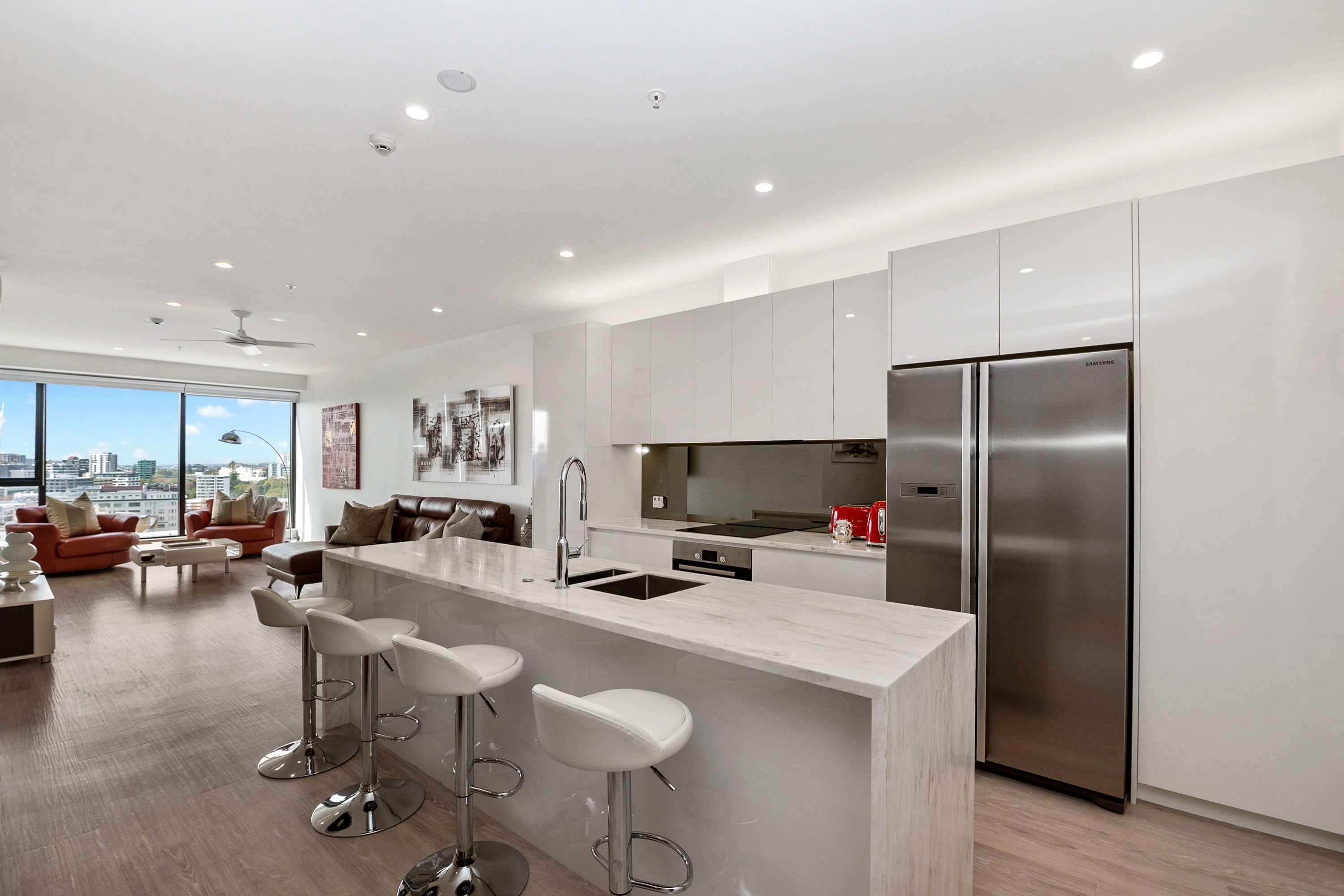 Young & old alike will never tire coming home to this beautifully presented central city home with its unbelievable sweeping views; sparkling lights of the city at night and lovely water views of the harbour and beyond.