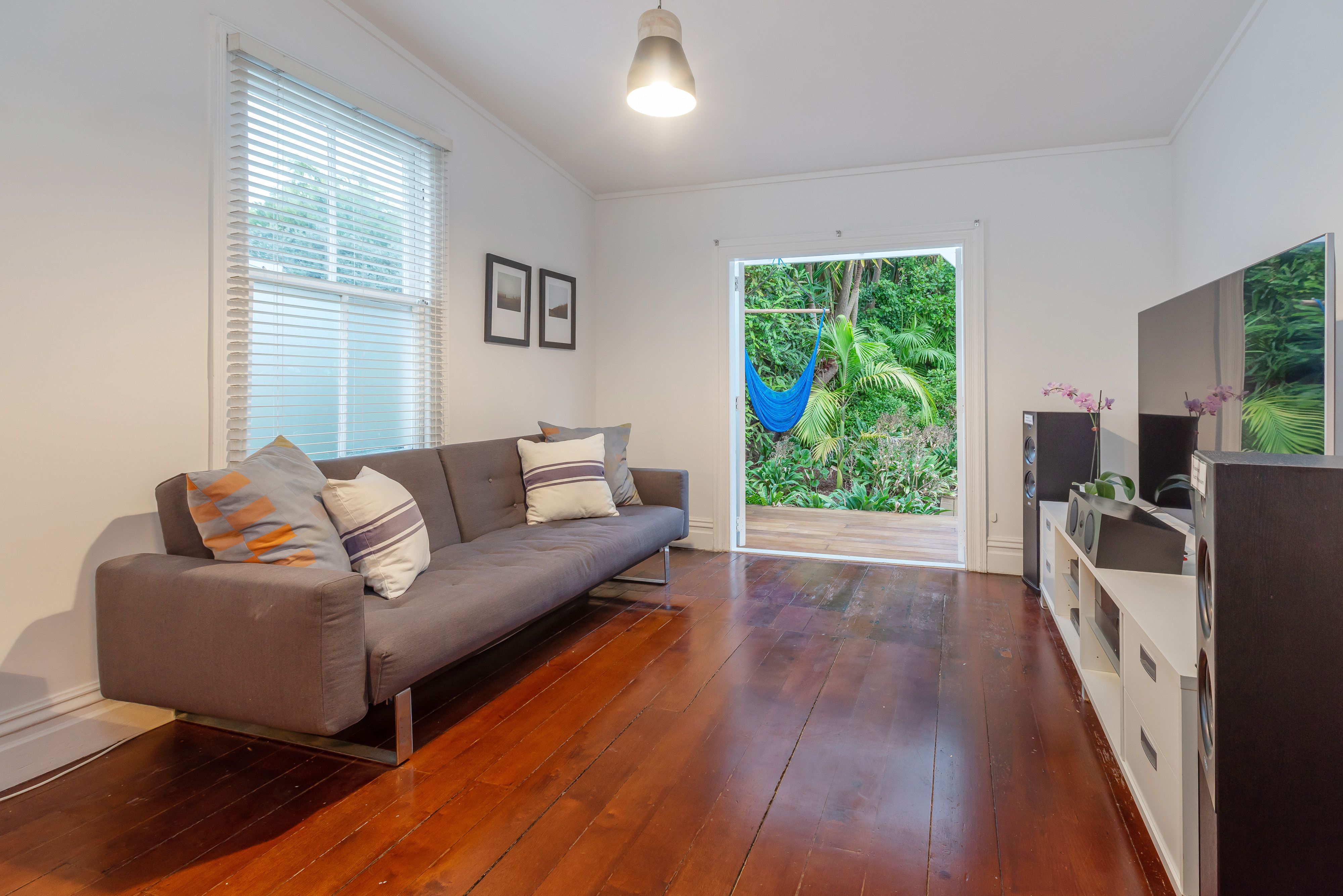 From the living area, bi-fold doors invite you out to the covered deck and wonderfully private garden filled with mature plantings and a built-in bench seat, the perfect spot for these precious long summery, autumnal evenings.