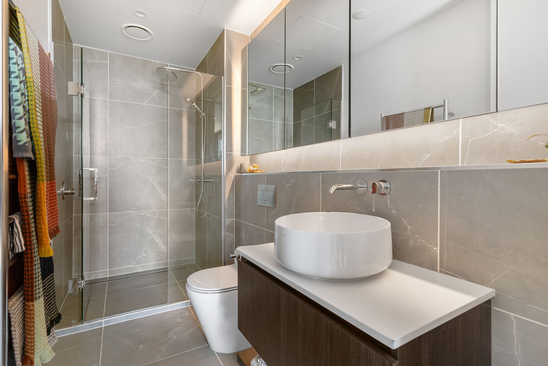 Both bedrooms are good-sized doubles, with the primary boasting walk-through robe and ensuite and doors opening out to the all-weather balcony. The ensuite and guest bathrooms are luxurious retreats featuring Italian tiling, German tapware, mood lighting and underfloor heating.
