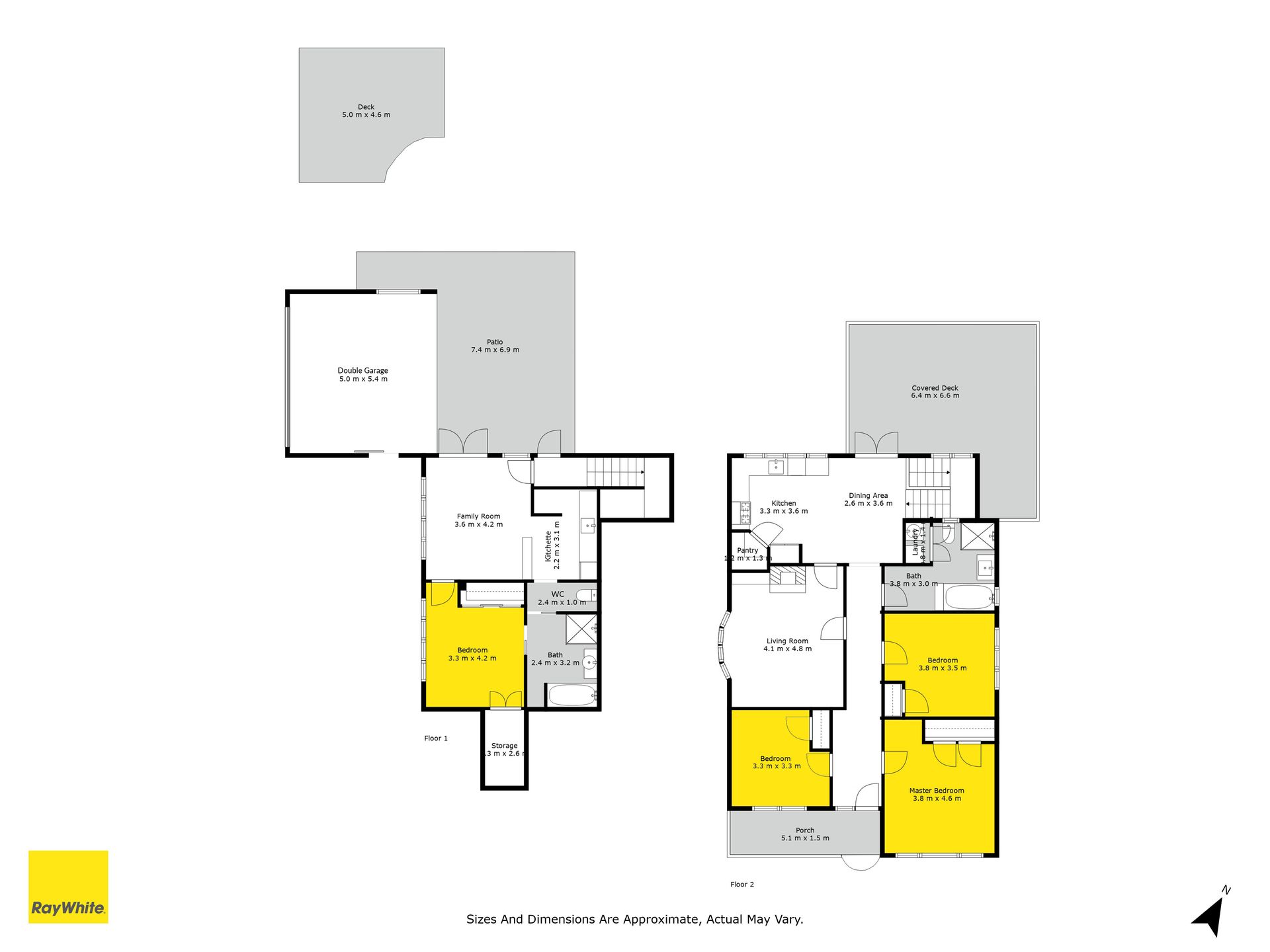 Three double bedrooms on this floor have built-in wardrobing, serviced by a chic monochrome bathroom. Downstairs, discover a fully self-contained domain with a bedroom, bathroom, kitchenette and living area, ideal for extended family, guests or a work from home office zone. Ducted central heating across both floors ensures the perfect temperature no matter the season.