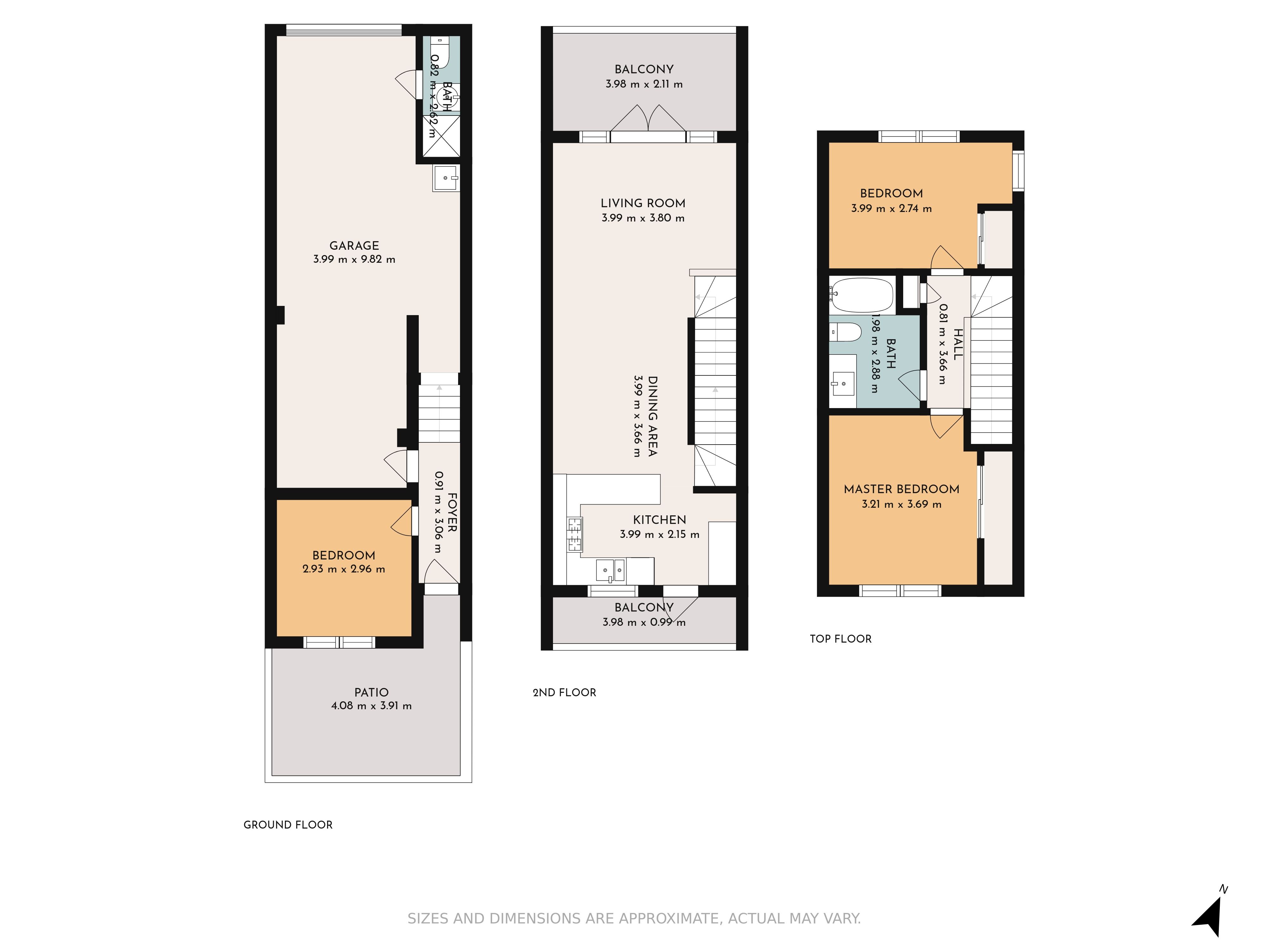 Built over three levels - on the ground floor is a tandem garage, carpeted double garage will easily convert to a media room, bathroom, and a generous size bedroom to the left of the front door entrance.