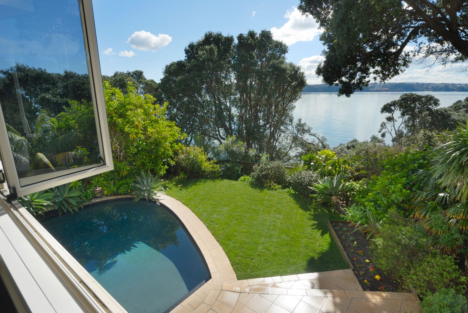 Throw open the doors downstairs and relax around the pool, or wander down the steps to the sandy beach below. Or if you prefer, you can sunbathe on the decks extending out from both the formal lounge and open plan living spaces upstairs. Whatever your choice, you will enjoy the beauty of close up harbour views, bird song and the quiet relaxing ambience this home offers nestled in the premium neighbourhood of Herne Bay.