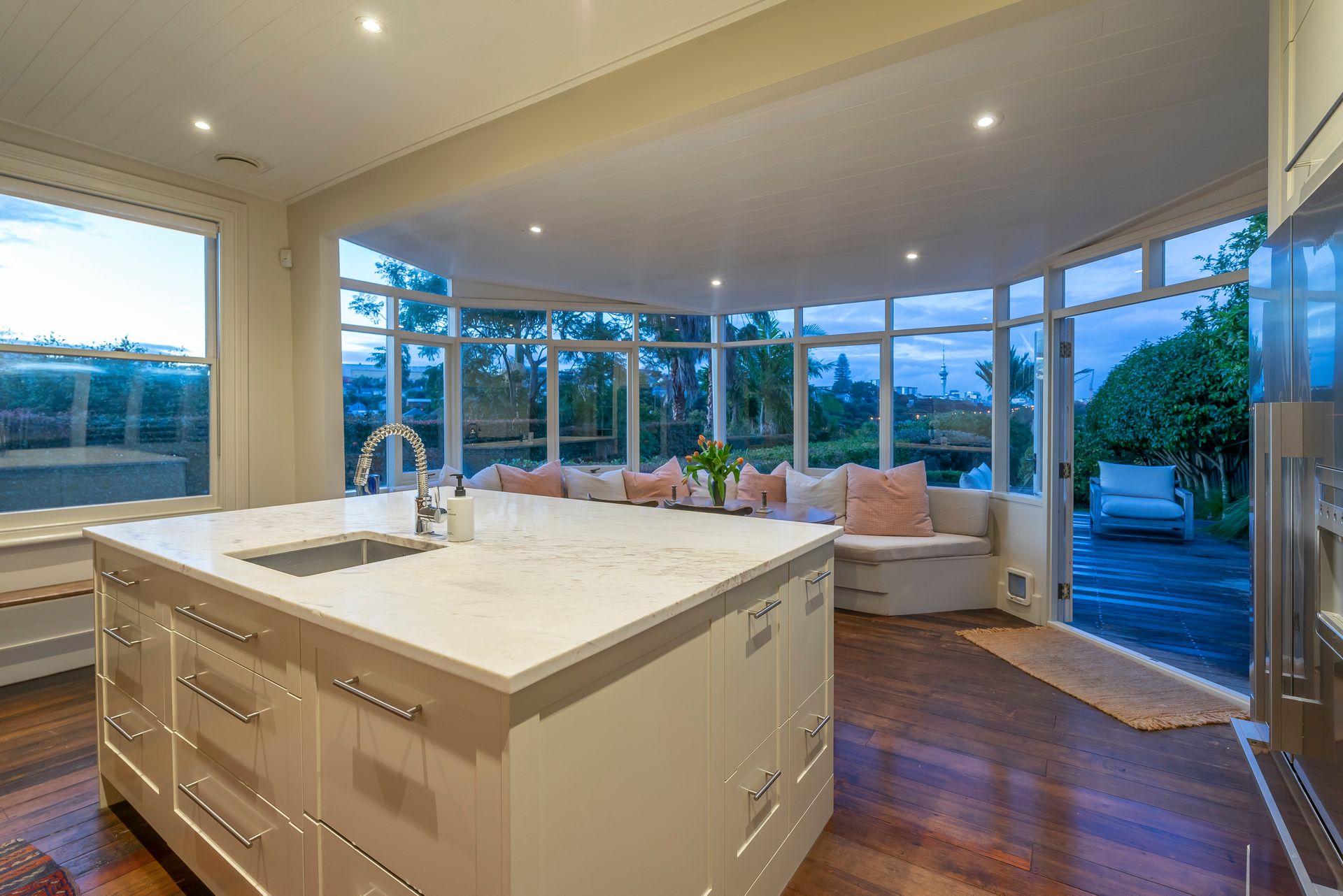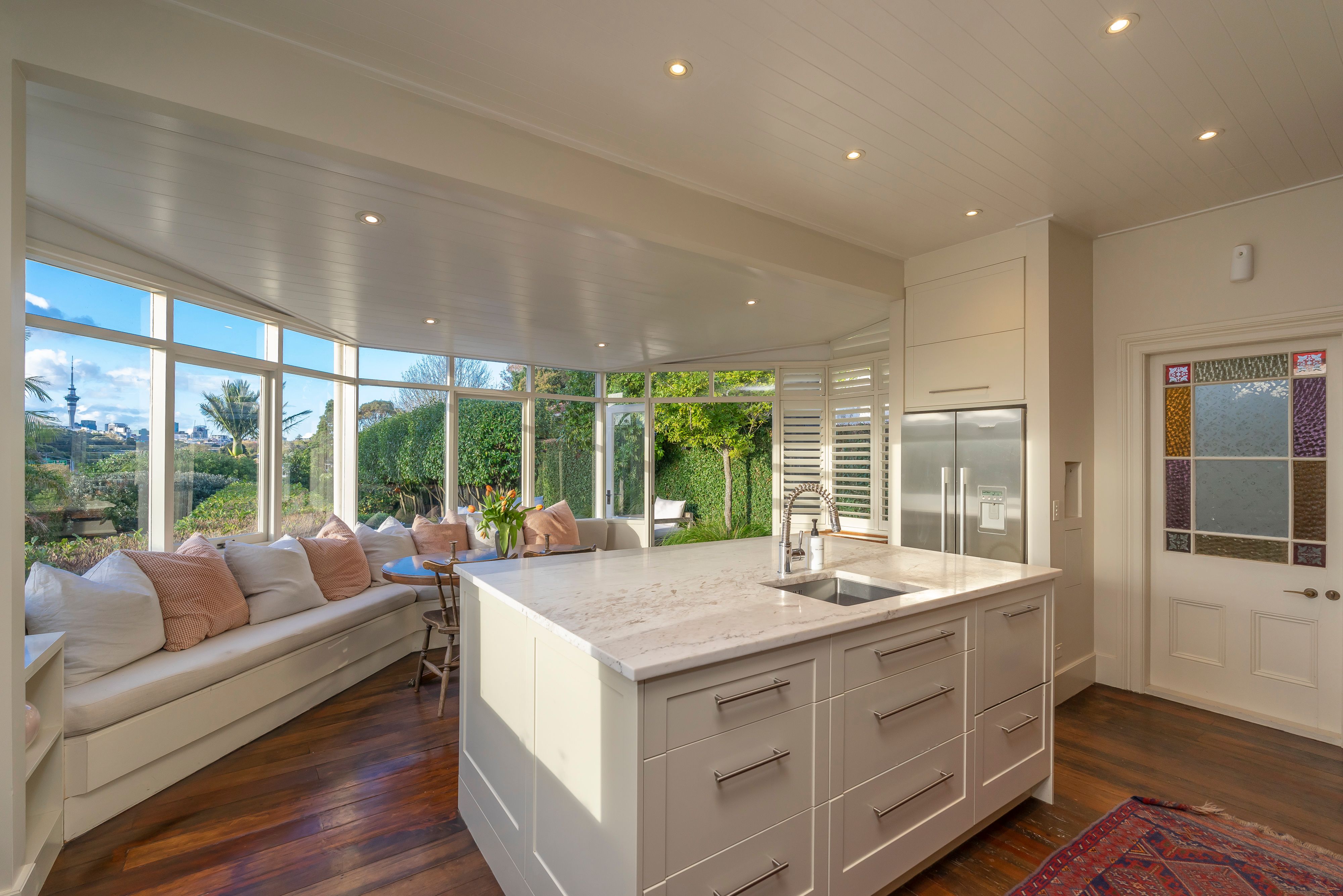 If you have an eye for craftsmanship and appreciation of timeless quality, then you will love the exquisite design and finish of 19 New Bond Street in Kingsland. The much-loved first home of two of New Zealand's most successful fashion designers, this circa 1900 villa is sure to enchant. A favourite feature is the simply amazing window seat in the dining conservatory, enjoying the most wistful and calming outlook over the expansive and beautifully landscaped 761m2 grounds this is a firecracker of a view with Auckland's SkyTower twinkling in the distance. Intermingling with this space, the most delicious marble kitchen, completely bespoke and beautifully made, there's nothing off the shelf about this home.