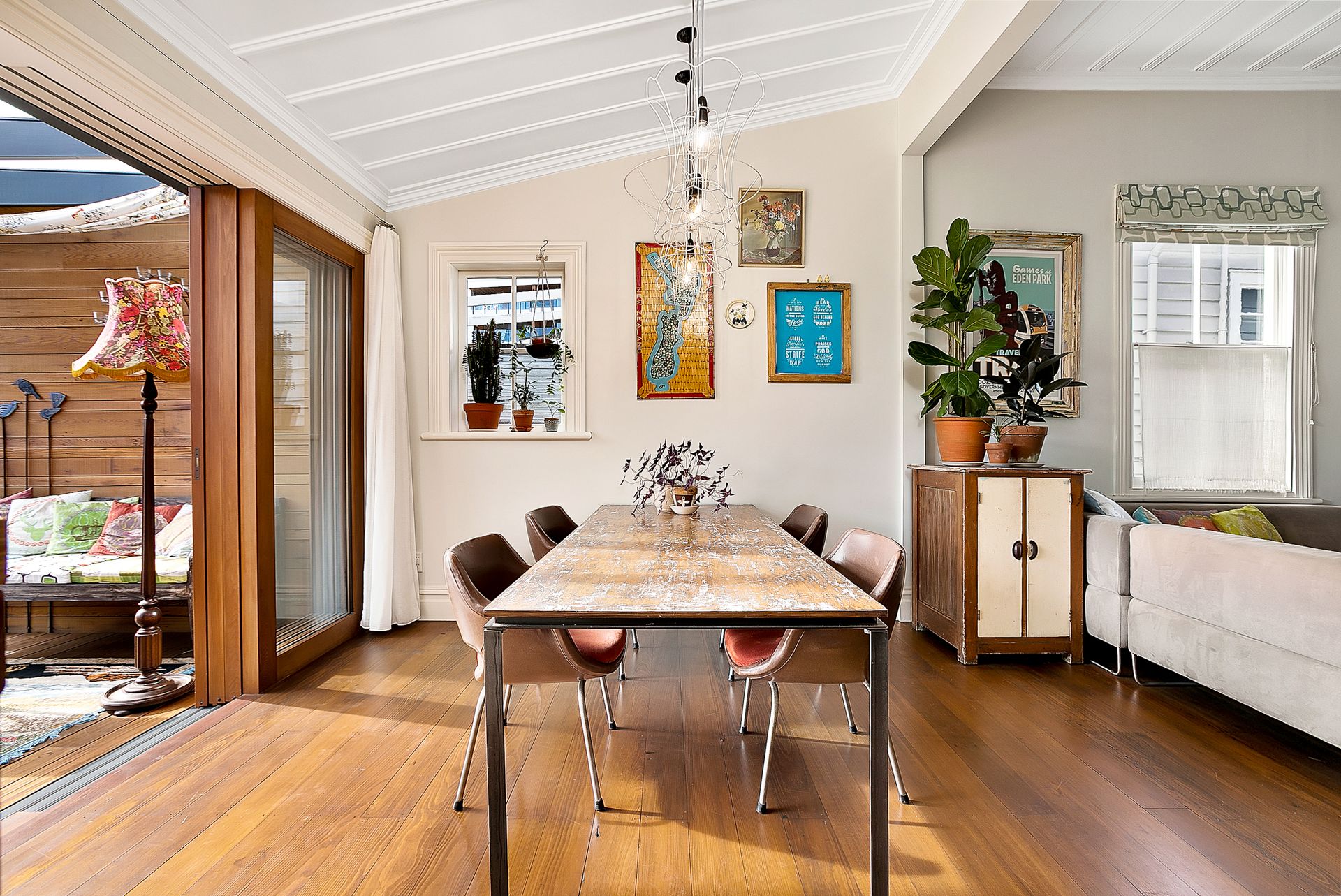 An absolute treasure-trove of a home, you will be delighted with the design and detail. Renovated and impeccably presented over two levels, the flexible and spacious floorplan can easily host a whole range of family shapes and sizes. Upstairs you have two gorgeous double bedrooms, and a further hobby room which could easily become a third double on this level. A wood burner, central gas heating, and insulation keeps you warm and cosy. There's awesome openness in the living zone, with easy flow to a glass covered deck - what a spot to sit all year round taking in the inner city ambience. The kitchen is to-die-for. The modern bohemian vibe is perfectly executed, while remaining practical and brilliantly appointed.