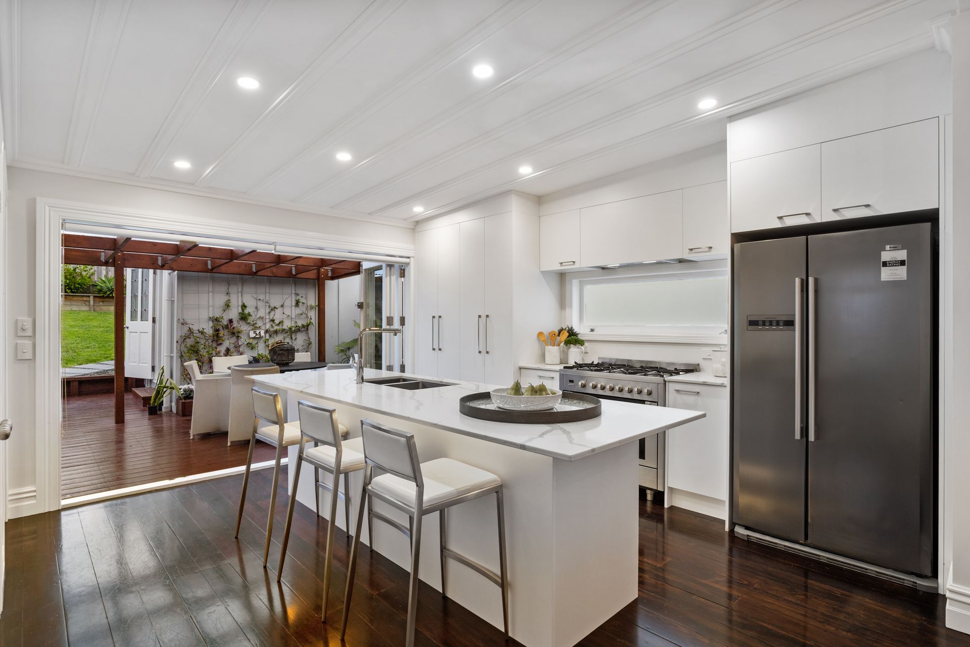 Meticulously rebuilt 'as new' with no expense spared, the home has been re-lined, re-wired and with new flooring and has generous proportions and appealing heritage features throughout, there is nothing left to do! This is complemented by sophisticated renovations, a designer kitchen and bathrooms to match. Versatile accommodation awaits the whole family with all four double bedrooms and a stunning bathroom flowing off the central hall. The master is a romantic retreat with its glamourous ensuite. The rear of the home is a gorgeous open plan entertaining nirvana with effortless flow to luscious landscaped gardens beyond and a delightful freestanding studio with a multitude of uses. This oasis is one of the loveliest we've seen for some time and has been cleverly created and planned by our seller for maximum impact with minimum upkeep. Secluded and sun drenched, this is backyard bliss at its very best.