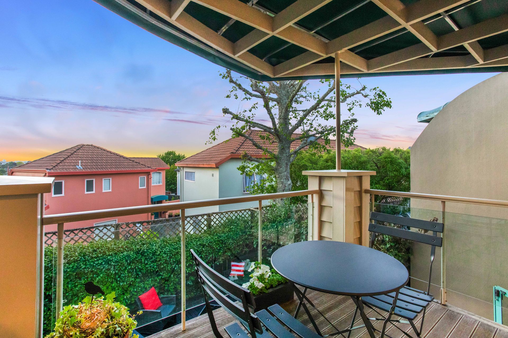 Discover this beautifully designed split-level garden, terraced house, perfectly positioned to capture stunning suburban views with glimpses of Auckland city. Offering three spacious bedrooms and two well-appointed bathrooms, this home is thoughtfully laid out for modern living.