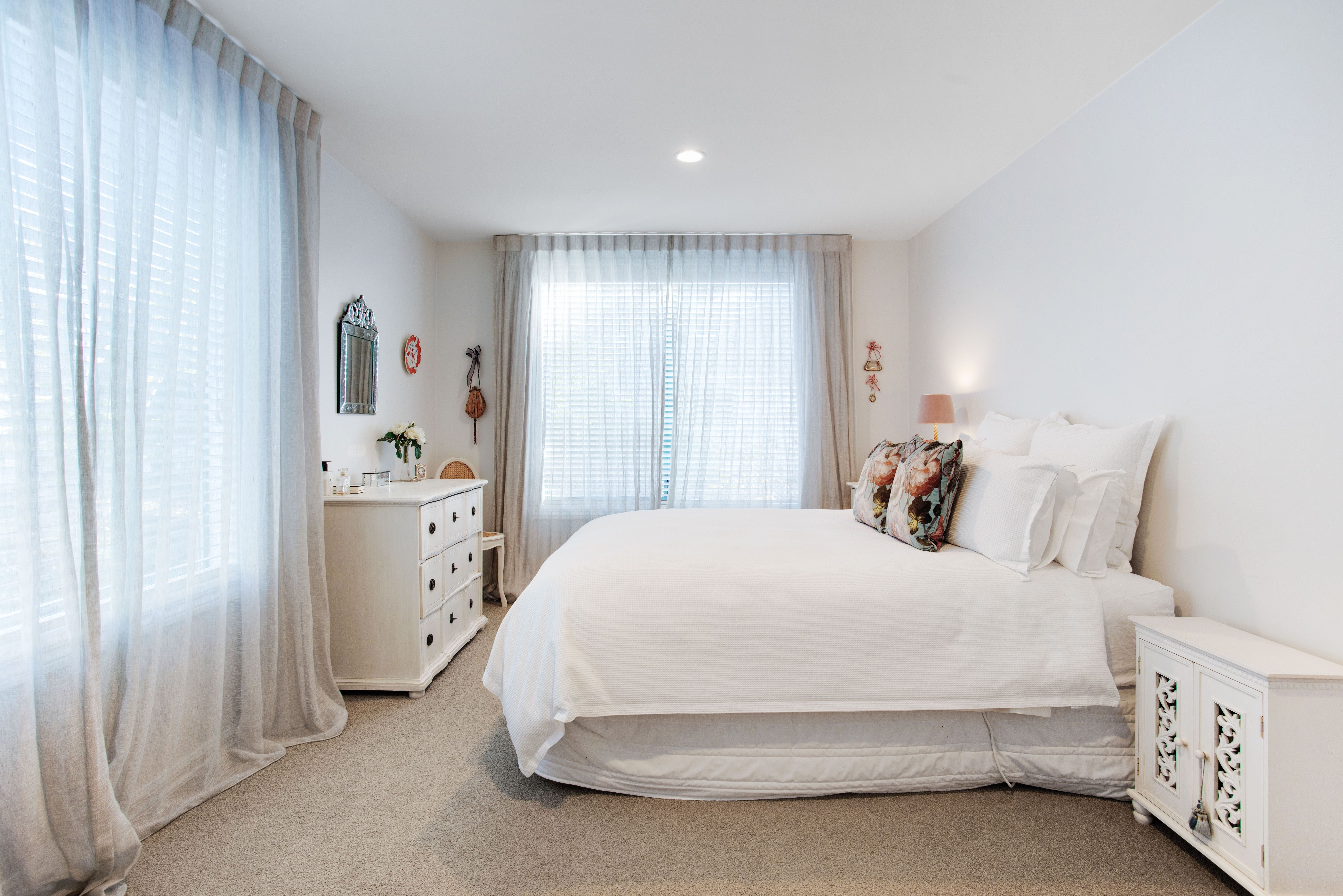 The master bedroom on the upper level is a true sanctuary, featuring built-in storage and easy access to a separate bathroom that conveniently functions as a near-ensuite.