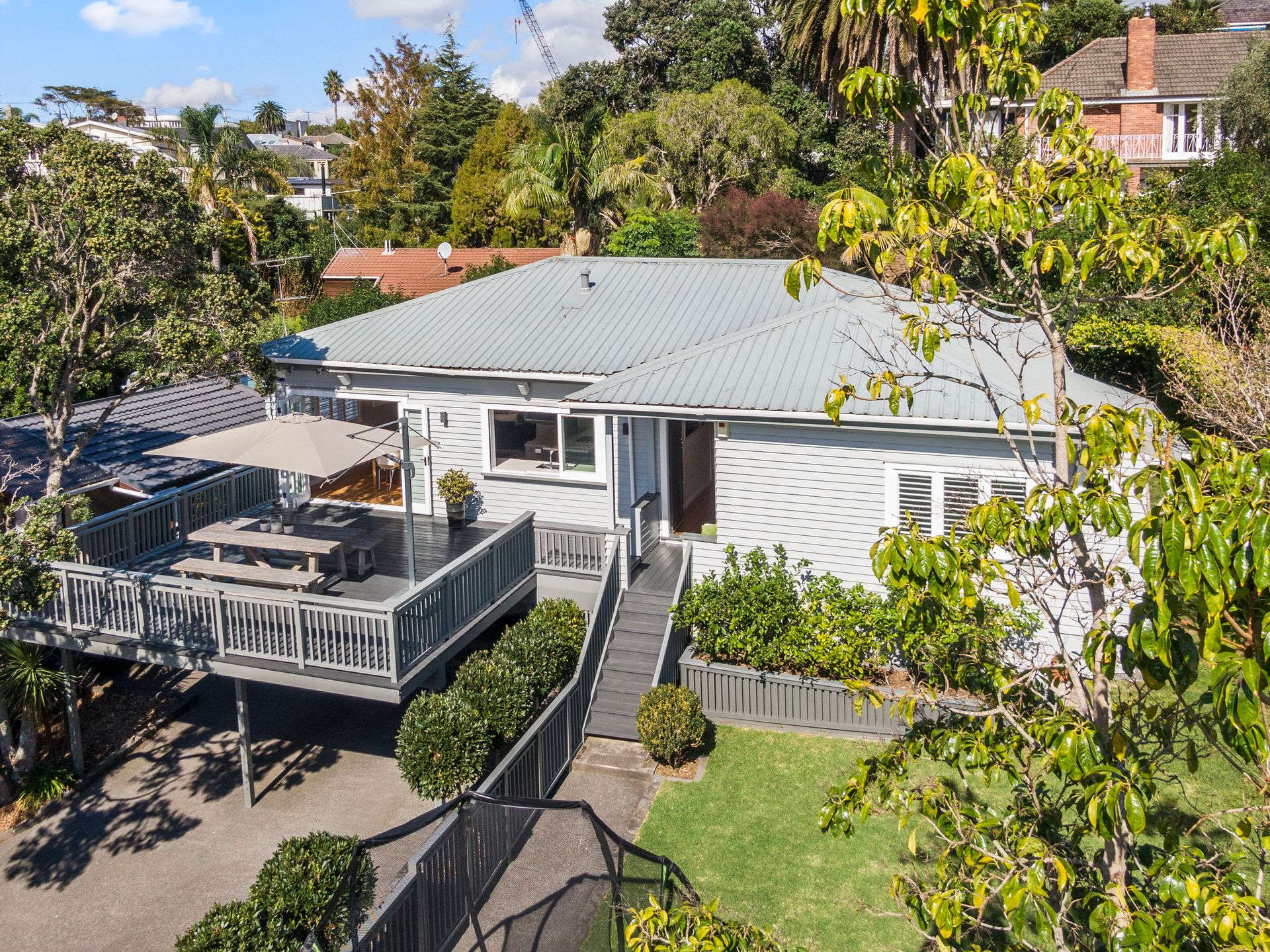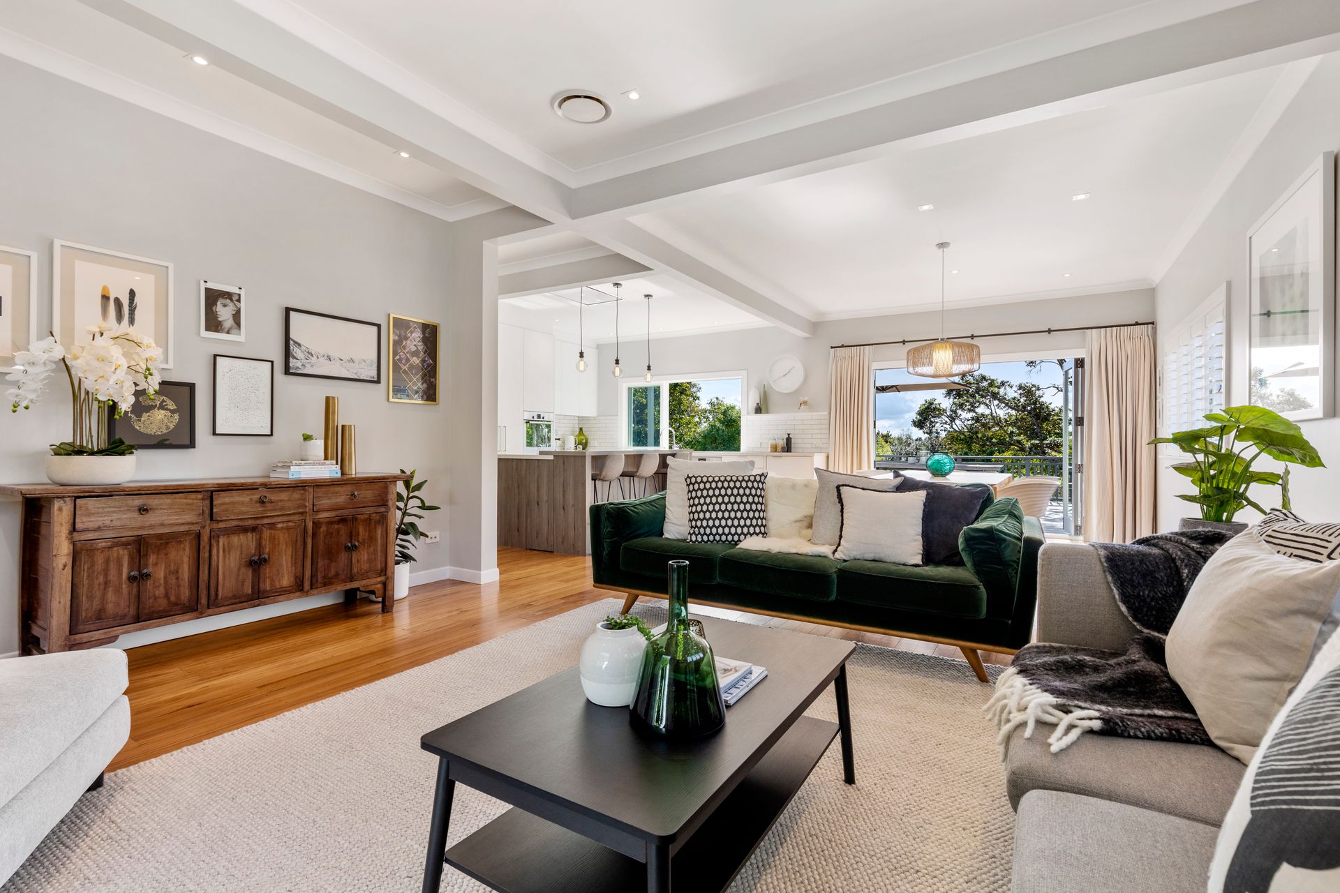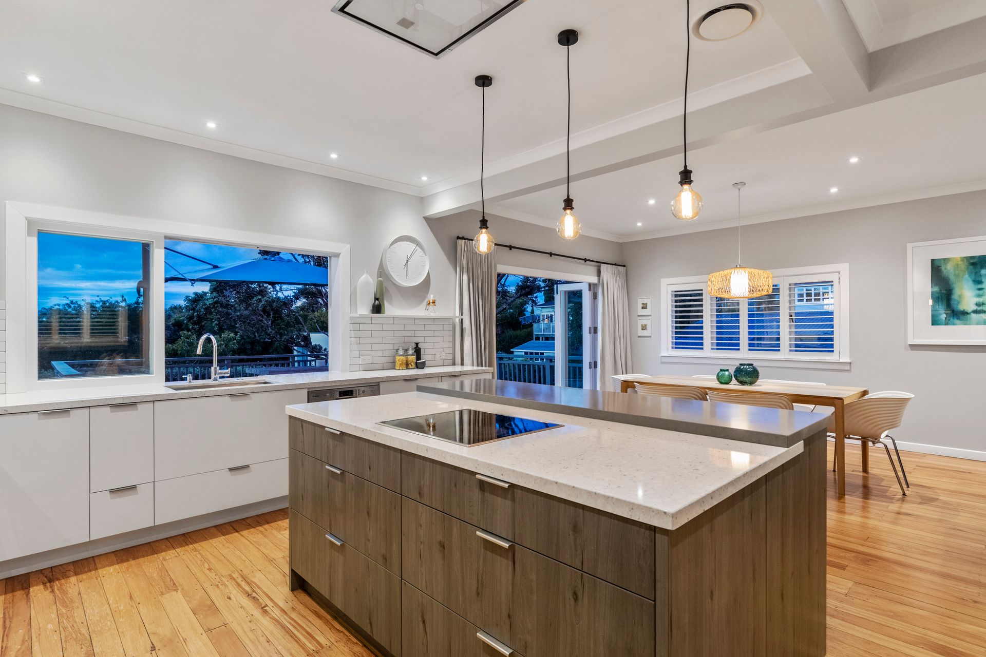 Original timber floors and a contemporary treatment to a sophisticated neutral toned interior creates an elegant realm for family and entertaining. Reimagined living room spaces with plantation shutters are a modern match to easy flow through French doors reaching out onto a screened deck at one end and its colossal north facing counterpart at the other. The alfresco vibe is enriched by ample spaces on both decks and seamless access to the stunning designer kitchen - a vision of engineered stone, integrated appliances, and a stylish statement island. A separate deep toned family lounge can be closed off for study, media viewing, fourth bedroom or for privacy-seekers who just want their space. Warmed or cooled throughout by ducted heat pump and HRV system, the accommodation assures relaxed slumber for all with three double bedrooms including master with ensuite and a second bathroom with separate toilet. Ample storage exists throughout including bedrooms with built in closets and generous basement storage that backs onto two carport parks.