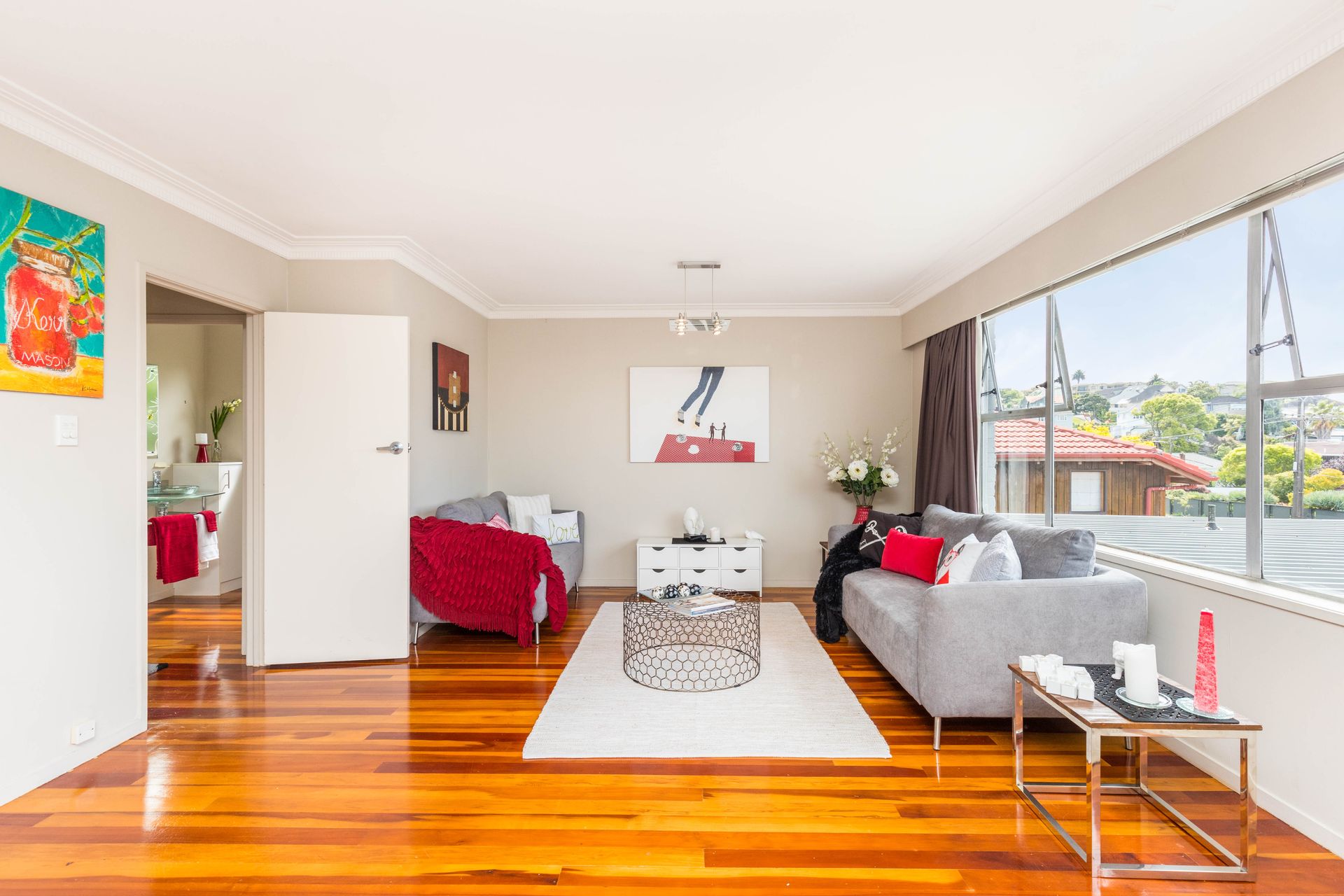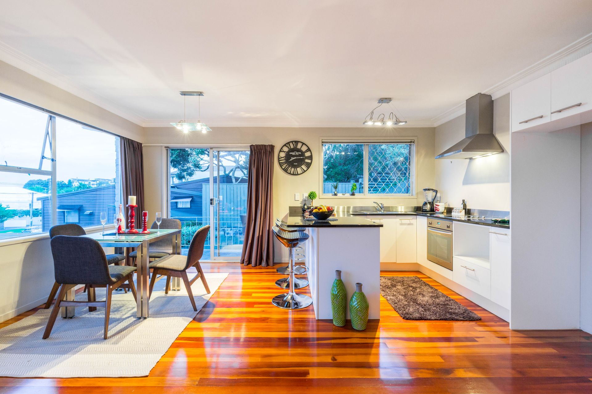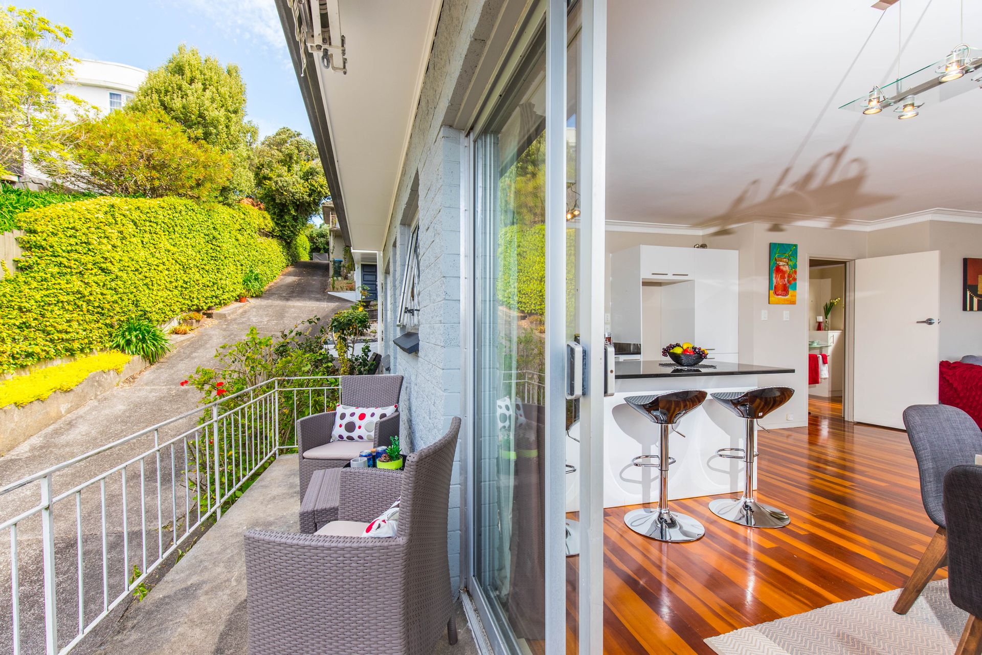 This 1960's property built of solid materials has stood the test of time and still looks great with the original wooden floors. It has a large modern open plan kitchen with granite benches, dining area and lounge where you can look out over the roof tops to Rangitoto. A northern aspect means you are bathed in all day sunshine and you can step out onto a deck to sit and relax with a gin and tonic and watch the amazing sunsets this location offers.