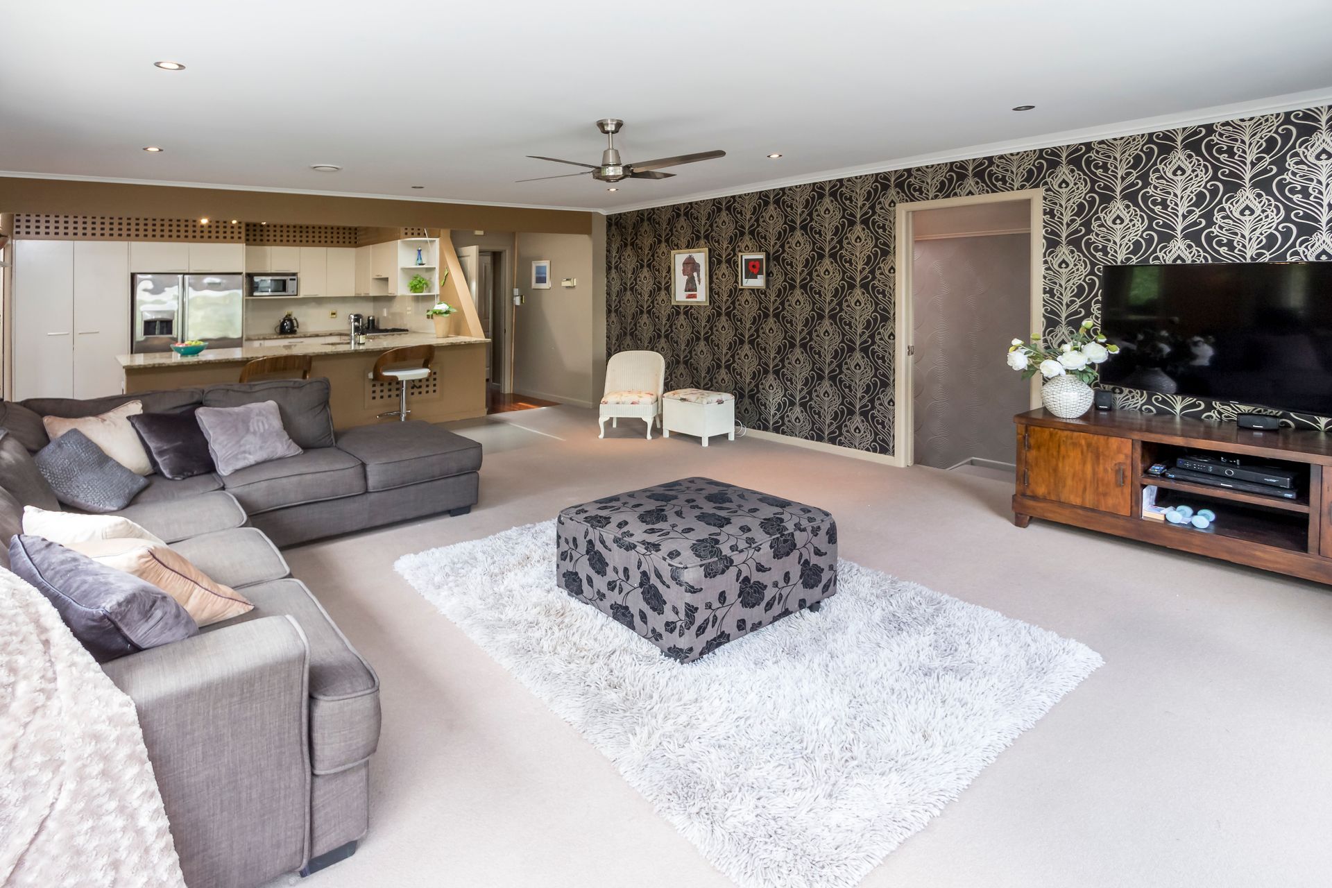 The home features: 3 double bedrooms, 1 single bedroom (or study), 2 bathrooms, kitchen, spacious living area, separate 2nd lounge, formal dining room, rumpus room (or large study), laundry, double garage plus ample storage areas.