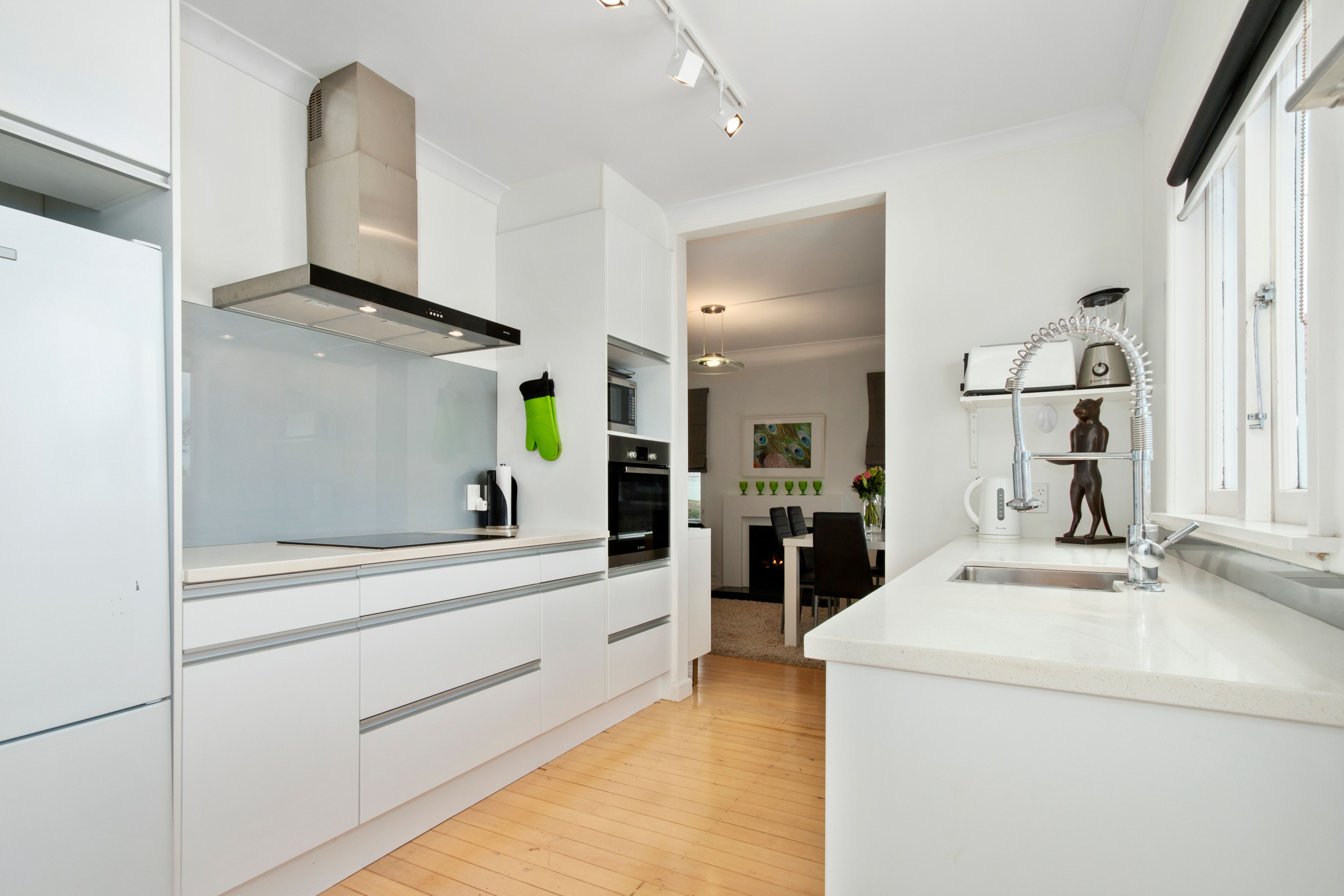 * Modern open plan kitchen and dining which leads to a sun-drenched deck - perfect for summer barbeques;