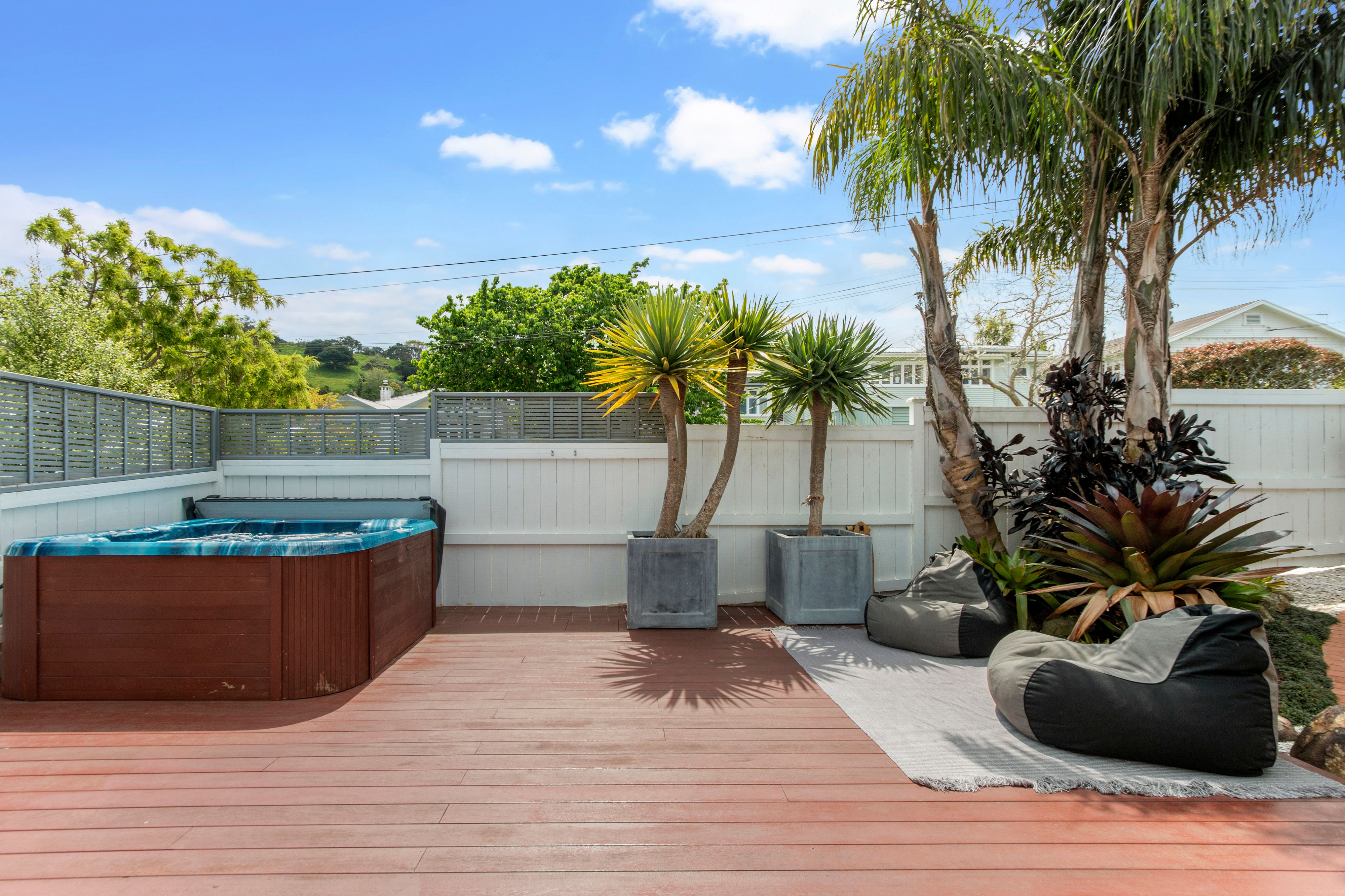 * Generous separate living that opens out to a private second deck boasting a spa pool and stunning low maintenance designer tropical garden;