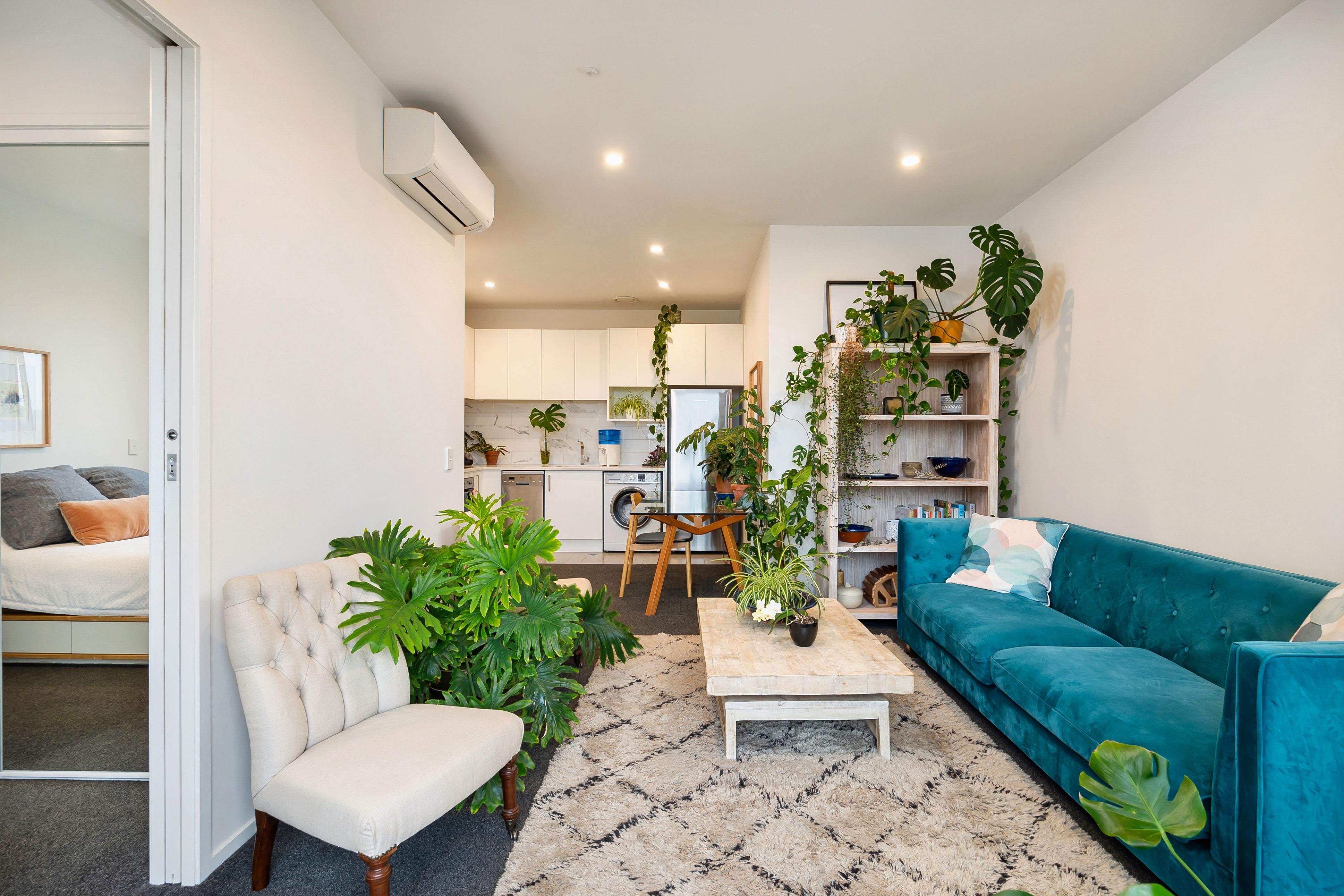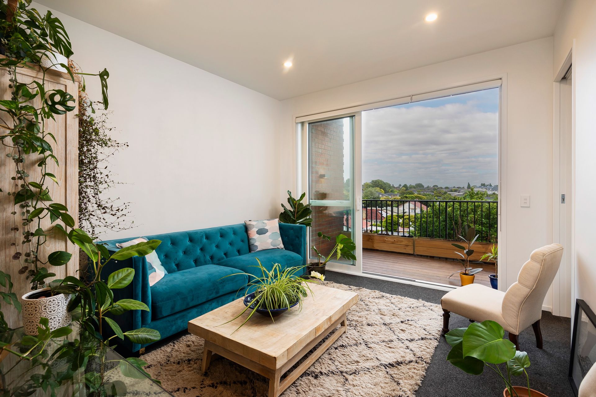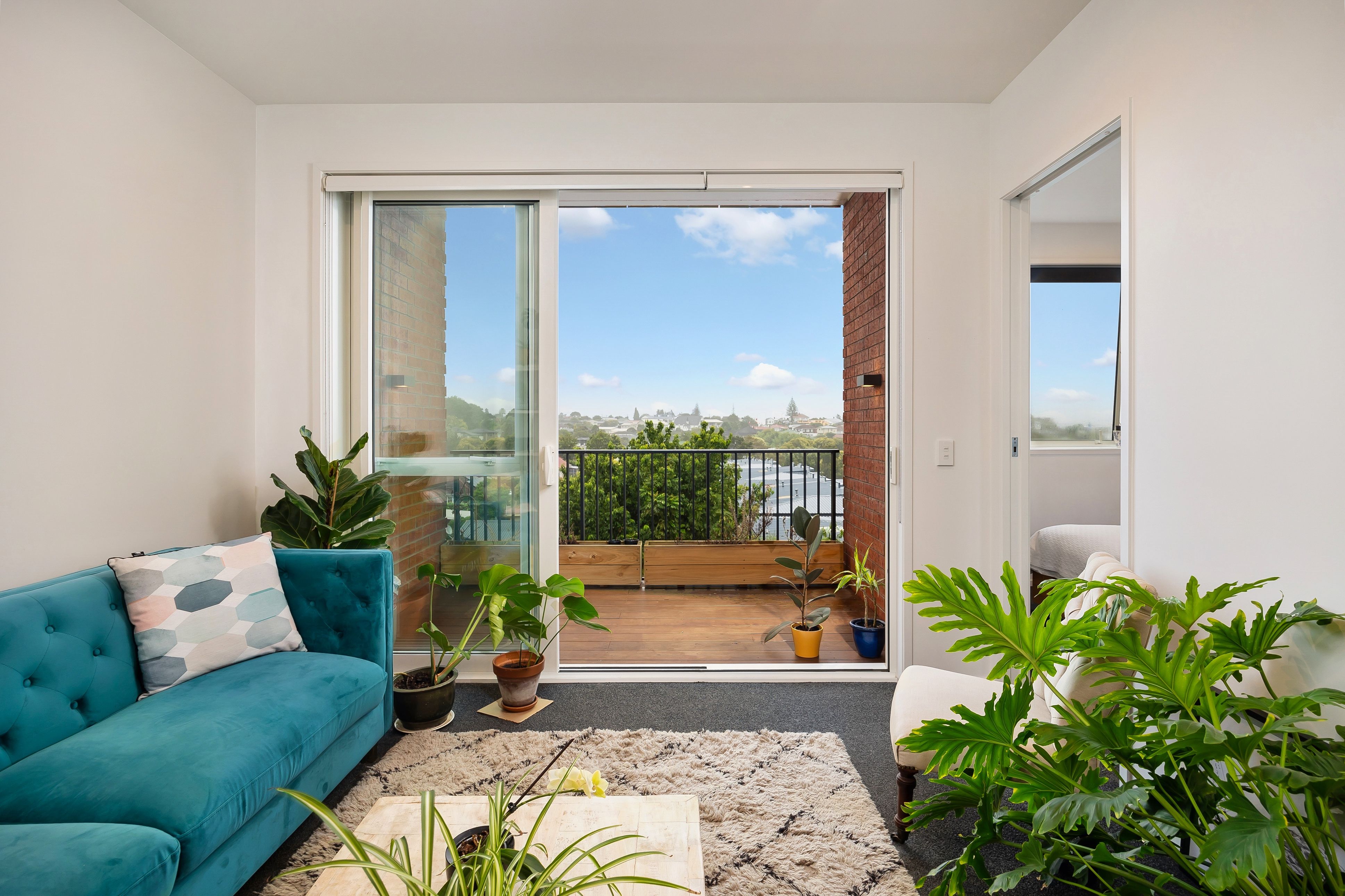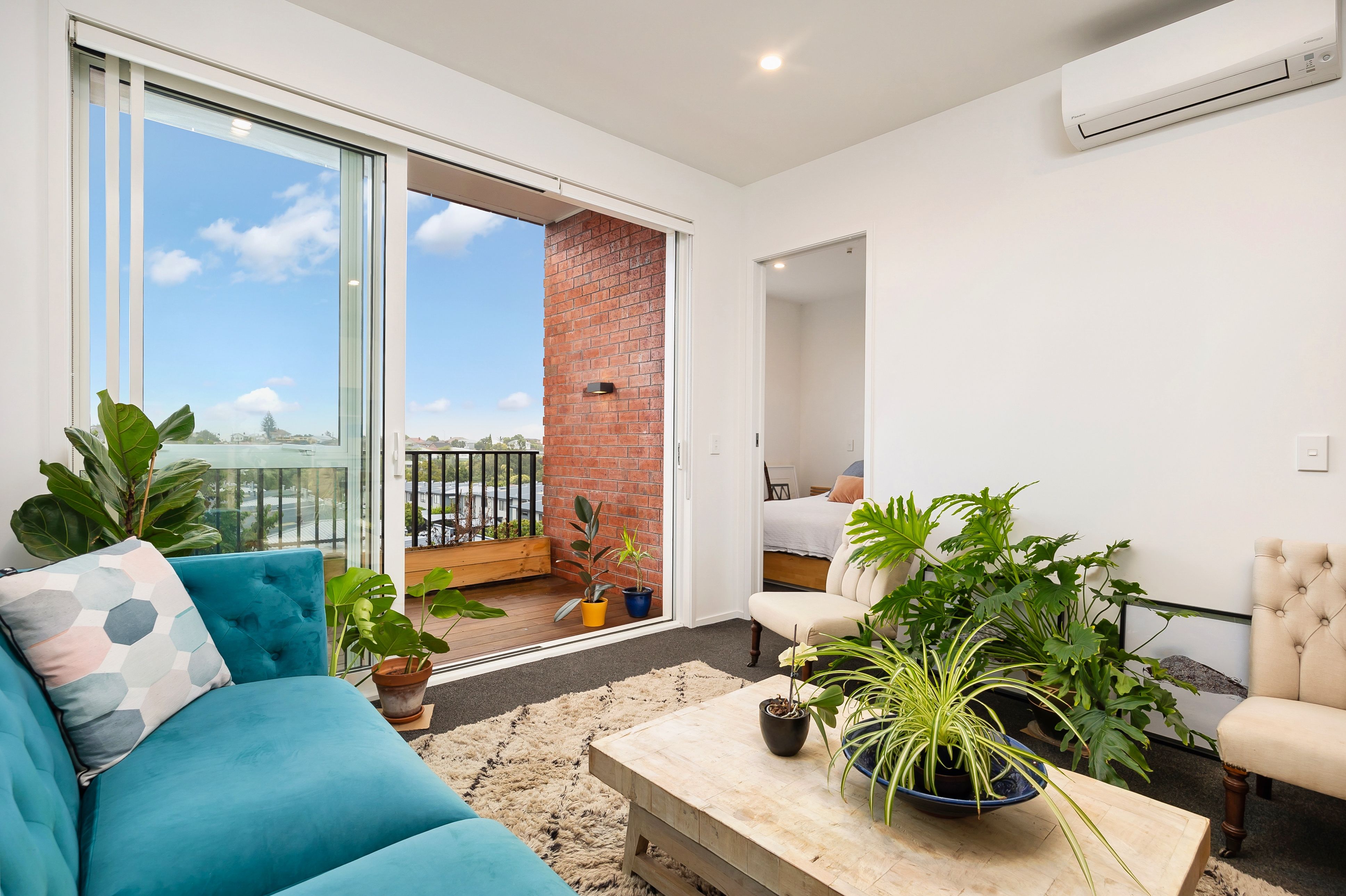 This lovely modern one double bedroom top-storey apartment is part of the Tuatahi complex in Mount Albert. The open plan kitchen and living room open onto a deck looking out towards the Waitakere Ranges. Lovely natural light and private balcony.