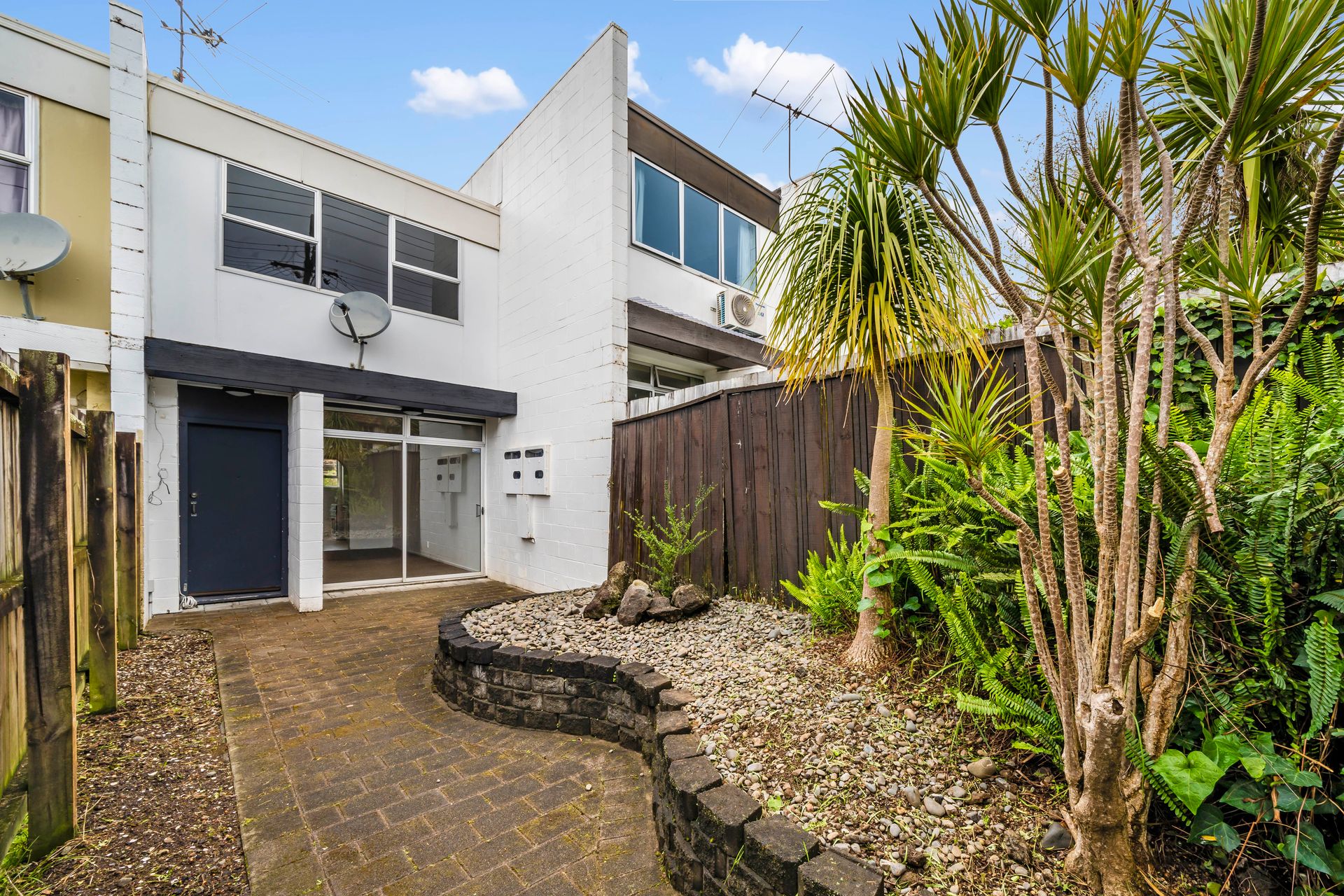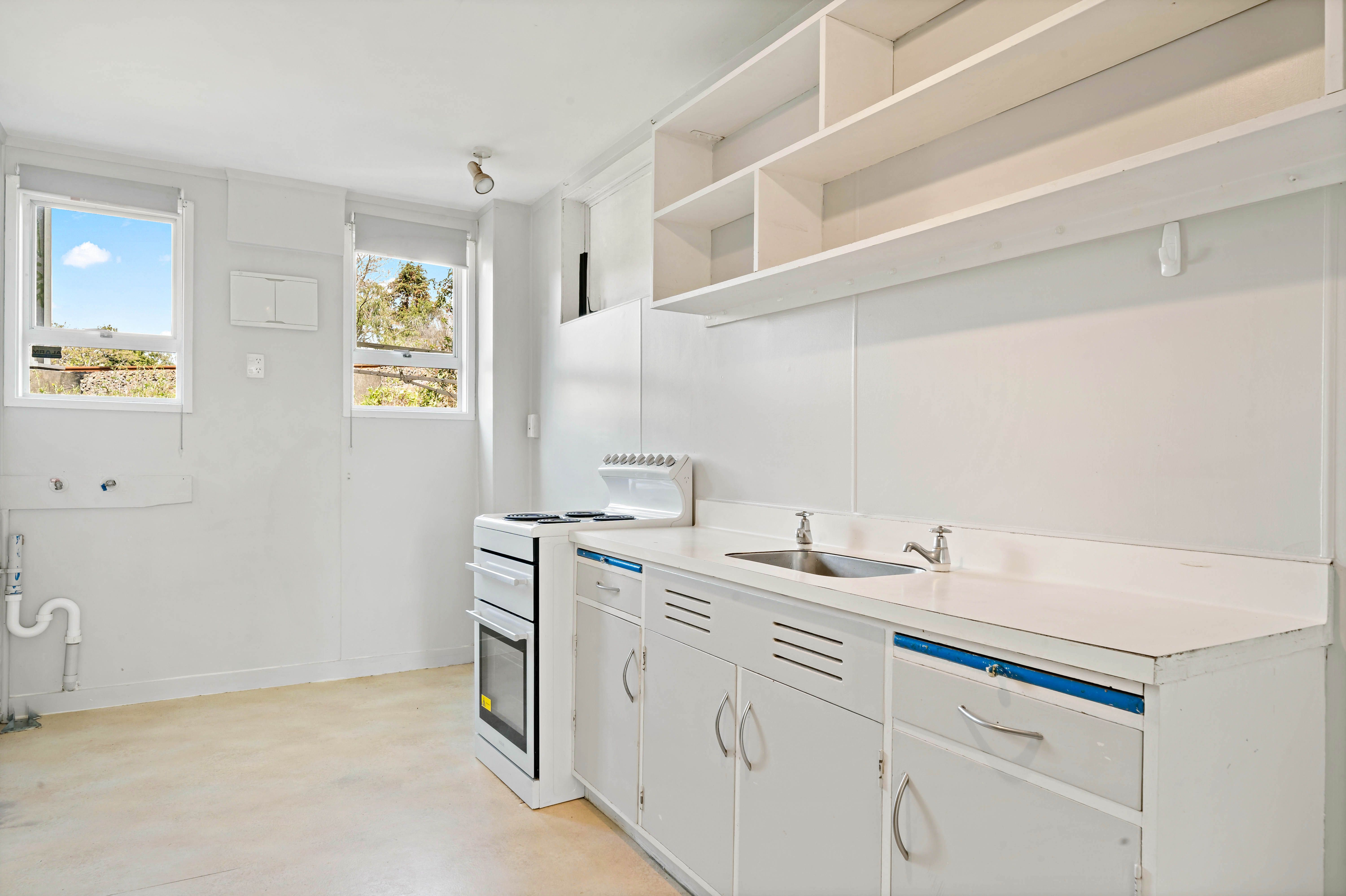 Concrete cinderblock construction with a simple 1970s aesthetic will appeal to those who want to keep it sturdy and simple. Downstairs, the front entrance is reached via an enclosed courtyard, which some savvy green fingers will make fast work of. Open plan living and dining has excellent sun, and flow access through to the generously proportioned kitchen. Above, 2 ample bedrooms are serviced with a full size bathroom - they kept it practical and spacious in the era this home was built. Off-street parking at the rear completes the picture.