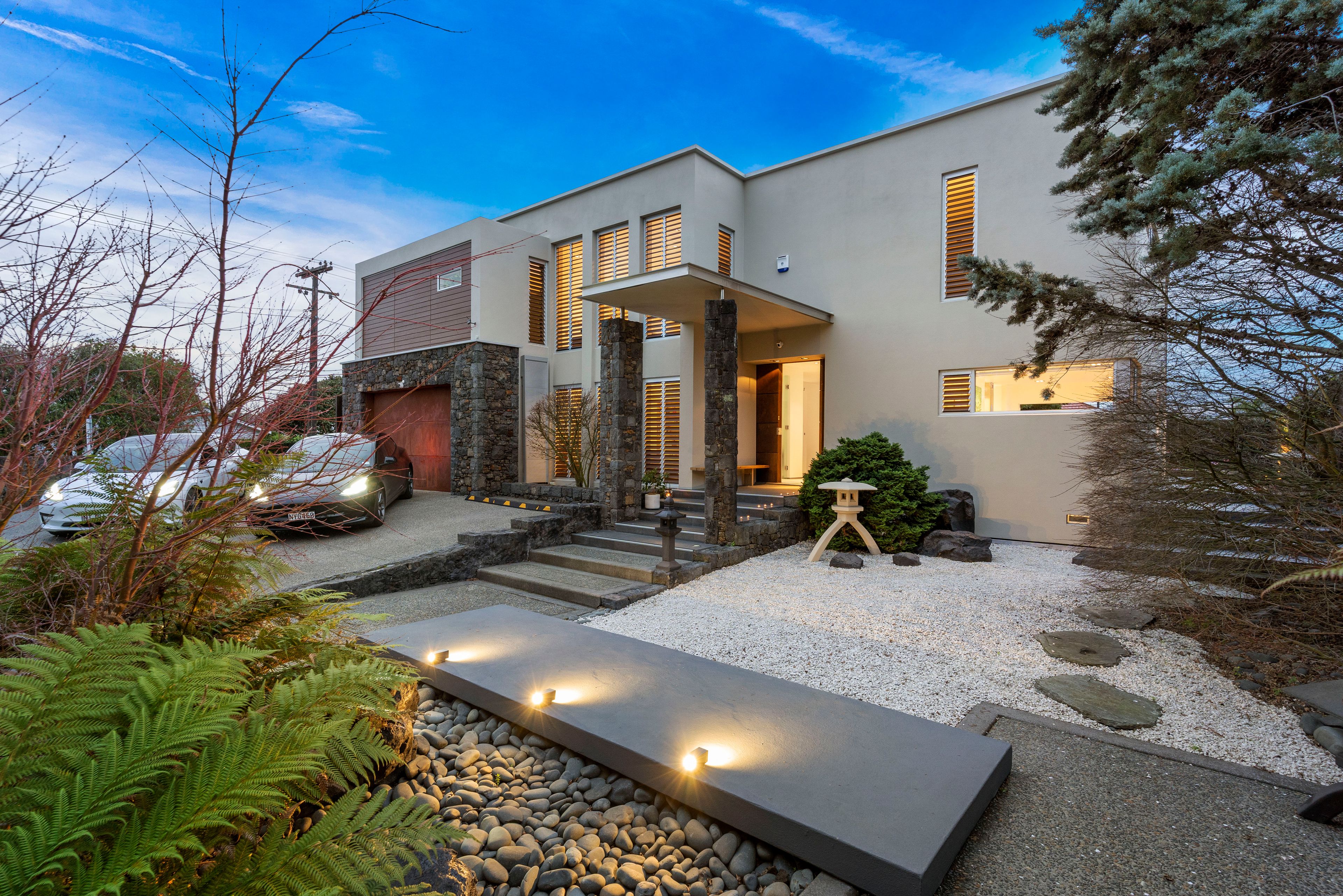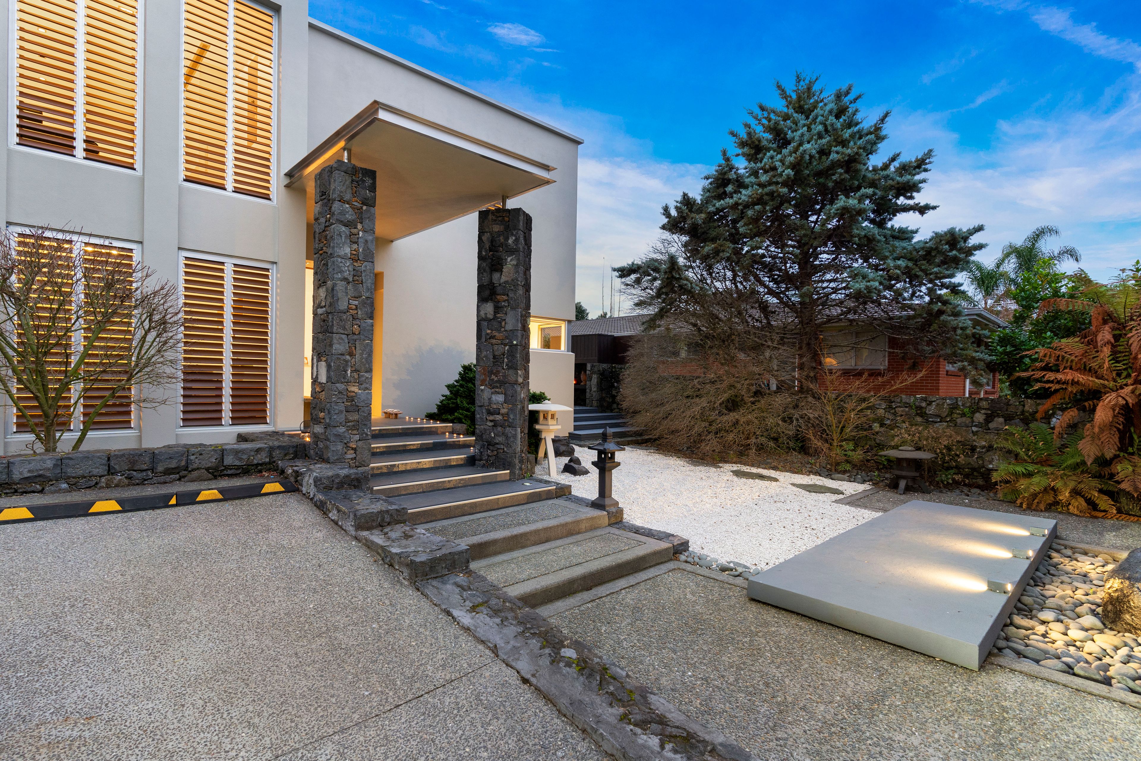 • Easy flow to groomed grounds where auspicious Japanese Zen gardens harmonize with screened hedging and high stone walls