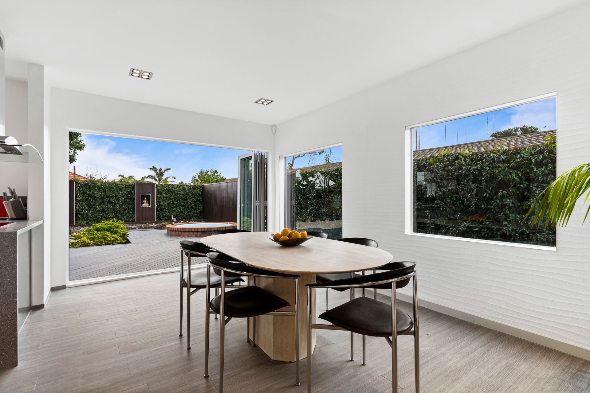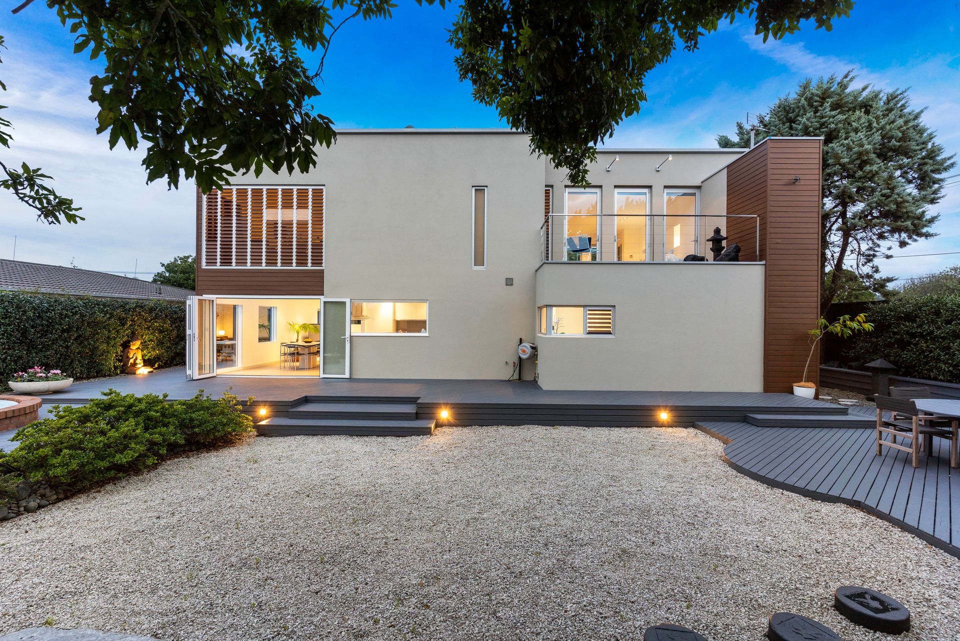 • An idyllic sake kiosk for outdoor entertaining amidst Kwila decking which surrounds an in-ground spa pool