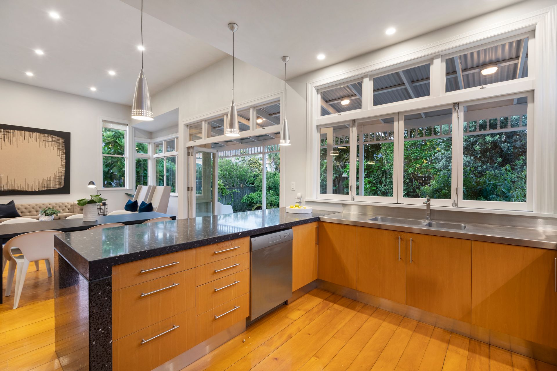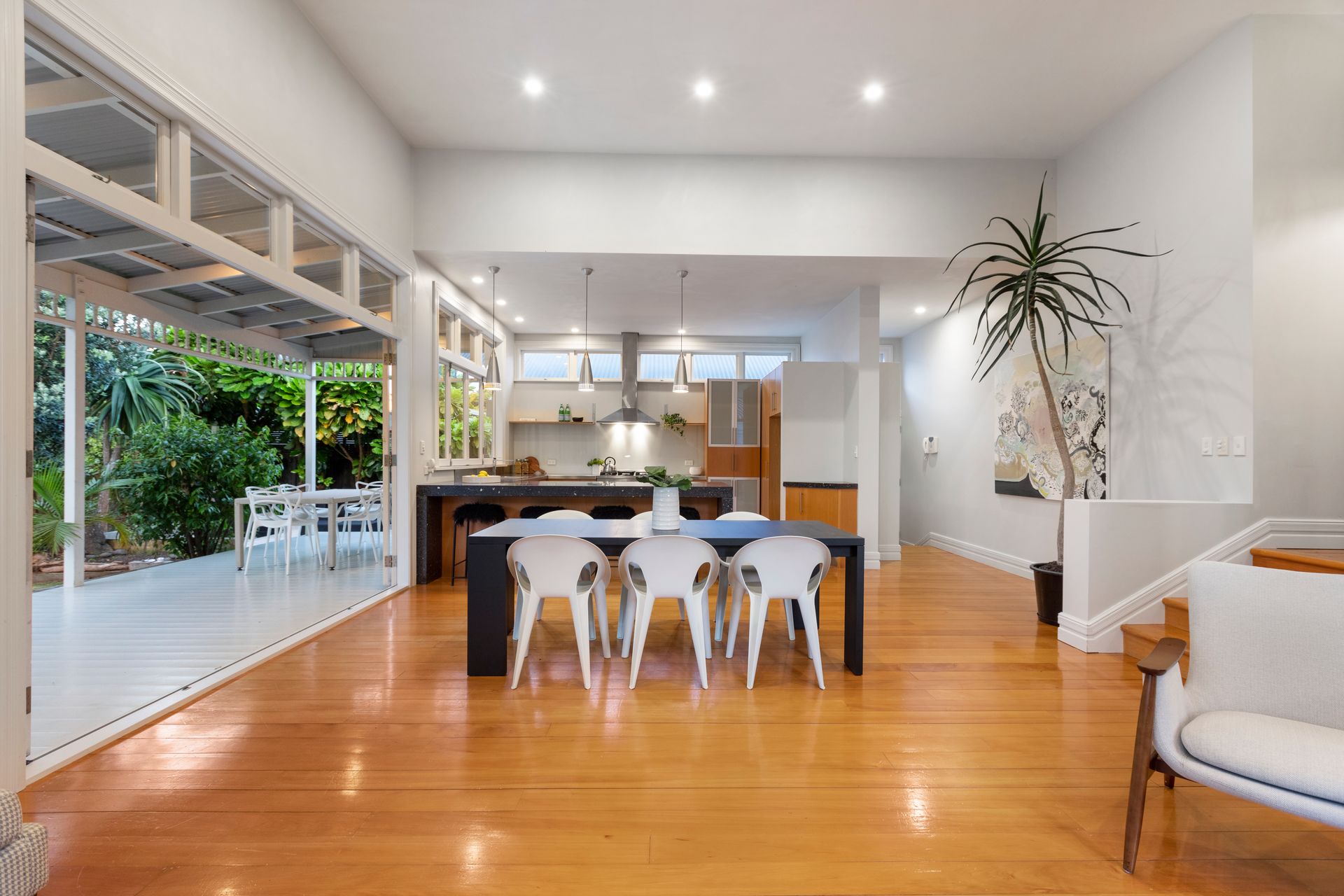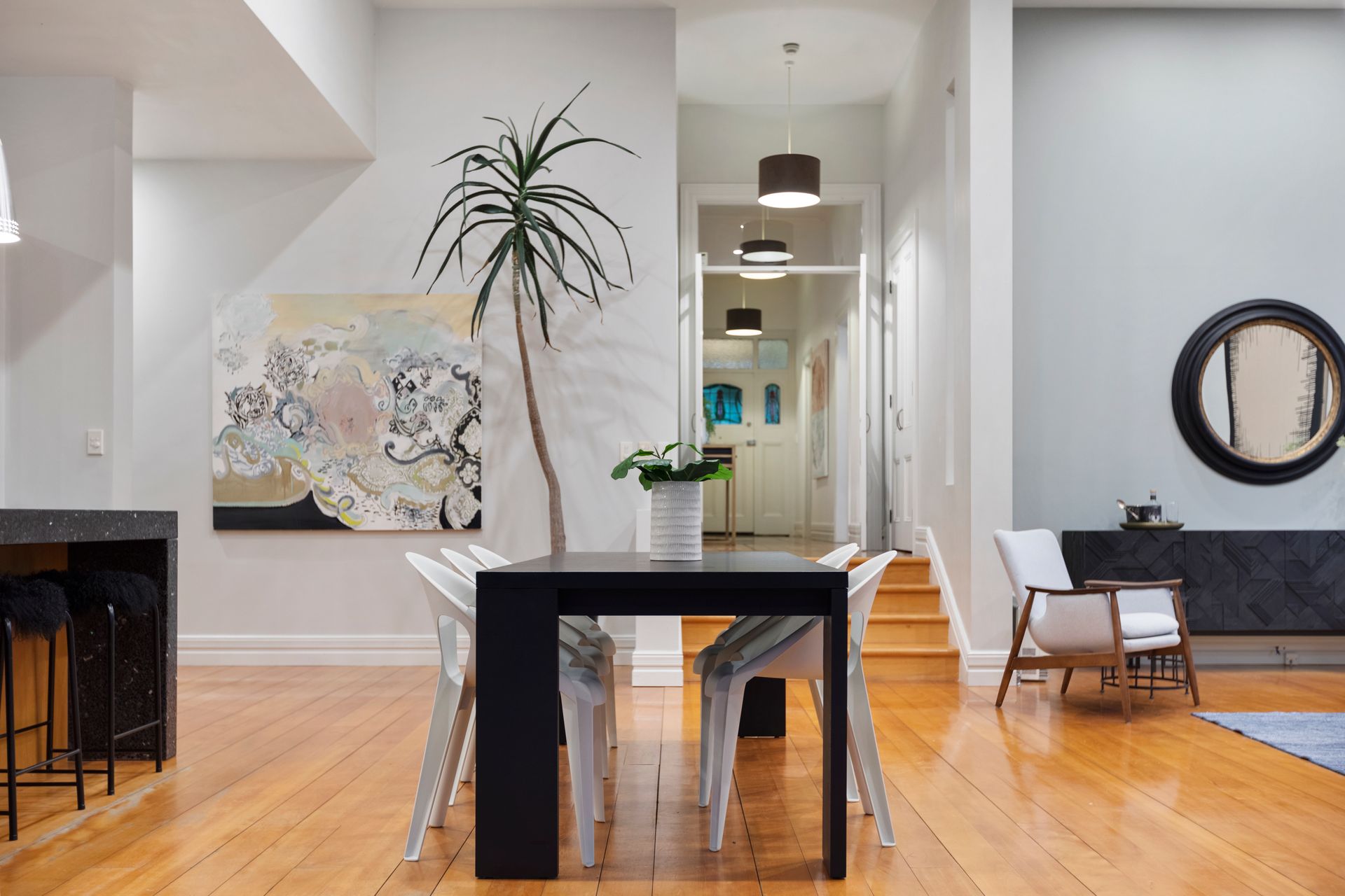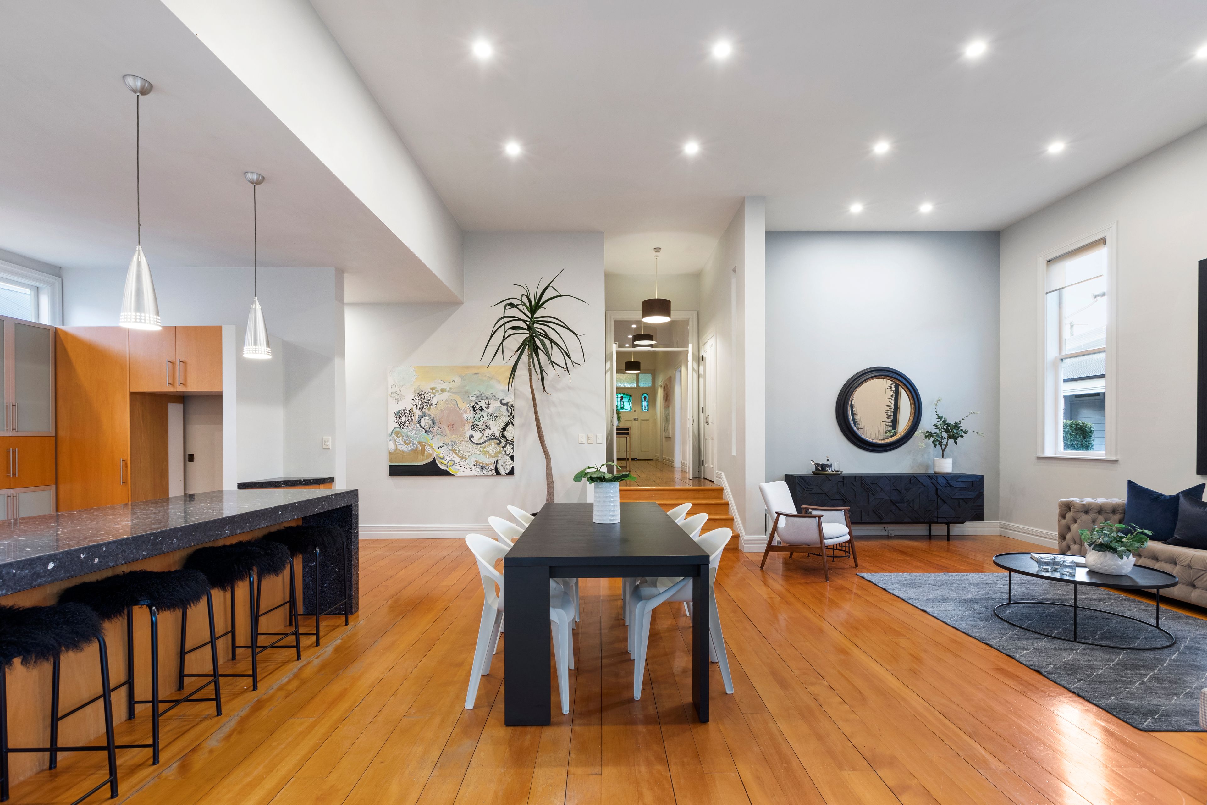Showcasing soaring ceilings, leadlights and timeless timber floors of an earlier era, the elegantly refined interior blends the beauty of both worlds, ensuring charming elements can be enjoyed in modern comfort.