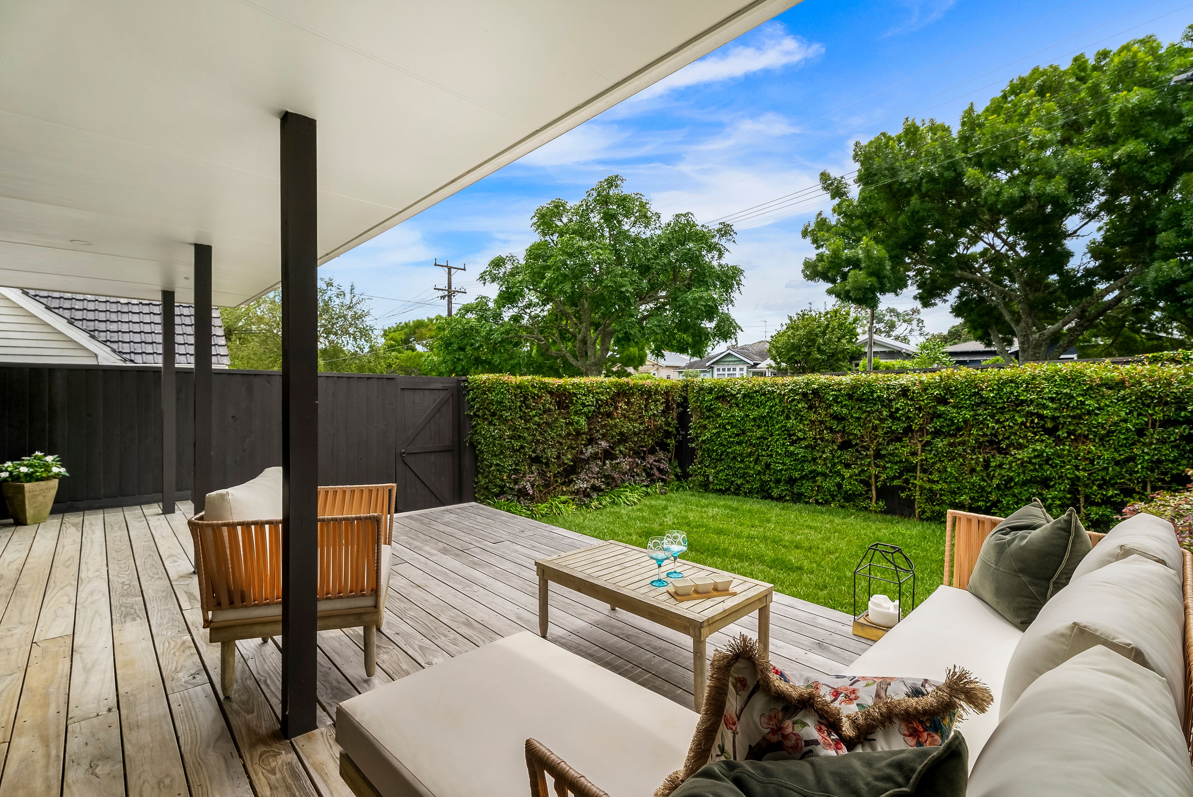 Positioned North to capture all day sun, the front open plan kitchen, living and outdoor area combined afford a peaceful view of the street with an abundance of character homes, immaculately maintained.