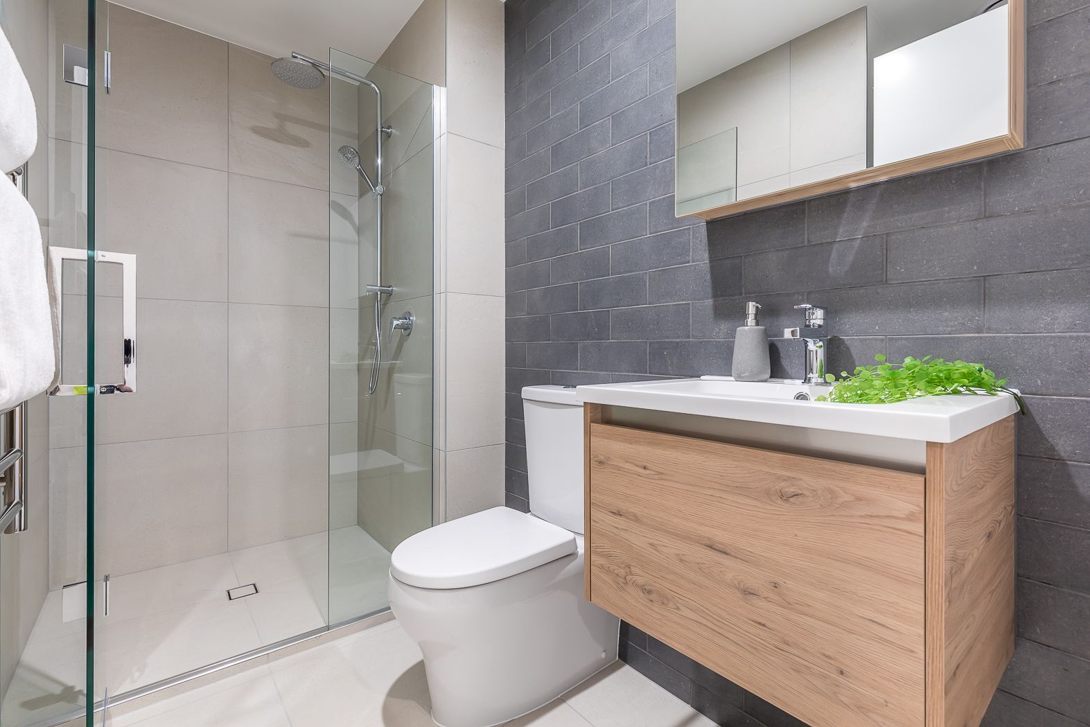 The beautifully conceived apartments are created with daily luxury and comfort in mind, complete with a view. The glass balconies amplify the existing space beyond the confinements of the four walls. Double glazing windows. The elaborate kitchens with carefully engineered stone bench top, glass splashbacks and quality Miele appliances. A refreshingly simple and modern bathroom with carefully selected Italian feature tiles, subtle and soft grey hues creates an instantly classic atmosphere.