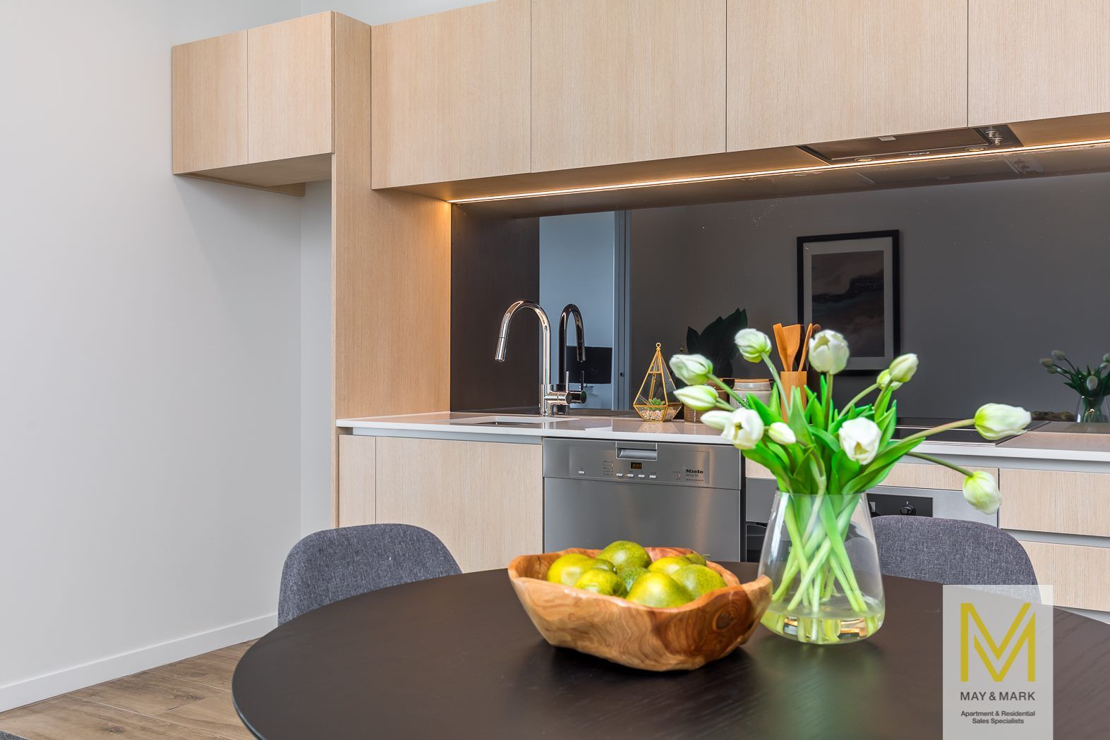 Designed with comfort in mind, double glazing windows, the elaborate kitchen with carefully engineered stone benchtop, glass splashback and quality Miele appliances. A refreshingly simple and modern bathroom with carefully selected Italian feature tiles, subtle and soft gray hues creates an instantly classic atmosphere.