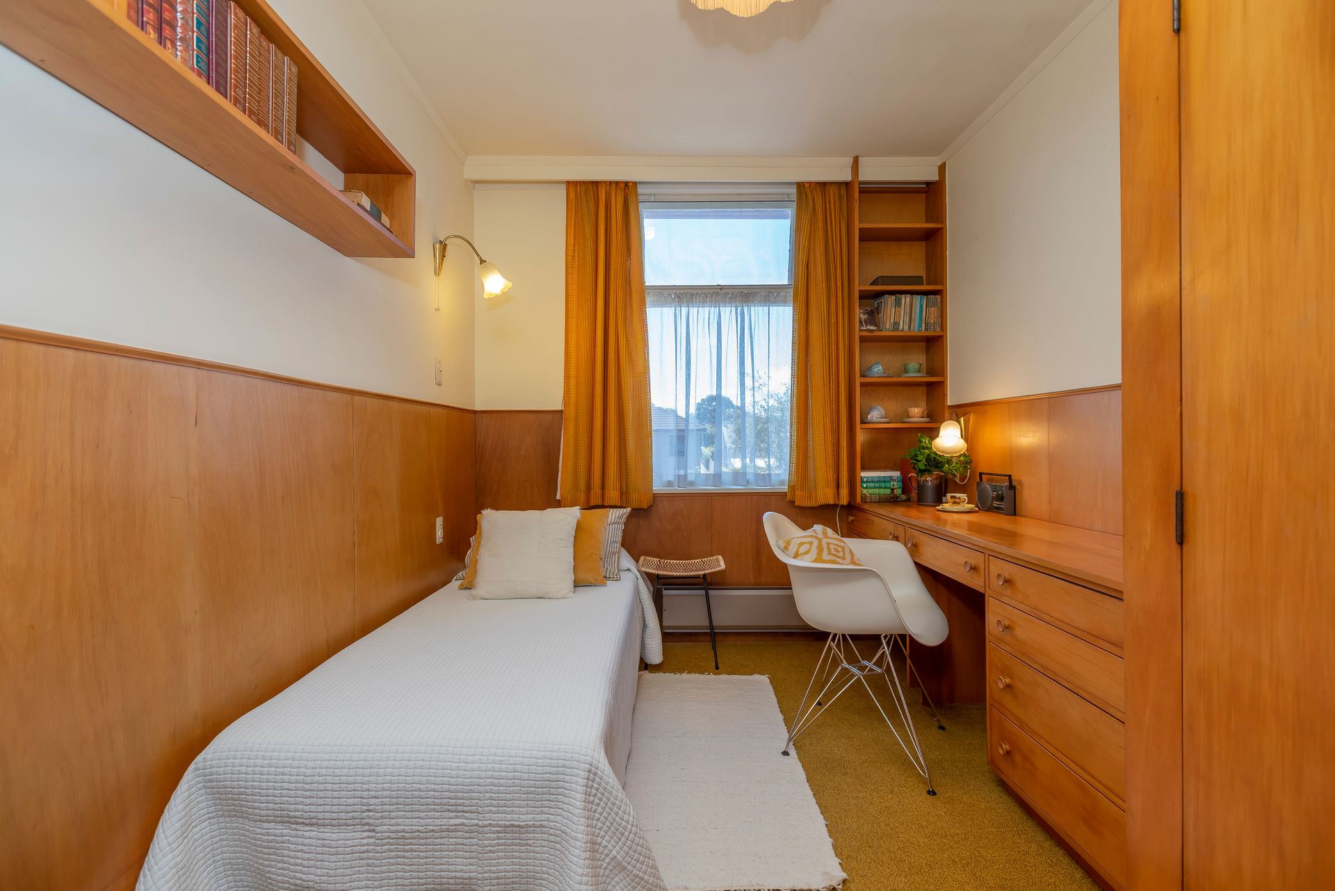 Boasting a massive floor area of 251m2, this 4 bedroom, 1 bathroom home is like stepping back in time. Bespoke cabinetry throughout, gorgeous wall panelling and groovy carpets in hues of the times, all mingle with absolute mastery. This was, and still is a designer home, but undeniably there is a wealth of opportunity to take all the goodness that Arthur and Jean created in the last 56 years and write your own story here.