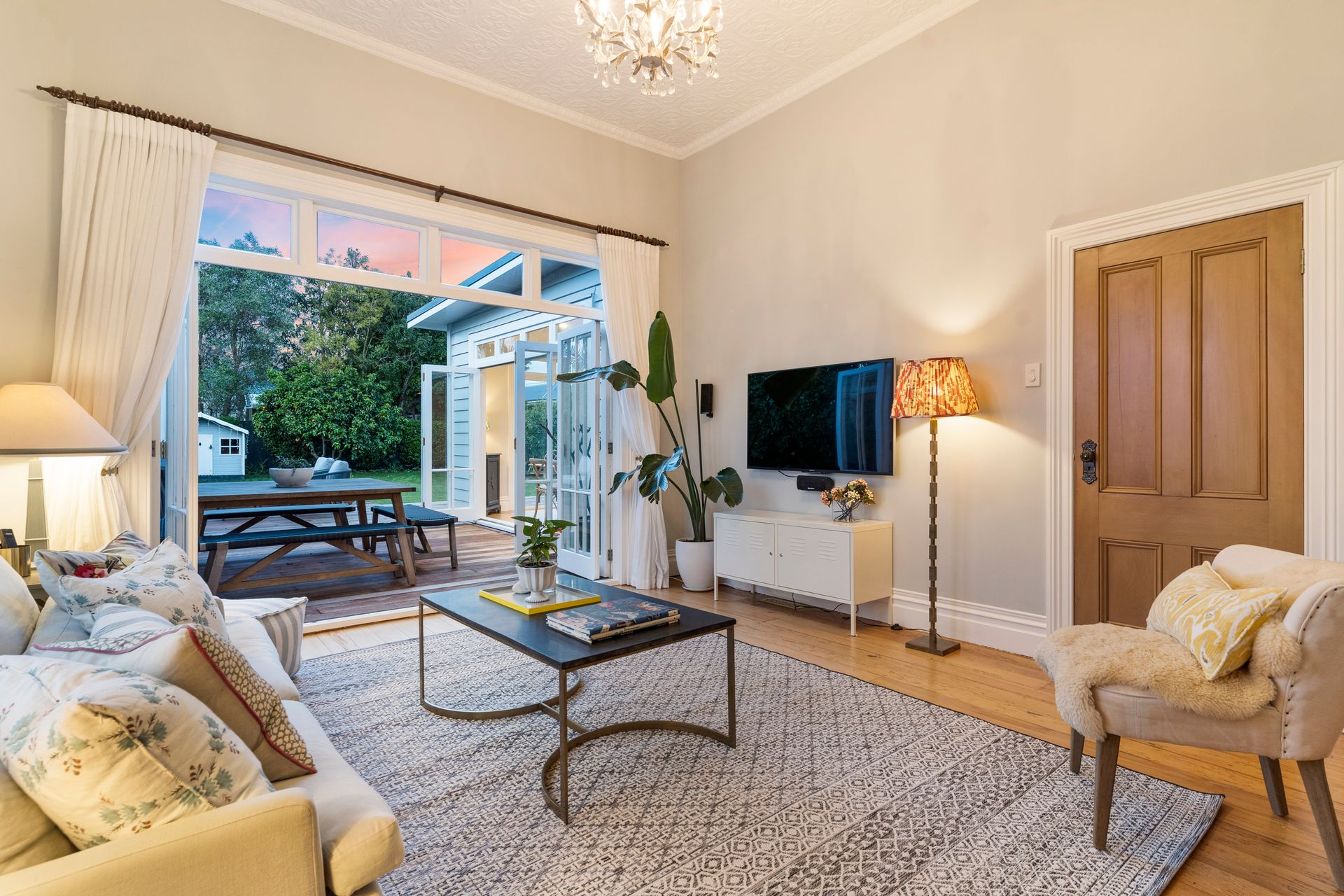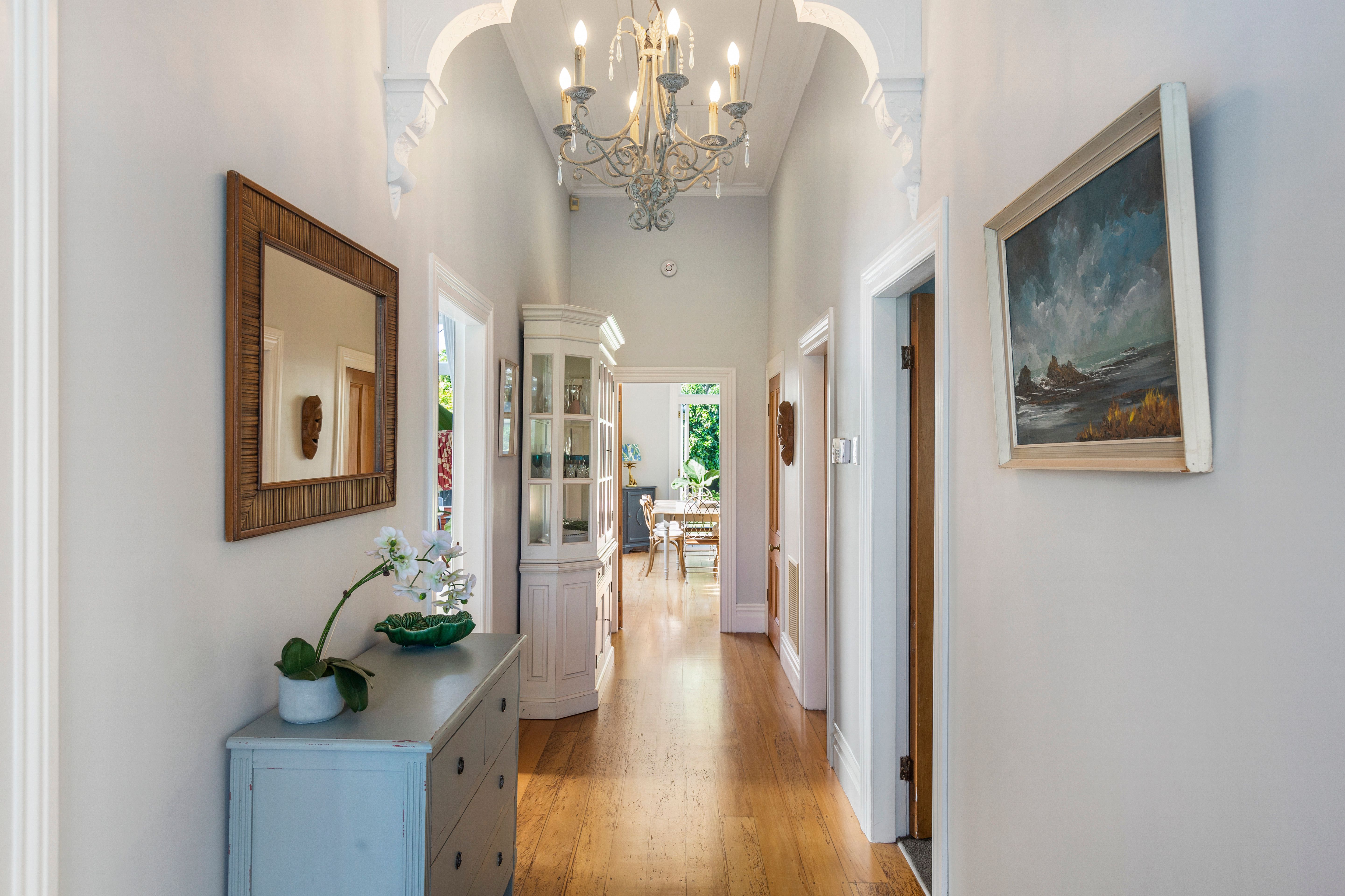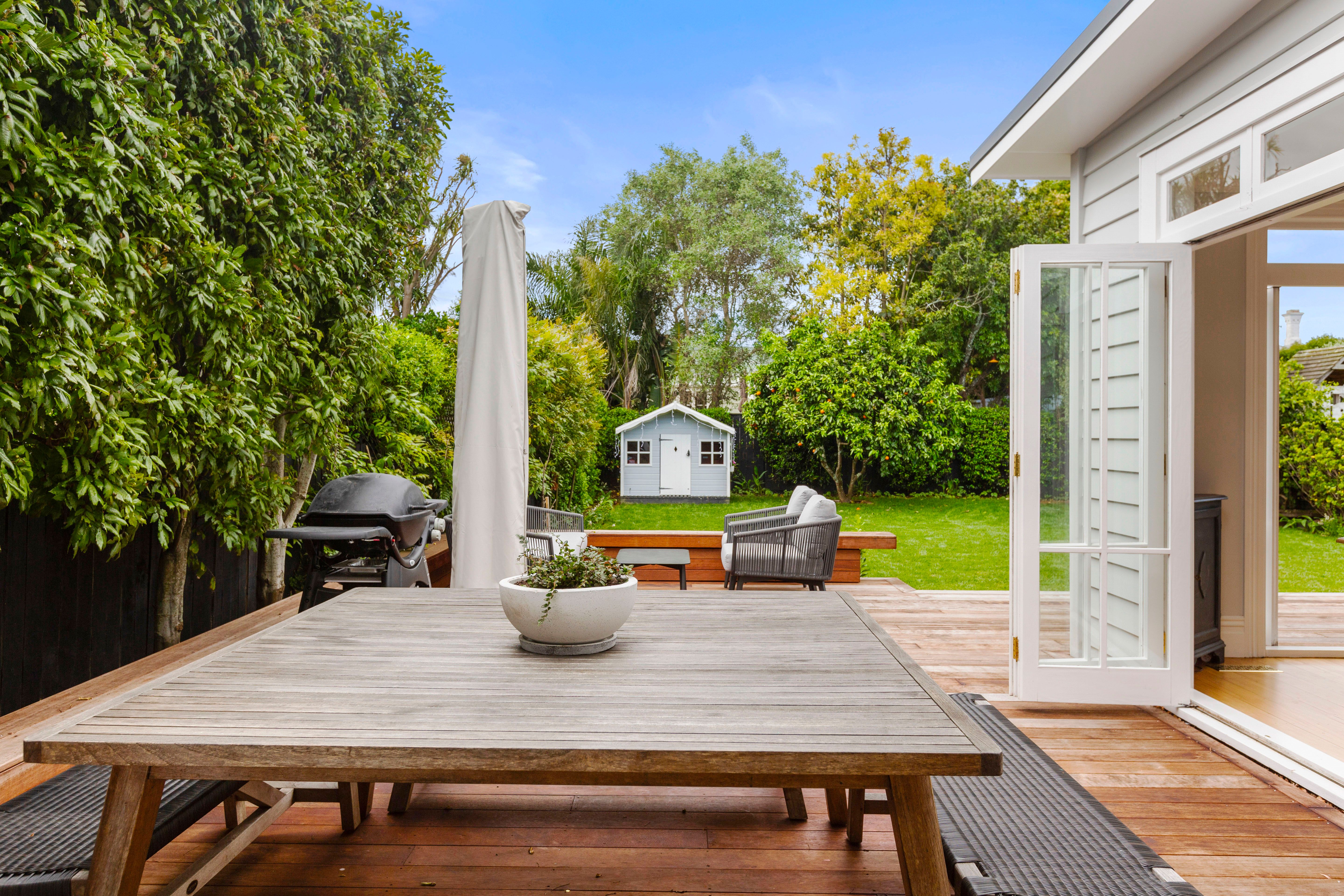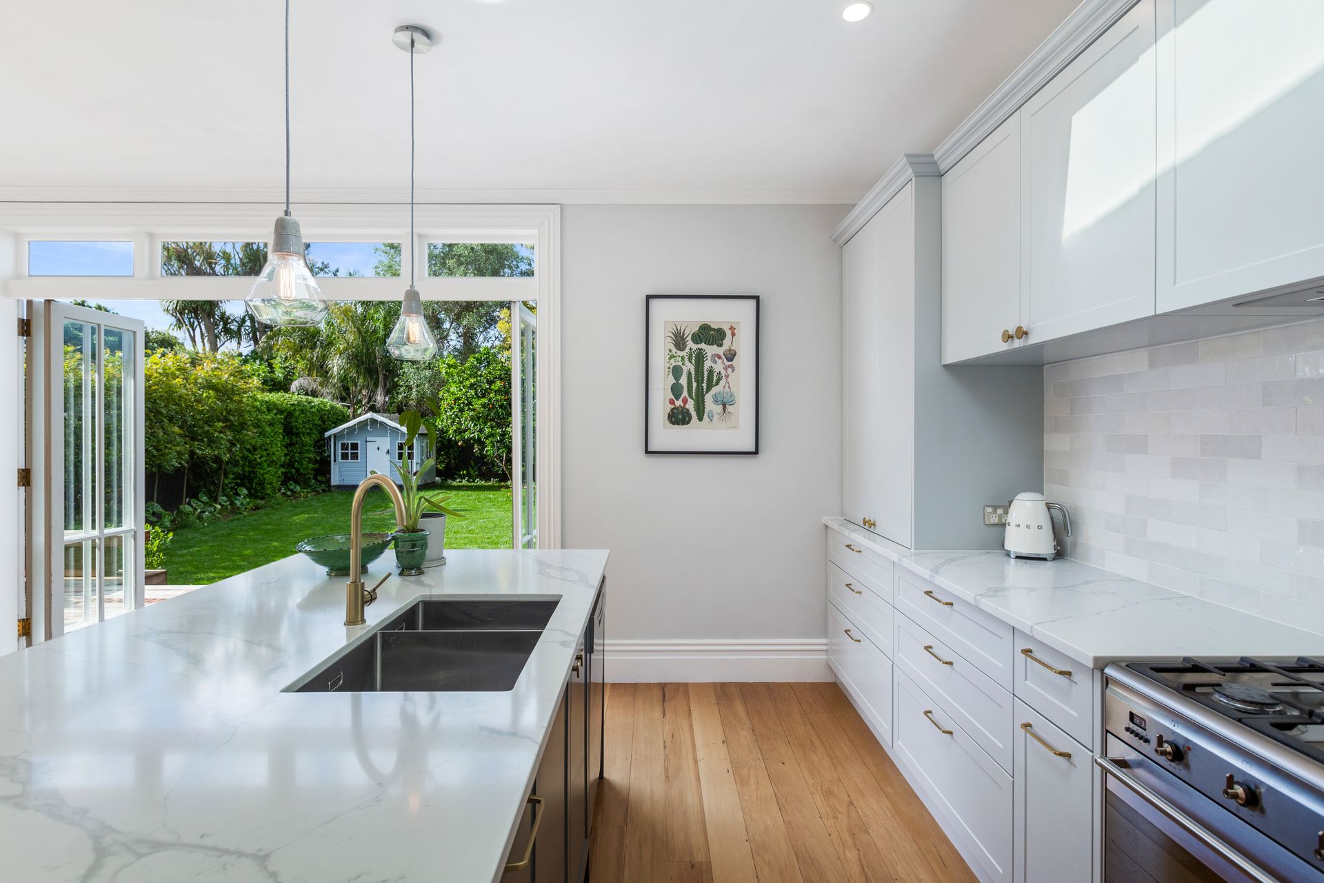 Old world splendour meets new age chic in this fully renovated home with the element of surprise achieved by the generous connection to outdoor spaces in the north facing rear garden. The spellbinding collaboration of old and new includes an elegant formal sitting room with period fireplace and chandelier illuminating original pressed iron ceiling and native timber floors. A calming colour scheme defines the entire 153 sqm (approx.) interior with banks of bi fold French doors expanding entertaining spaces to include a large alfresco deck off both the sitting room and neighbouring open plan dining and kitchen.