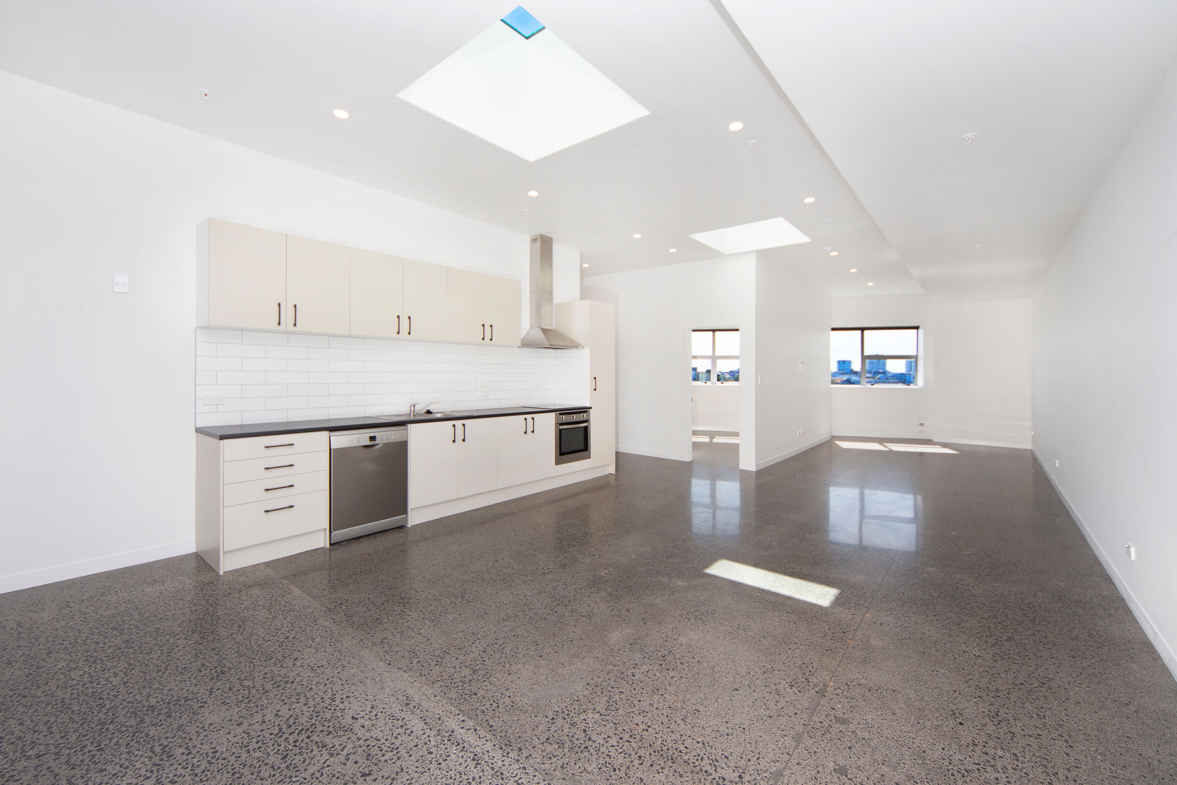 This property consists of 3 good sized bedrooms, 1 bathroom combined with the laundry and open plan kitchen, dining lounge. The apartment also features a foyer as you walk into it and views of Auckland City, sky lights in the living areas, polished concrete floors and brand new appliances.