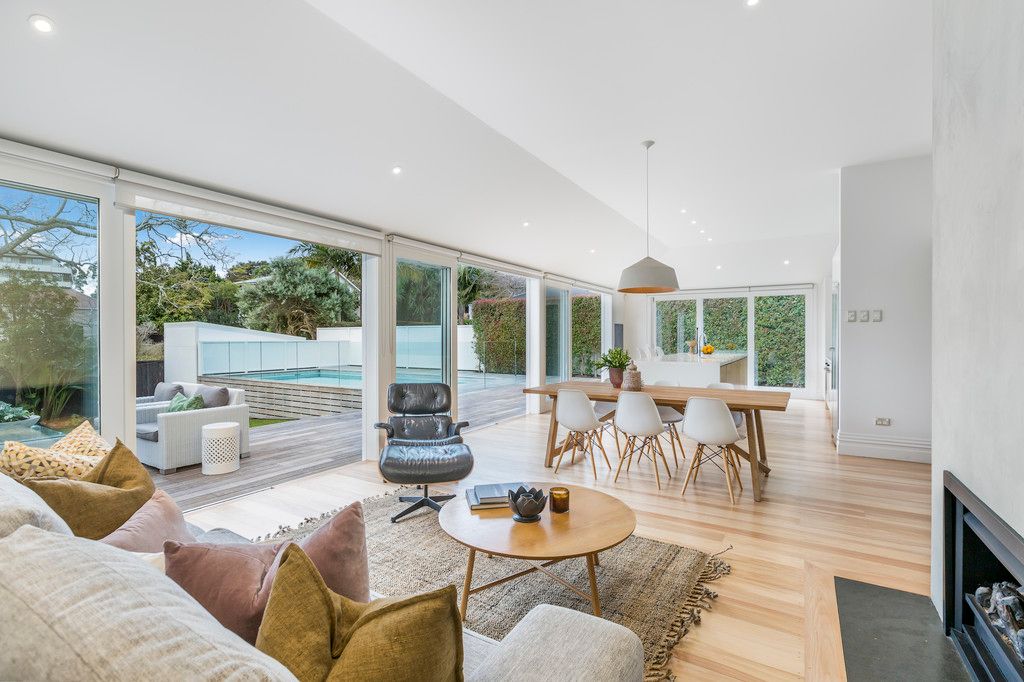 Setting the stage for memorable times with family and friends, the home's high spec kitchen and vast open plan family living and dining space effortlessly expands outdoors to the north-facing sprawling deck, landscaped grounds and pool area. The further two living rooms provide for both intimate separation or easily combine to become one large space through adjoining double doors, perfect for accommodating larger gatherings.