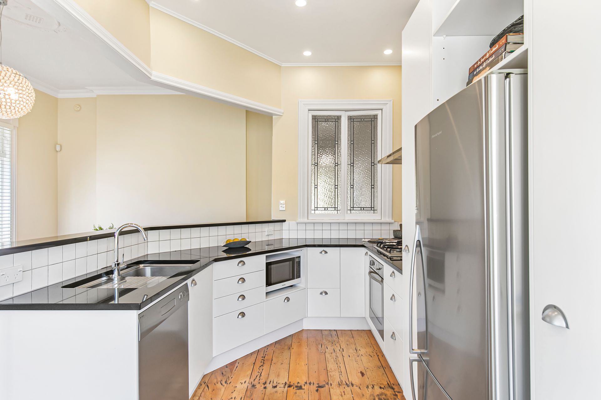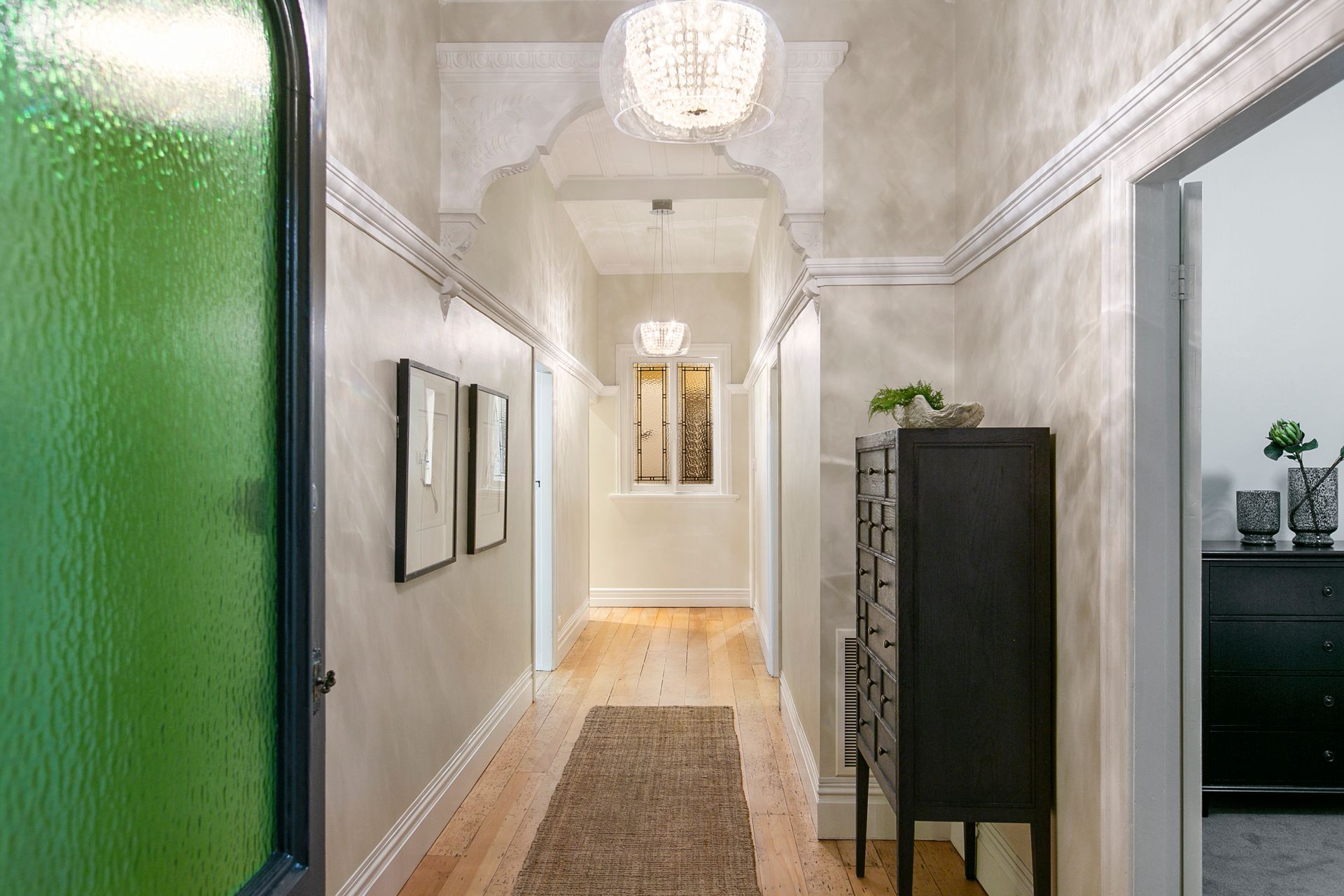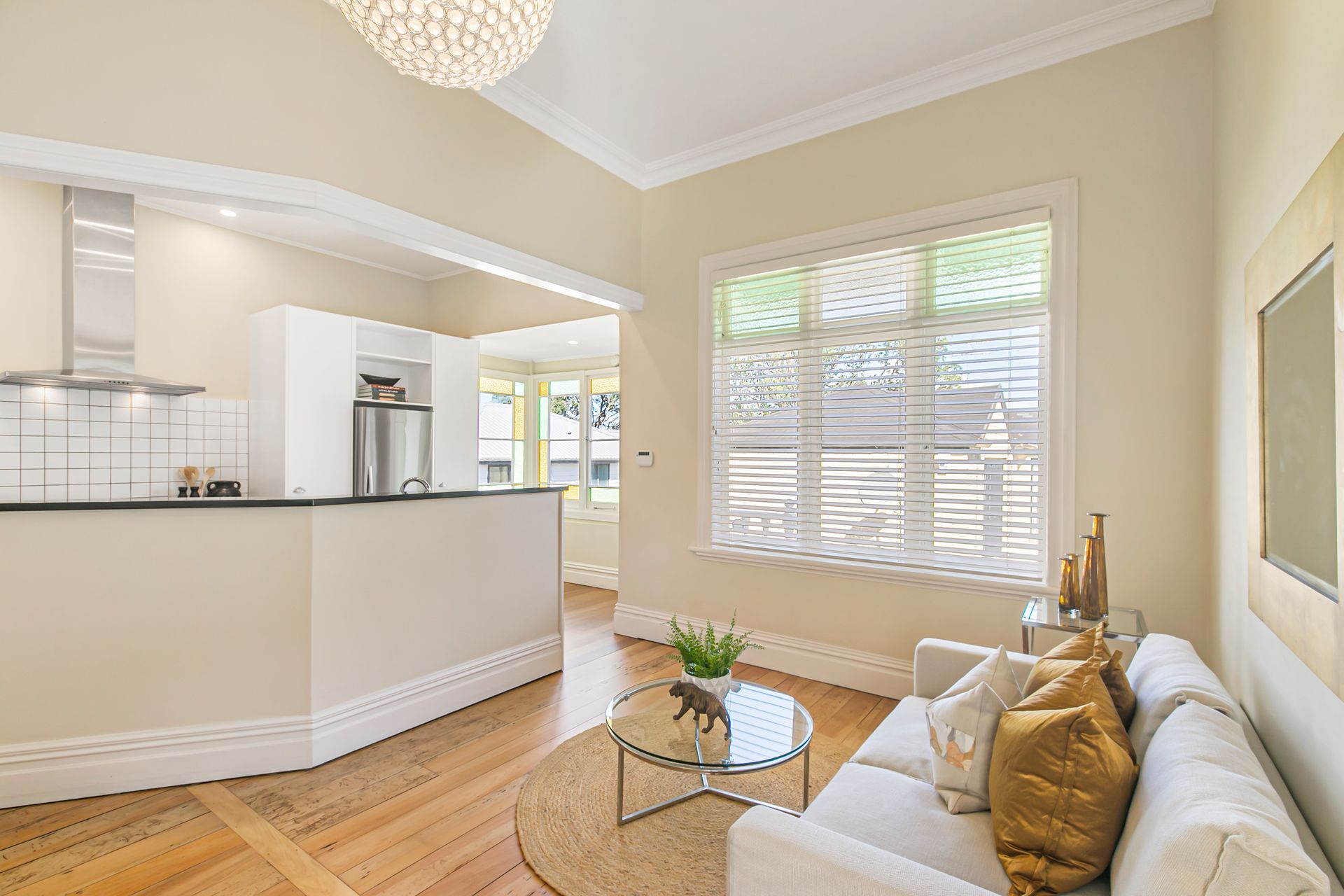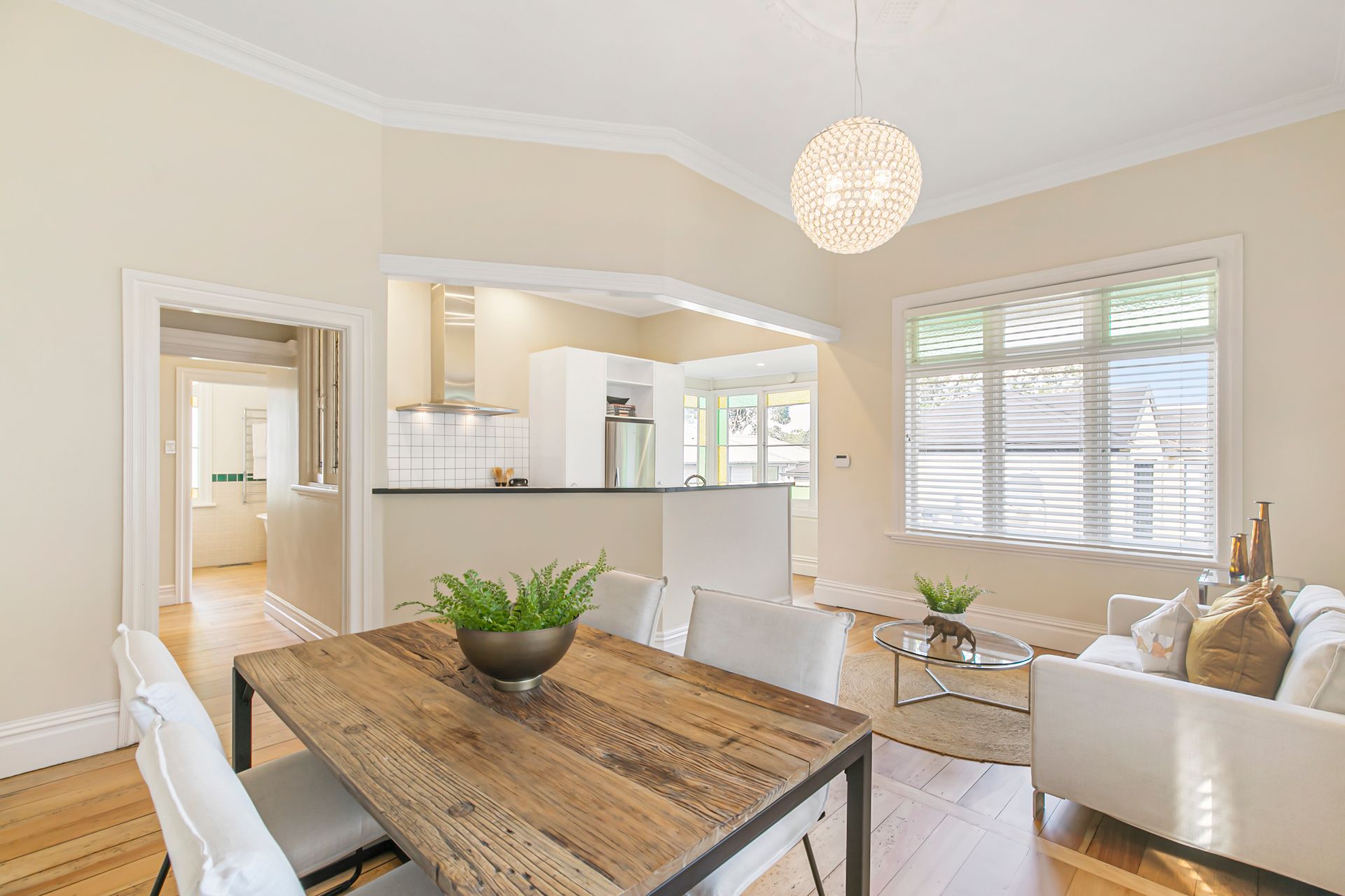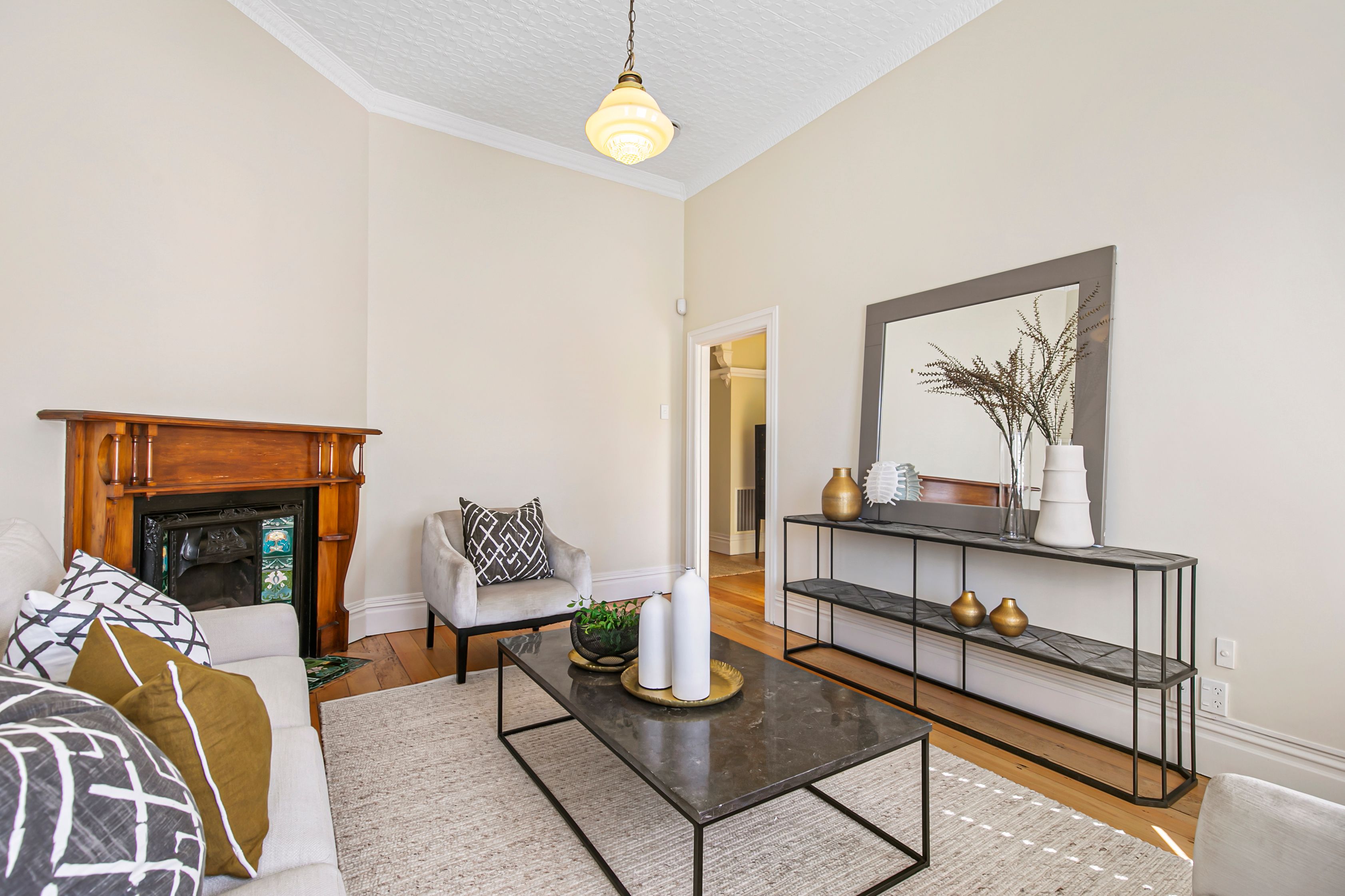 This classic villa sympathetically retains the decorative character and beauty of its heritage. Showcasing traditional features such as high stud, ornate ceilings and leadlight windows, the wide hallway and rich native timber floors provide the warm welcome into the light-filled home.