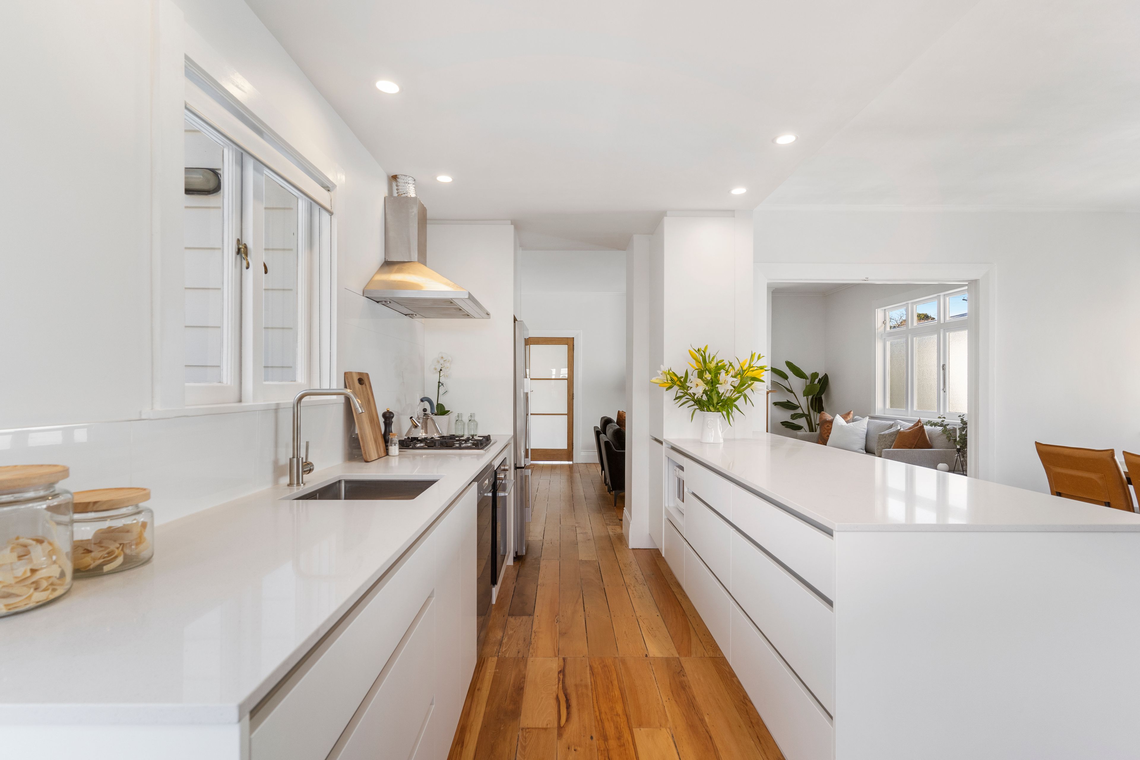 A gentle colour palette and polished timber floors bring a sense of spaciousness to the beautifully styled and light-filled home. Refashioned for contemporary living, the hub of the home is the open plan and modernised kitchen with breakfast bar and generous dining/living area. The home's spacious lounge is the relaxed and warm living space, perfect for bringing friends and family together or just quietly curling up with a book in front of the traditional open fire. Each of the comfortable three bedrooms are carpeted and provide for plenty of storage with in-built wardrobes and the sun-filled master bedroom includes its own tiled ensuite. Additionally this property includes generous storage in both the attic and huge basement, plus off-street parking for two cars.
