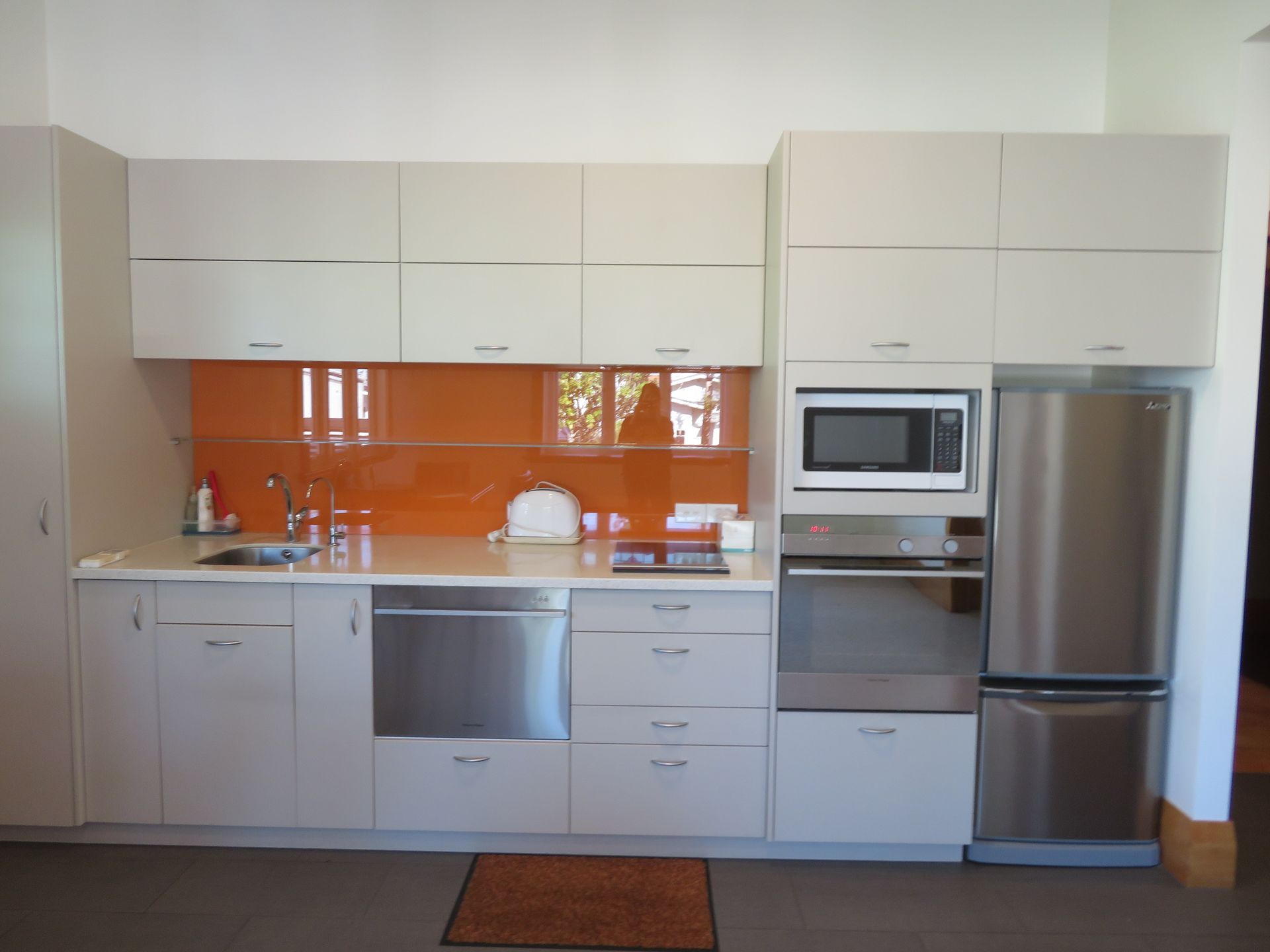 Modern kitchen with fridge/freezer, microwave, oven, hob, dishwasher