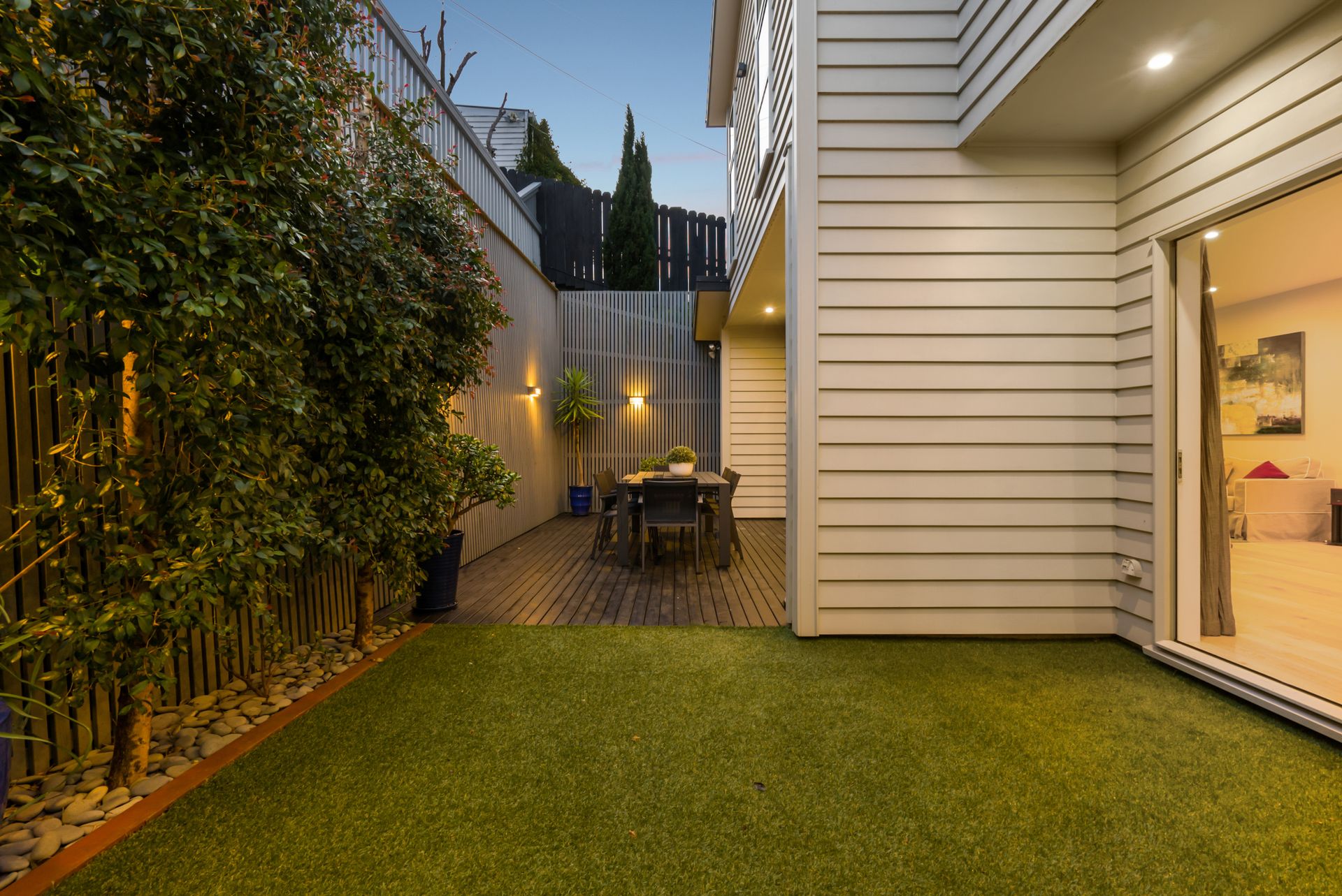 with sliders stacking back to reveal a private deck and courtyard