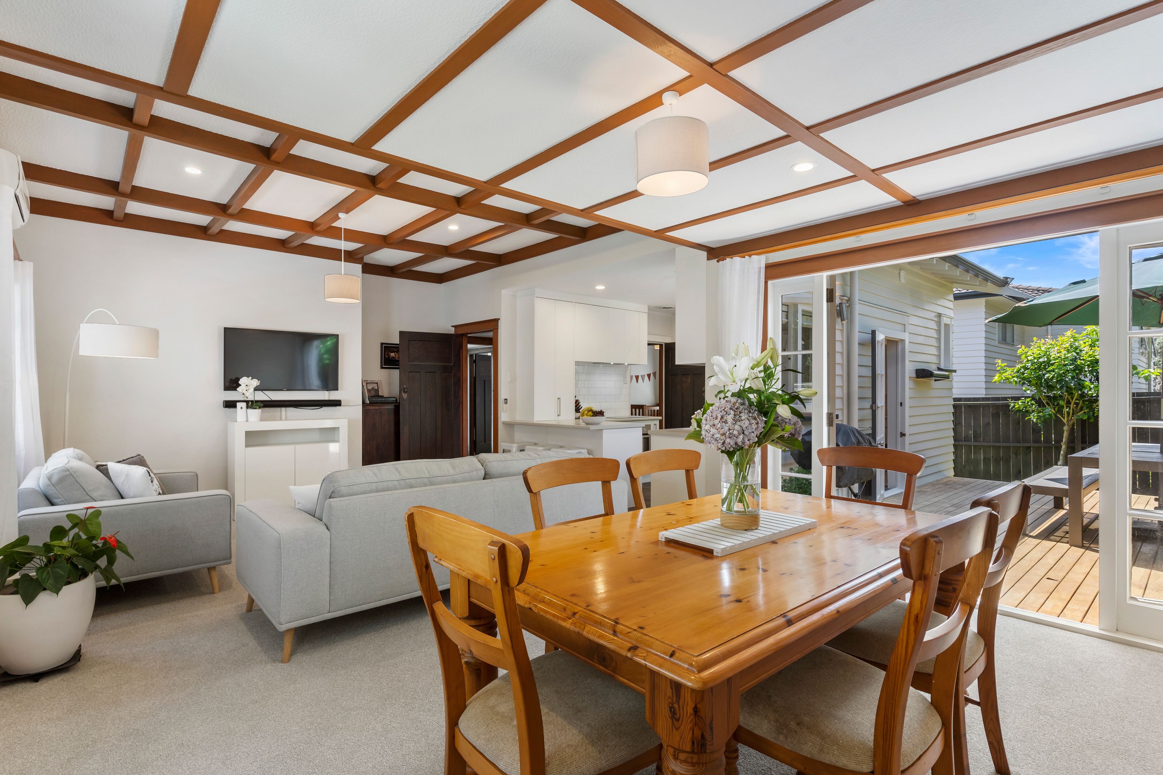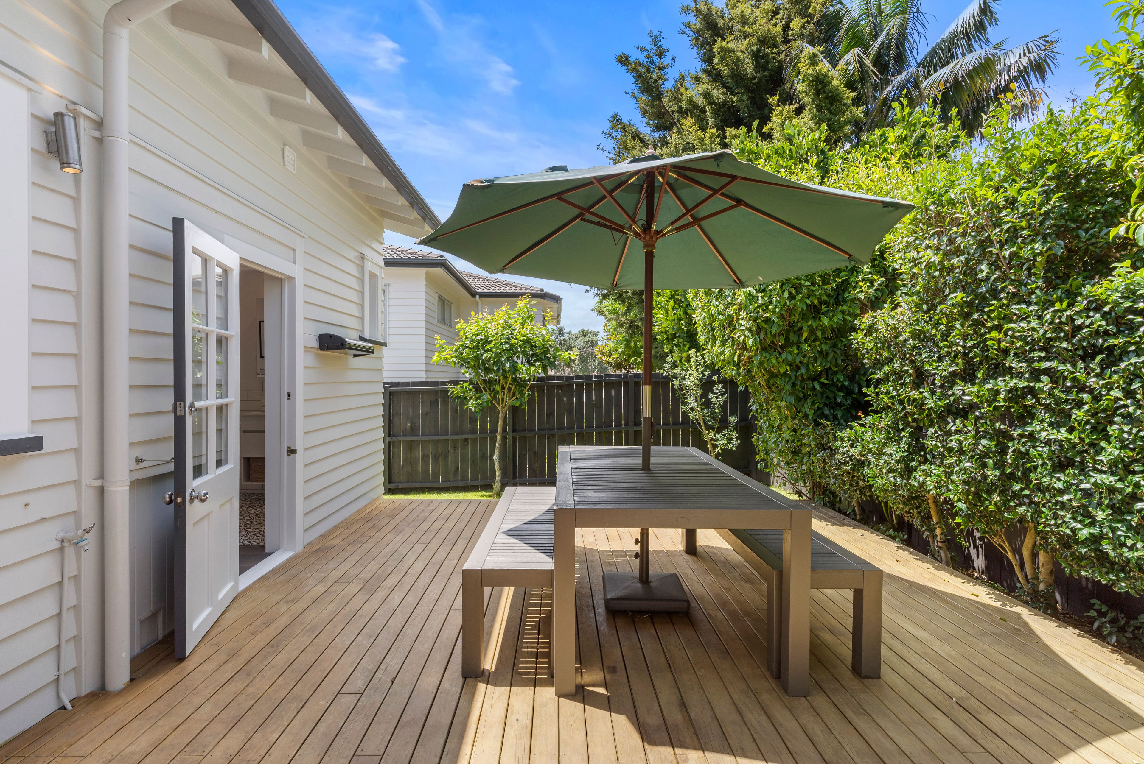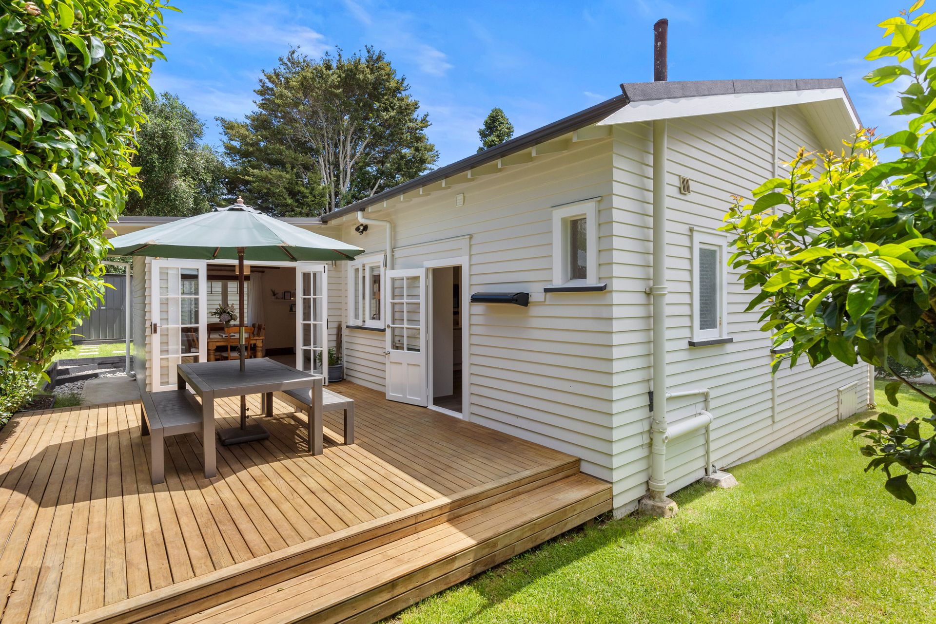 • Spread out - there's room to get comfortable both inside and out - with sheltered deck and a level lawn for kids and pets, who will appreciate the off-the-road position down a driveway. Privacy is assured