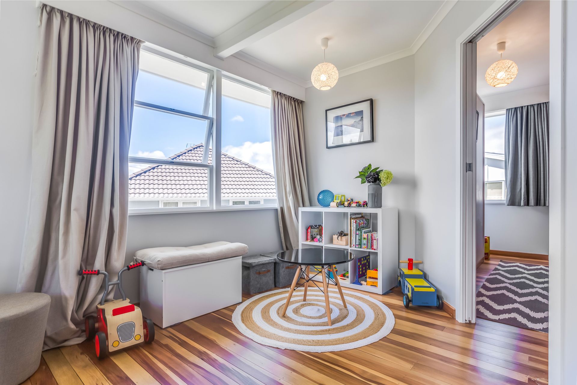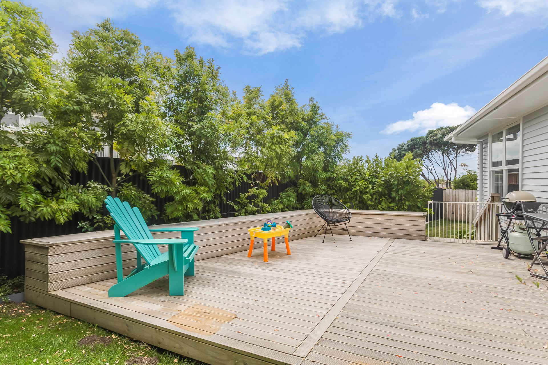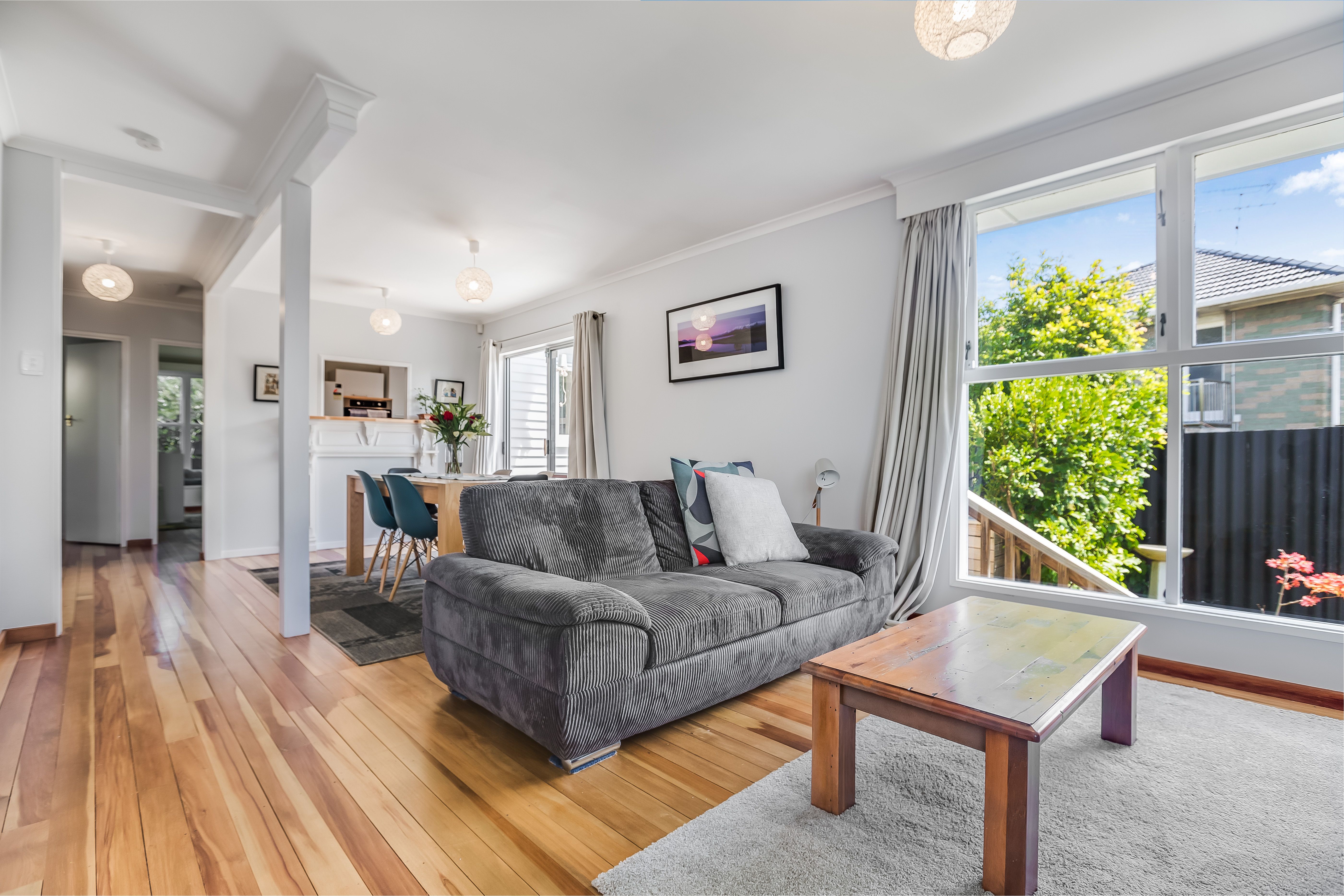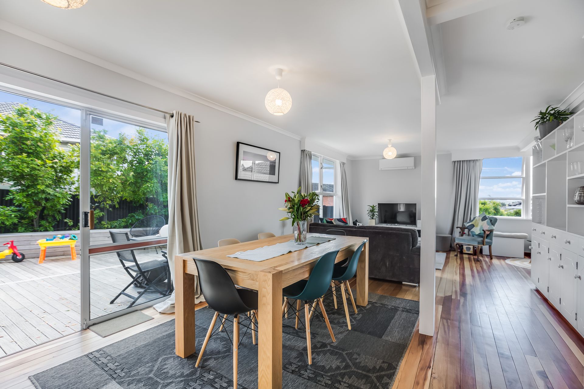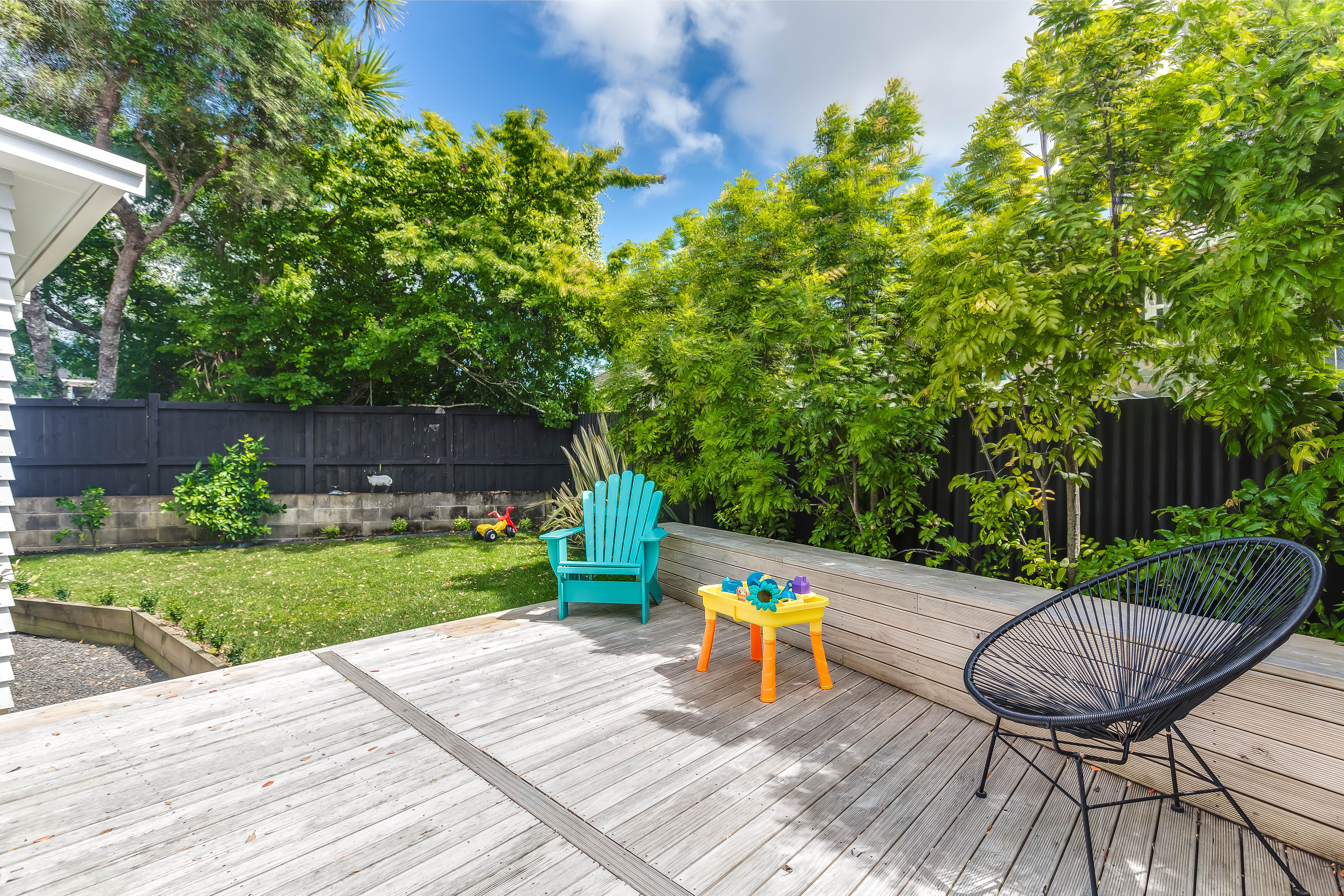 The spacious open plan living area which attracts sun throughout the day opens out onto a north facing deck and garden, a great area to relax as you watch the kids play. A modern kitchen with ample storage and a classic hole in the wall' - makes entertaining a breeze as you pass the nibbles and drinks.