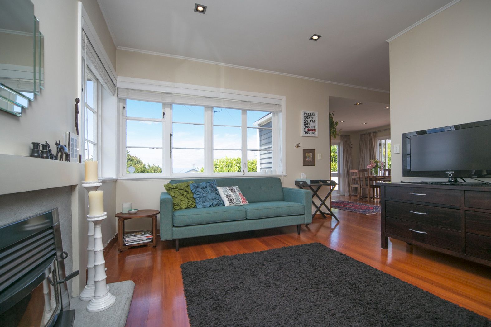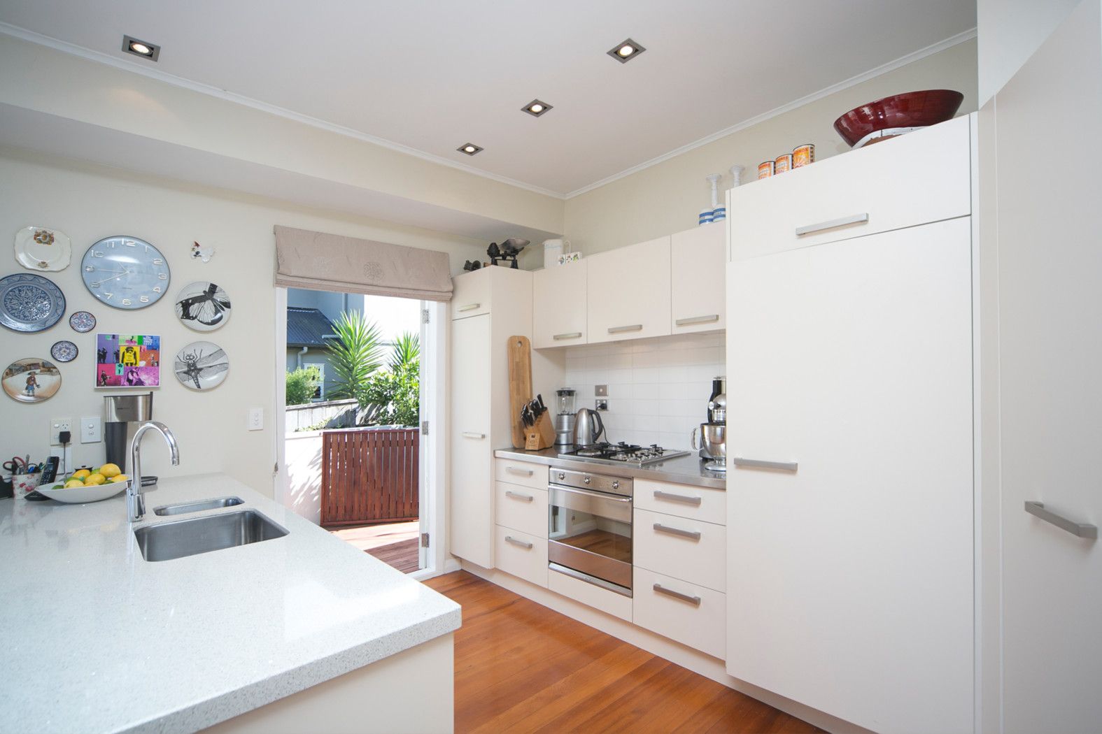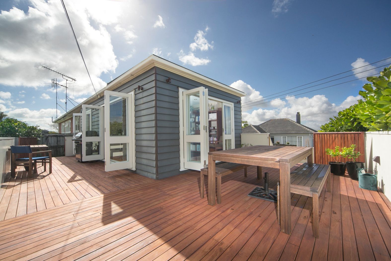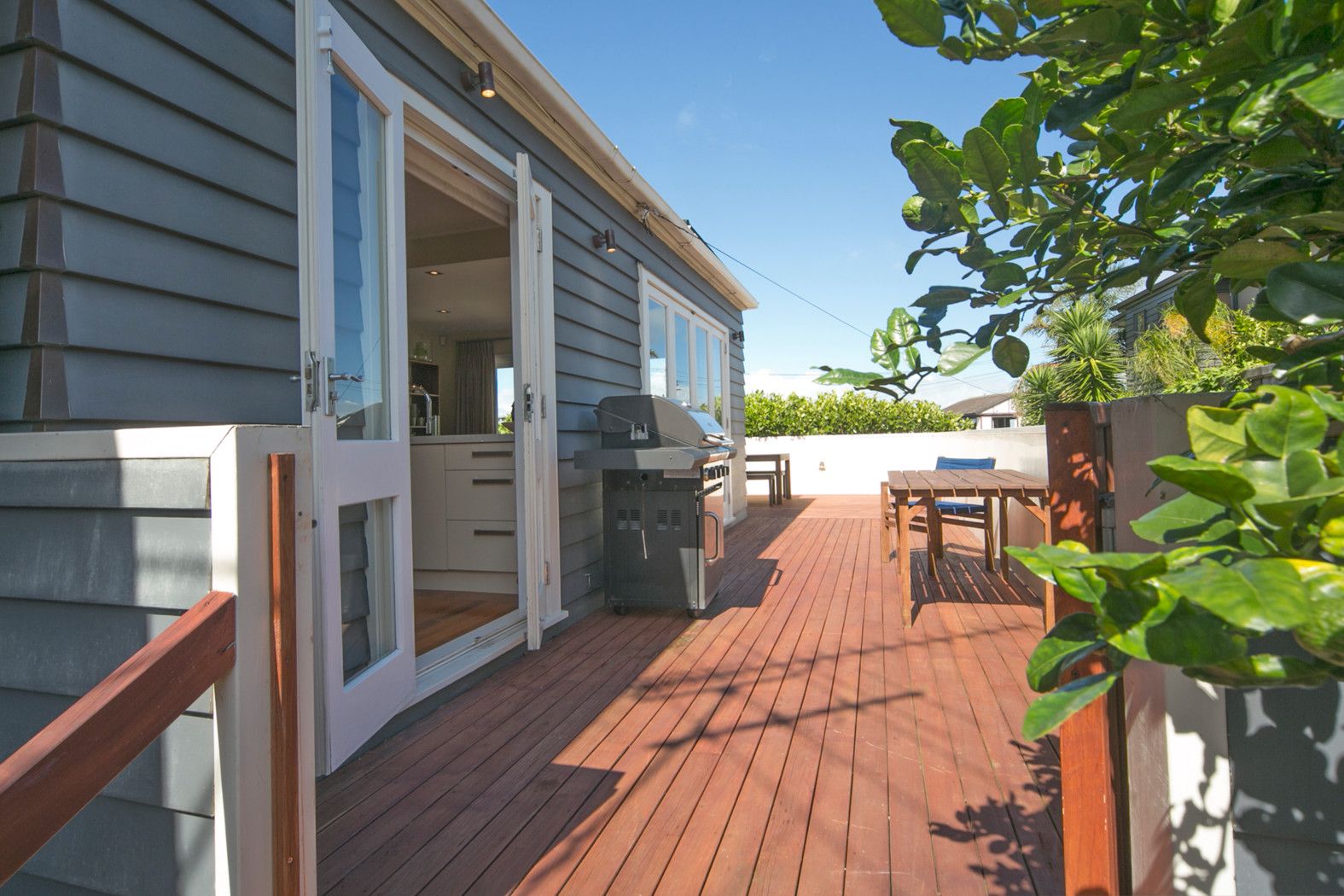 The open plan modern kitchen, dining and lounge flows to the sunny, elevated deck which has views out to the Manukau Harbour.