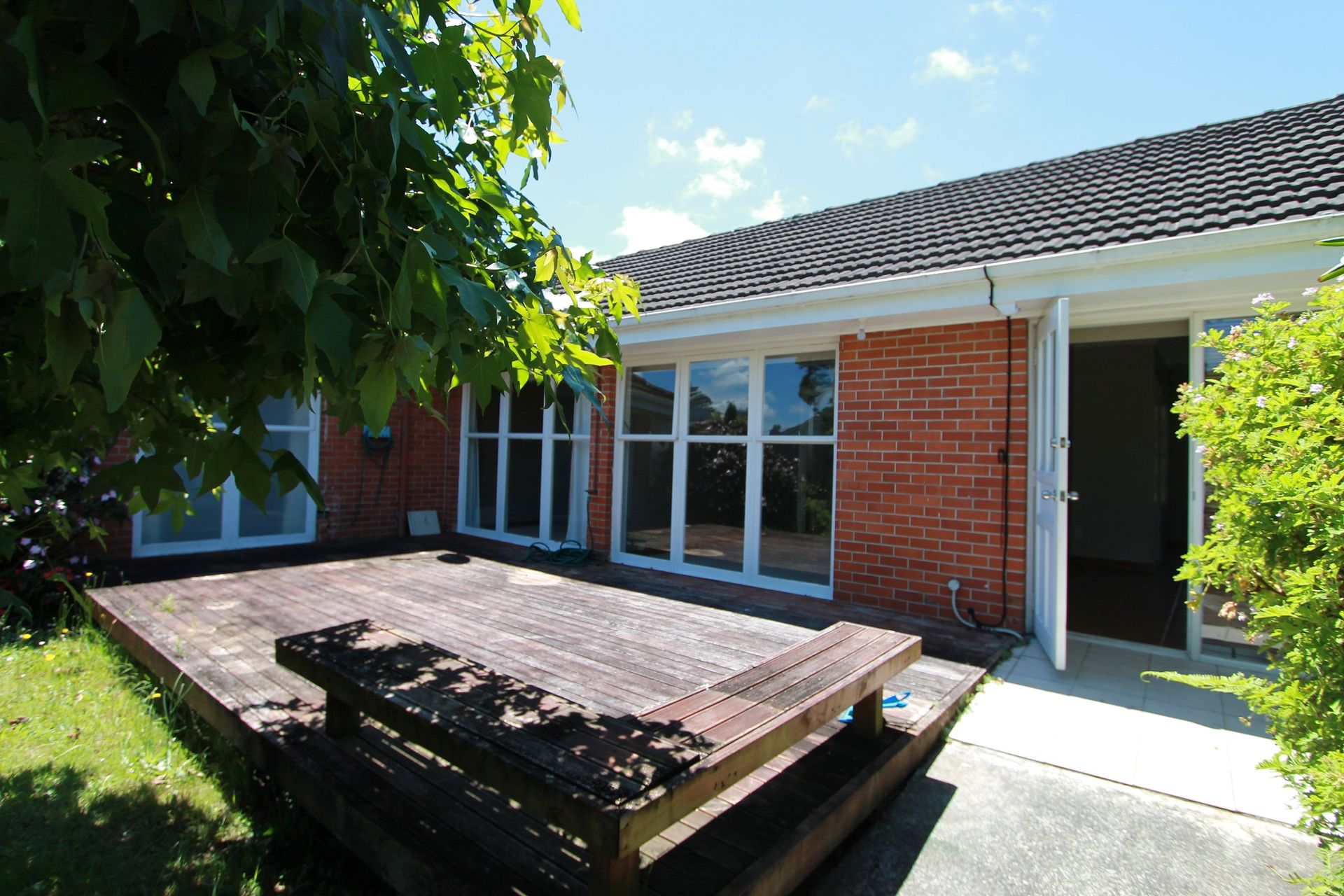 Beautiful garden with a deck for children to play around.